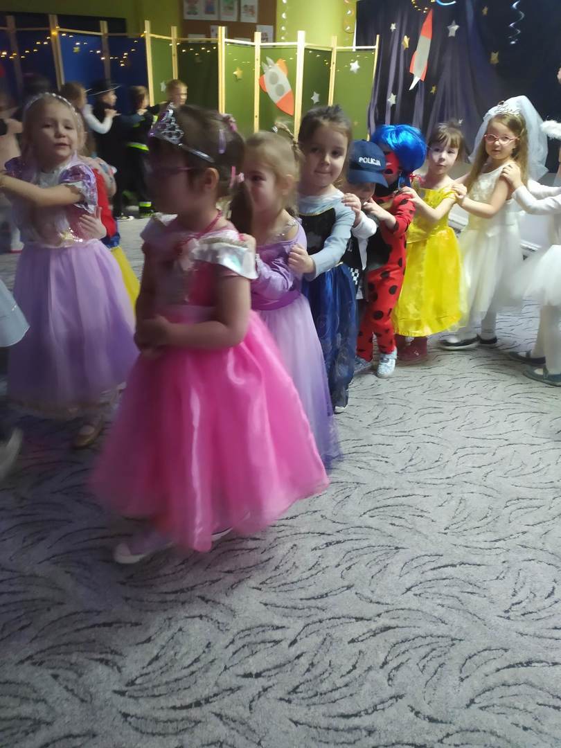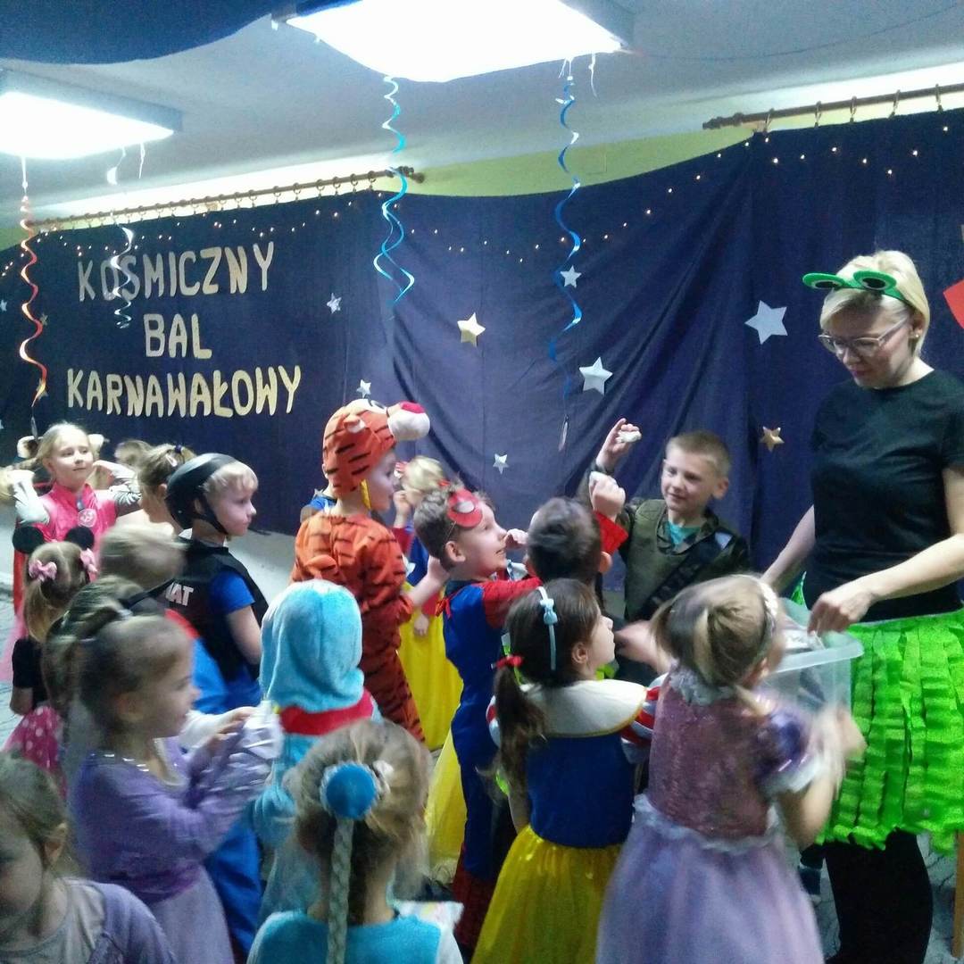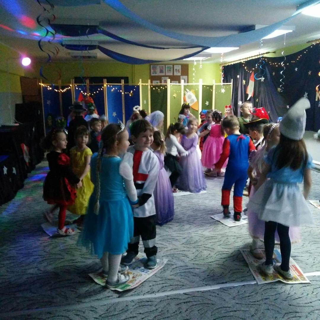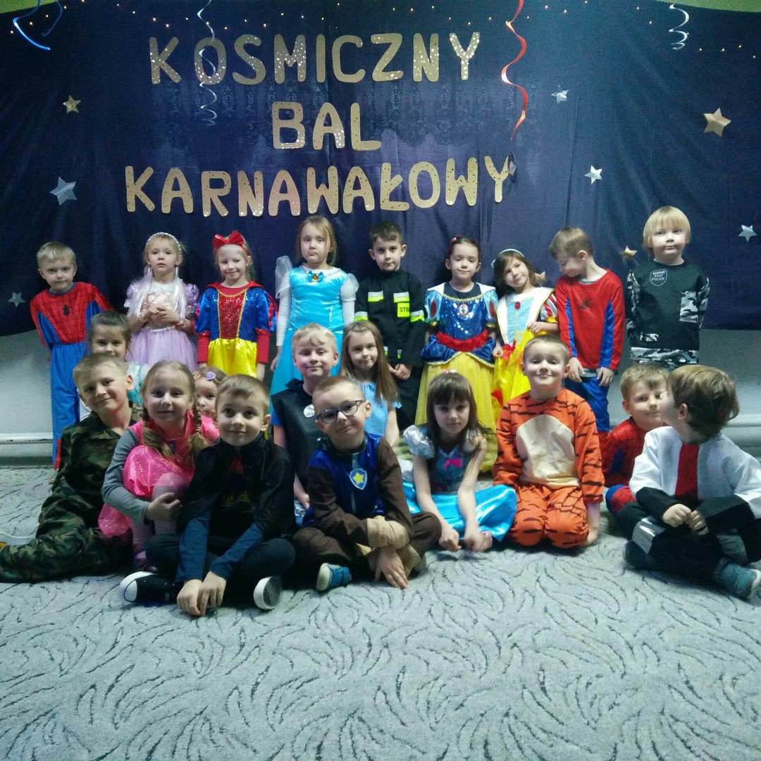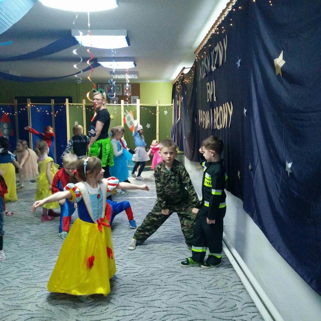 Co to był za cudowny bal karnawałowy. Kolorowe stroje, kosmiczny wystrój sali i skoczna muzyka wprowadziły wszystkich w zabawowy nastrój. Dzieci z niecierpliwością czekały na ten dzień. Już od dłuższego czasu opowiadały za kogo przebiorą się na nasz bal. Oczywiście nie zabrakło najróżniejszych postaci z bajek, superbohaterów, księżniczek i zwierzątek. Każdy prezentował się wspaniale.