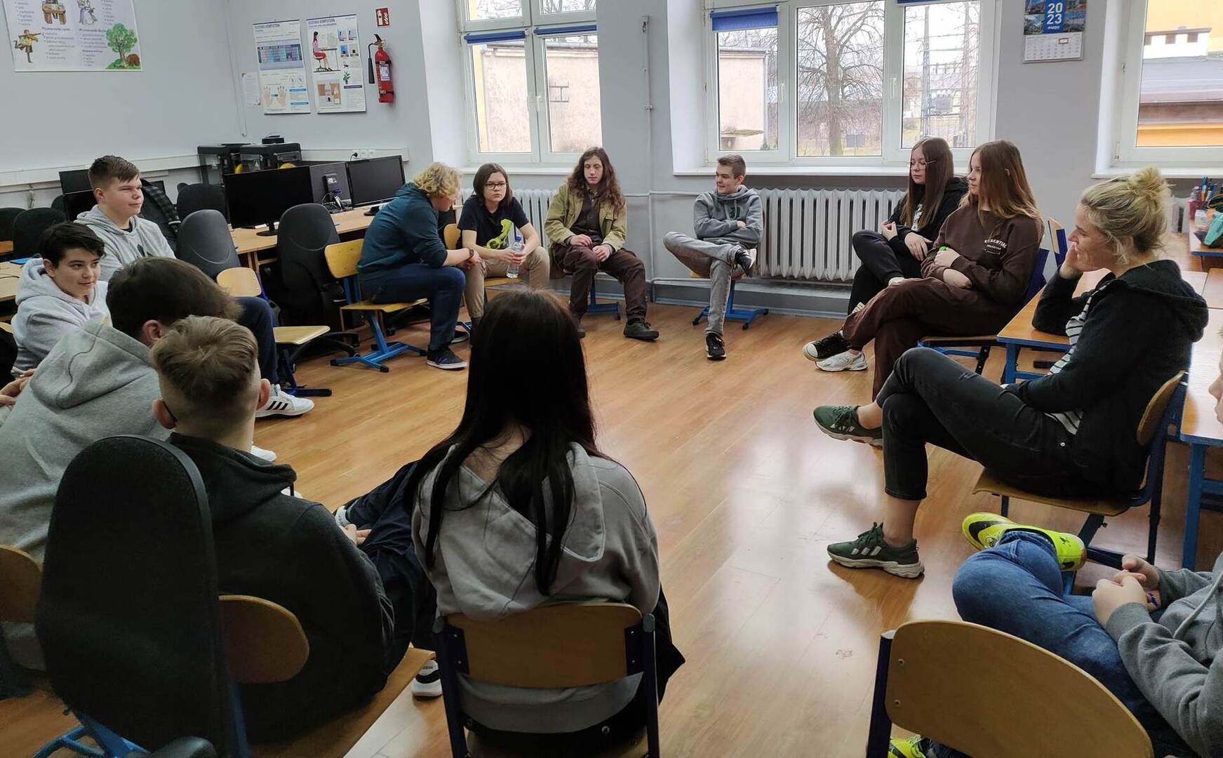 Dnia 03.03.2023r. w naszej szkole odbyły się warsztaty profilaktyczne sfinansowane przez Gminną Komisję Rozwiązywania Problemów Alkoholowych. W warsztatach brały udział klasy 6,7 i 8. Tematyka: ,,Wyloguj się z sieci" przeciwdziałanie uzależnienim behawioralny, strefy multimediów (telefony komórkowe, gry komputerowe, Internet) ,, Debata-przeciwdziałanie zagrożeniom związanym z piciem alkoholu" Warsztaty przeprowadzone przez Panią Julię Selmaj były dla naszych uczniów bardzo ciekawe i cieszyły się dużym zainteresowaniem.