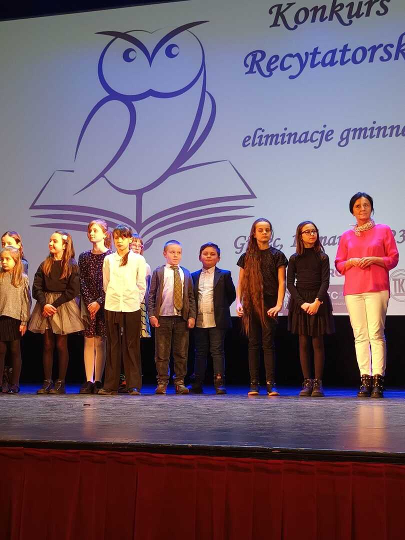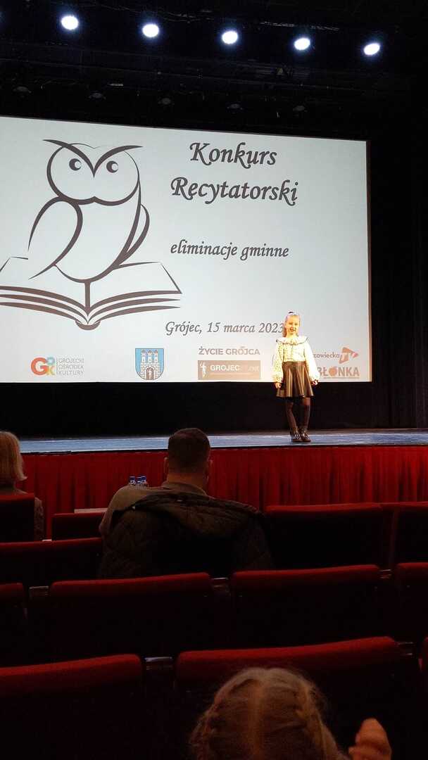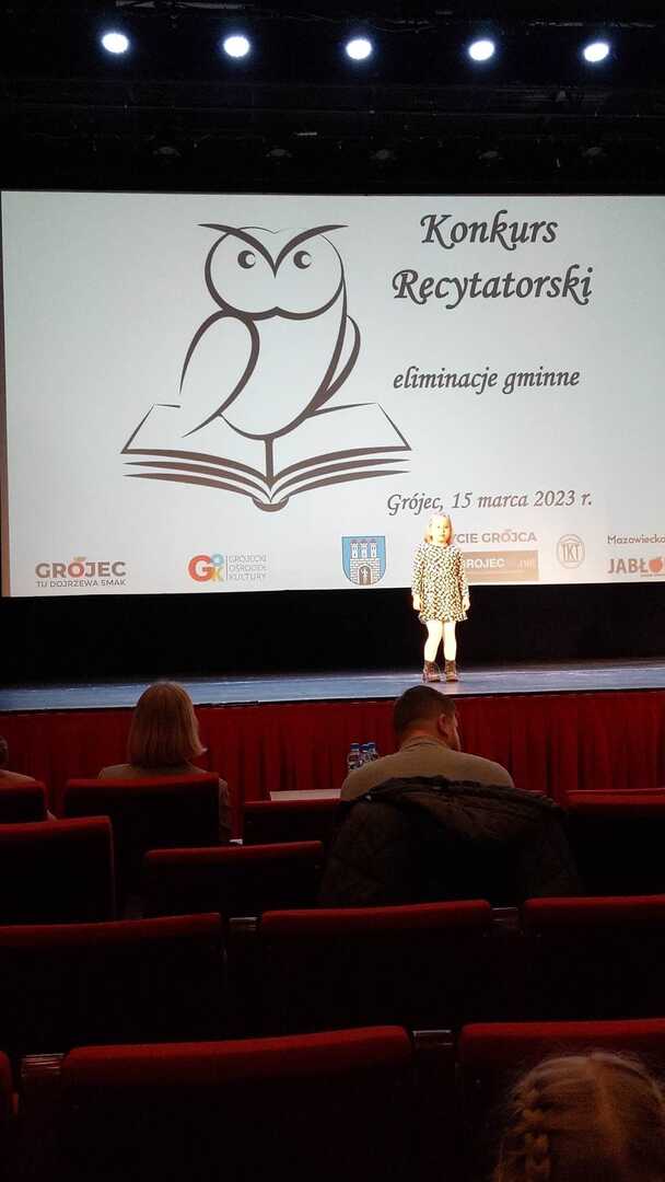 Dnia 15 marca 2023 r. odbyły się gminne eliminacje XL Małego Konkursu Recytatorskiego. Głównym jego celem było rozbudzanie wrażliwości na piękno poezji, upowszechnianie kultury żywego słowa oraz kształtowanie zdolności językowych. Uczestnicy ze szkół miasta i gminy Grójec występowali w sali widowiskowej GOK w trzech kategoriach: I - przedszkola, II- klasy I-IV, III- klasy V-VIII. Poziom konkursu był wysoki i trudno było wyłonić najlepszych. Naszą placówkę reprezentowało 9 dzieci. A oto laureaci: