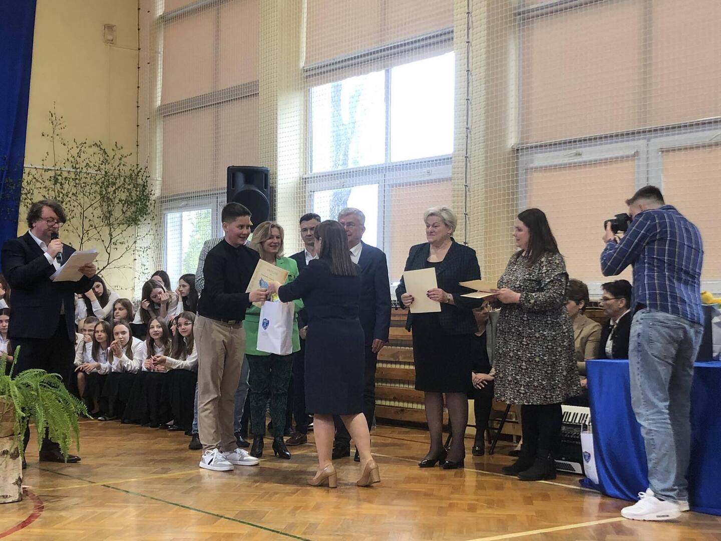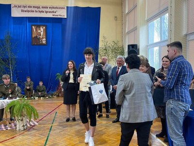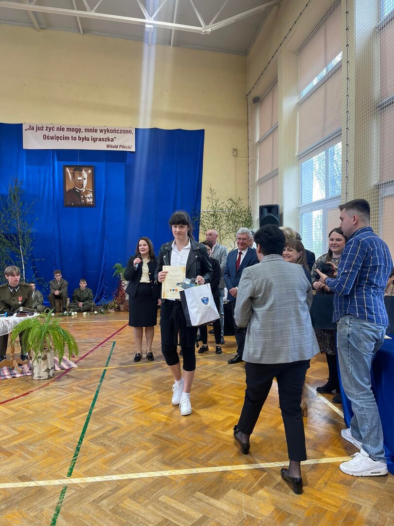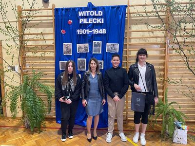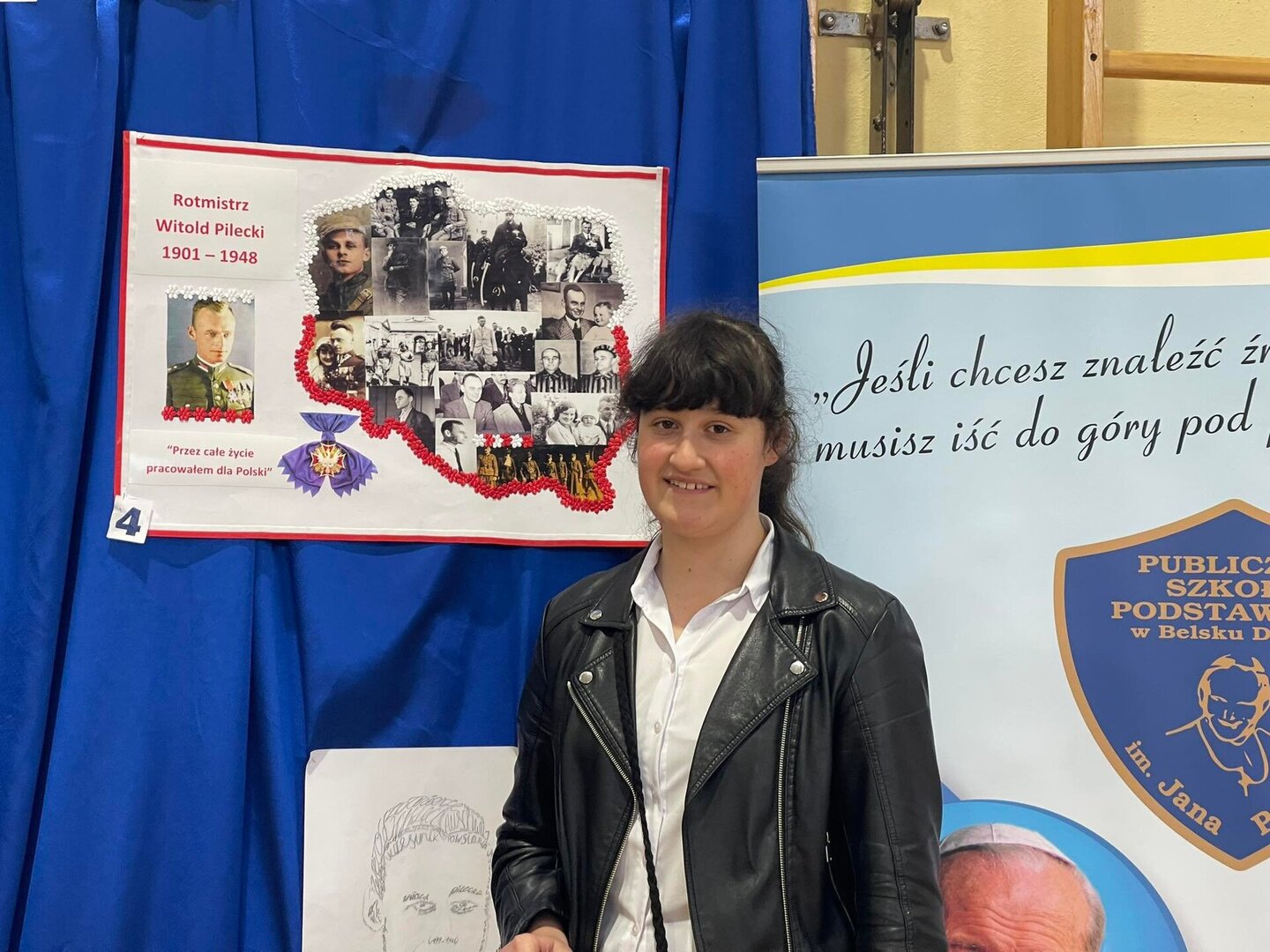 W dniu dzisiejszym tj. 25.04.2023 r. uczniowie naszej szkoły brali aktywny udział w II Międzyszkolnym Konkursie Wiedzy o Witoldzie Pileckim organizowanym przez Publiczną Szkołę Podstawową im. Jana Pawła II w Belsku Dużym. Naszą szkołę reprezentowali uczniowie w dwóch kategoriach: - plastycznej: Julia Łubińska z klasy 7 oraz Alicja Justyńska z klasy 8 - testu wiedzy: Julia Łubińska z klasy 7 oraz Aleksander Szwech z klasy 8. Sukces odniosła Julia Łubińska zajmując I miejsce w kategorii plastycznej. Ogromne podziękowania oraz gratulacje dla naszej zdolnej młodzieży za udział i trud włożony w przygotowanie się do konkursu. Dziękujemy organizatorom za zaproszenie, przepięknie przedstawioną żywą lekcję historii oraz przeprowadzenie konkursu.