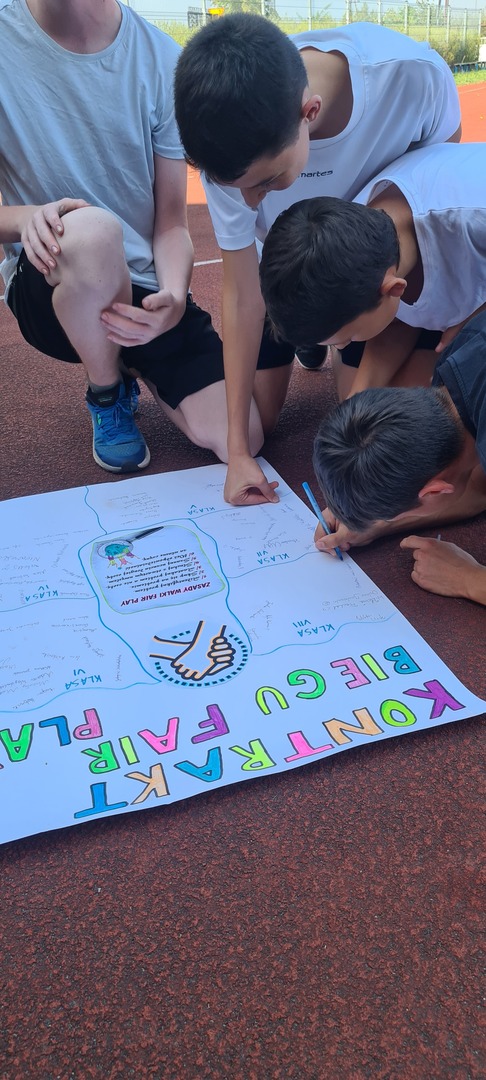 7 września obchodzony jest Światowy Dzień Fair Play - święto ustanowione w 2020 r. przez Międzynarodowy Komitet Fair Play (CIFP). Jak co roku nasza Szkoła wzięła udział w akcji, organizując Bieg Fair Play na zajęciach wychowania fizycznego. Każda klasa podpisała kontrakt biegu i zasad fair play. Kontrakt zawisł na korytarzu szkolnym przy sali gimnastycznej, by przypominać uczniom przez cały rok o wartościach etycznych w sporcie i w życiu.