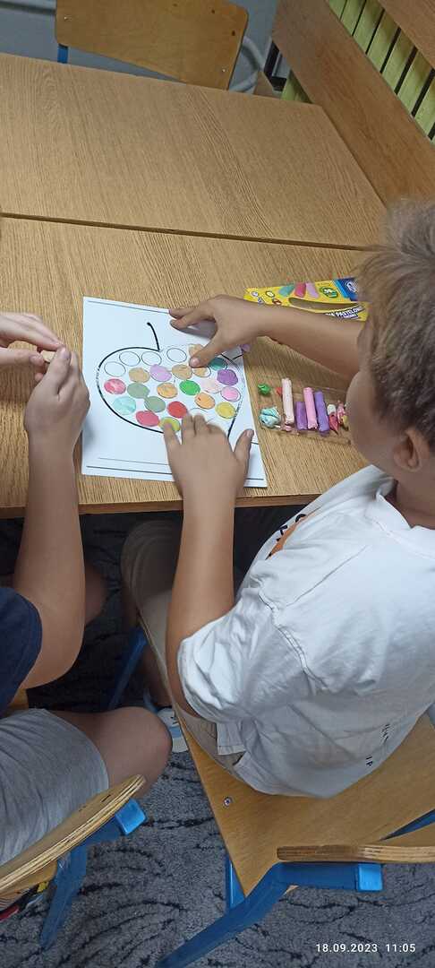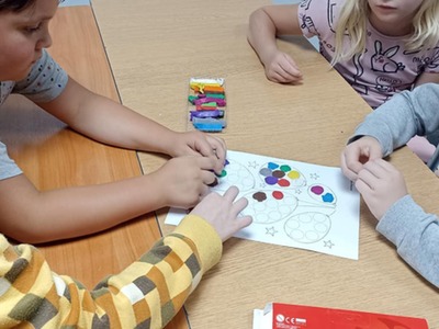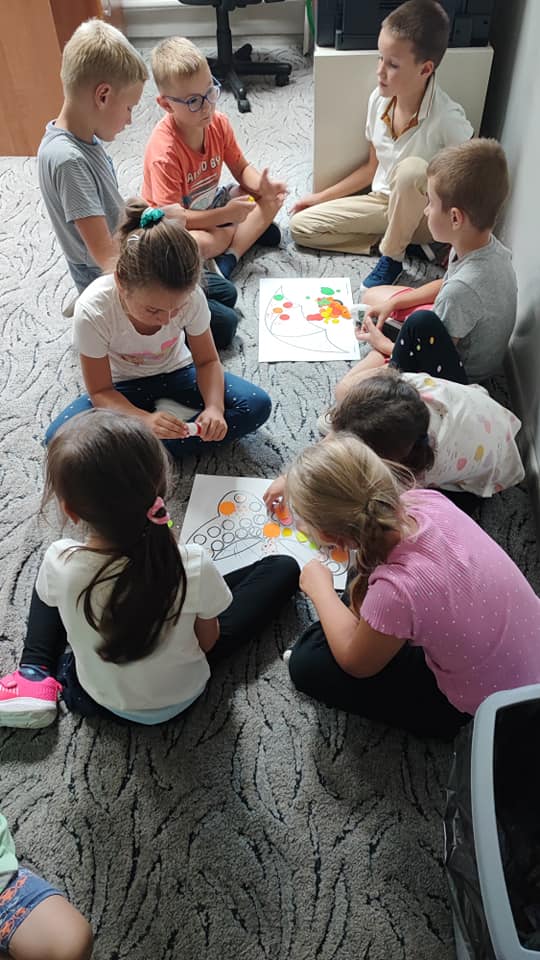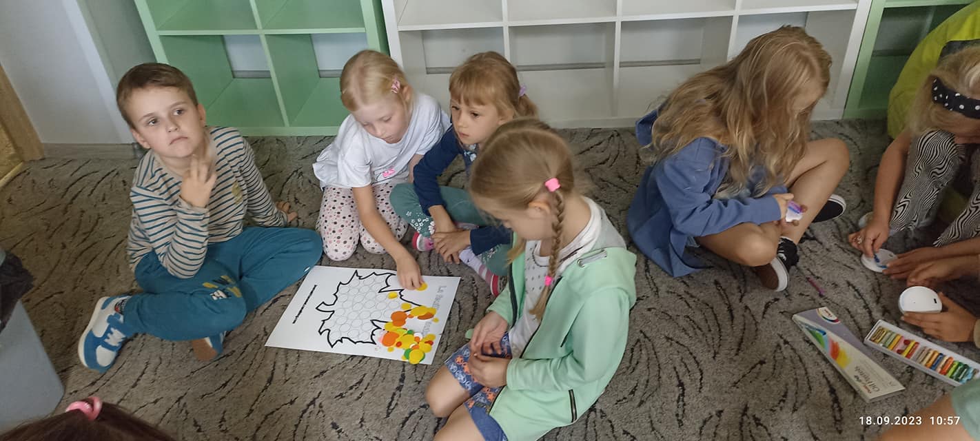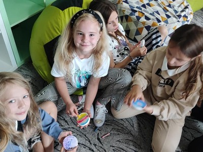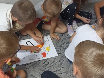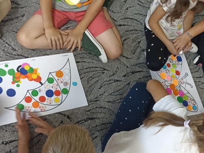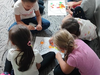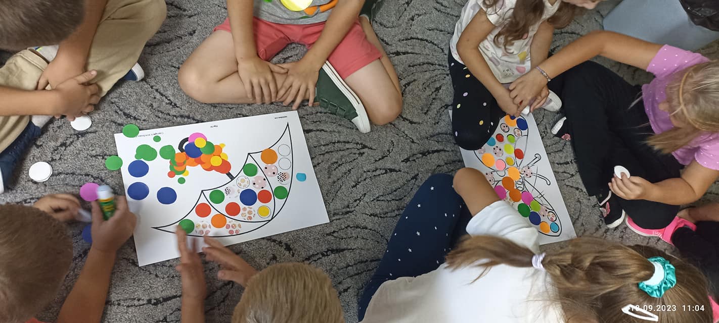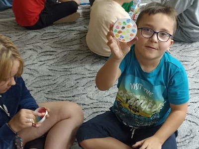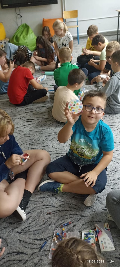 Uczniowie wykonali także prace plastyczne różnymi technikami, których motywem przewodnim była kropka