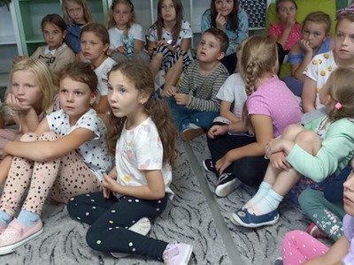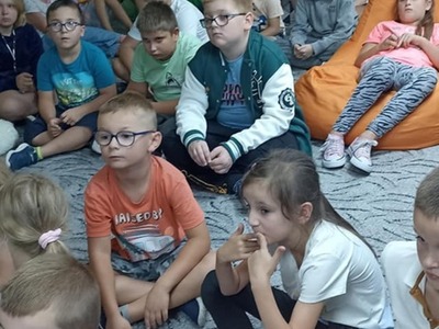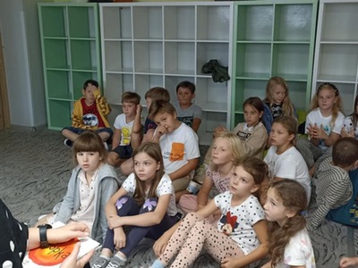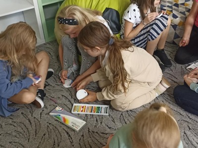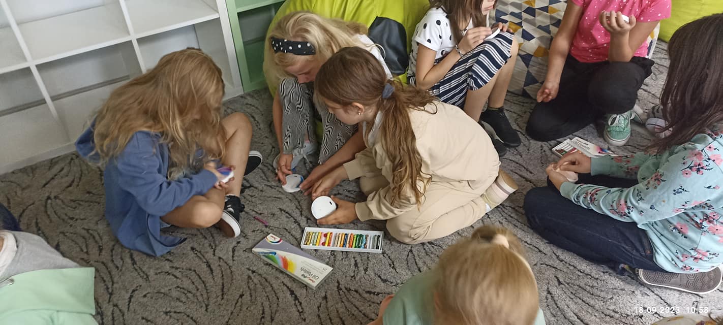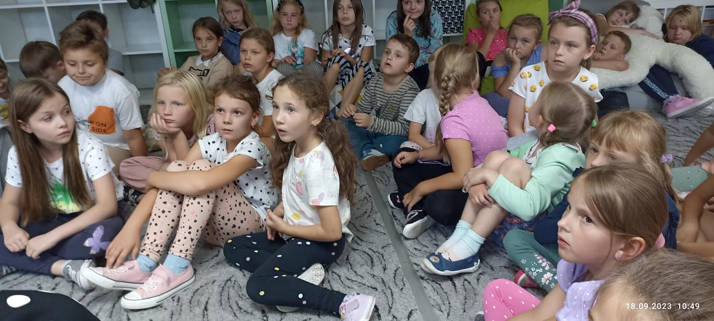 . Dzieci z klas I-IV poznały historię małej Vashti, która dzięki malutkiej kropce i doskonałej "pani od plastyki" uwierzyła w swój talent i możliwości.