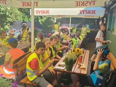 W drodze powrotnej czekała na nas kolejna niespodzianka. Państwo Katarzyna Leszczyńska i Tomasz Leszczyńscy ugościli naszą drużynę rowerową kiełbasą z grilla, za co serdecznie dziękujemy