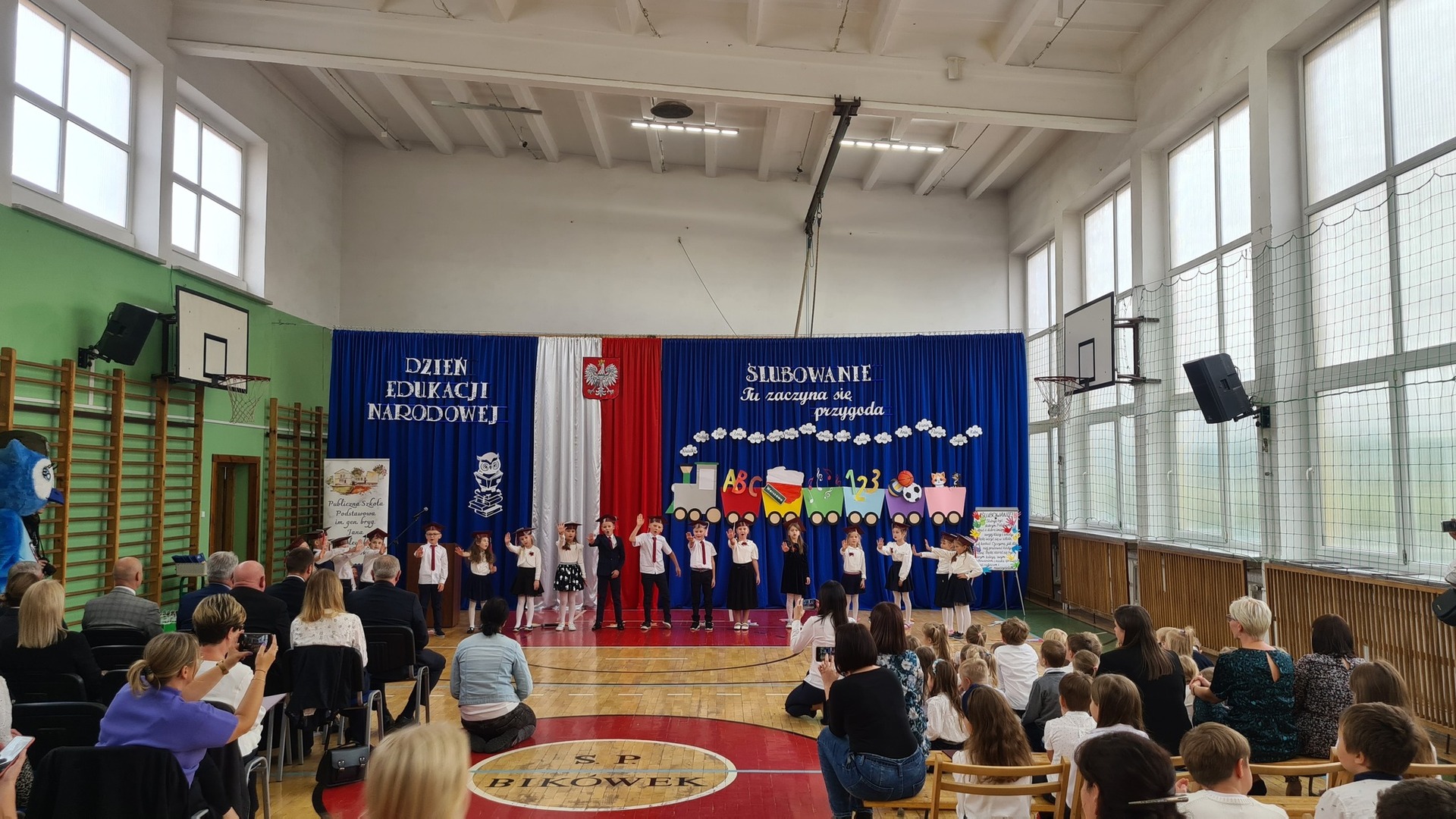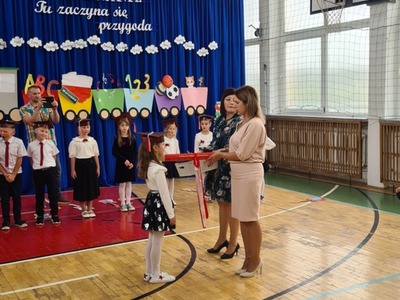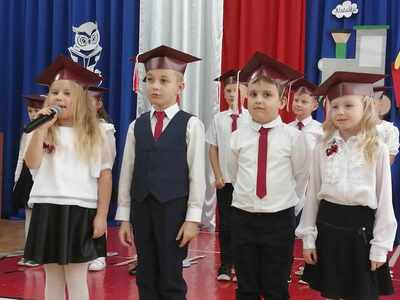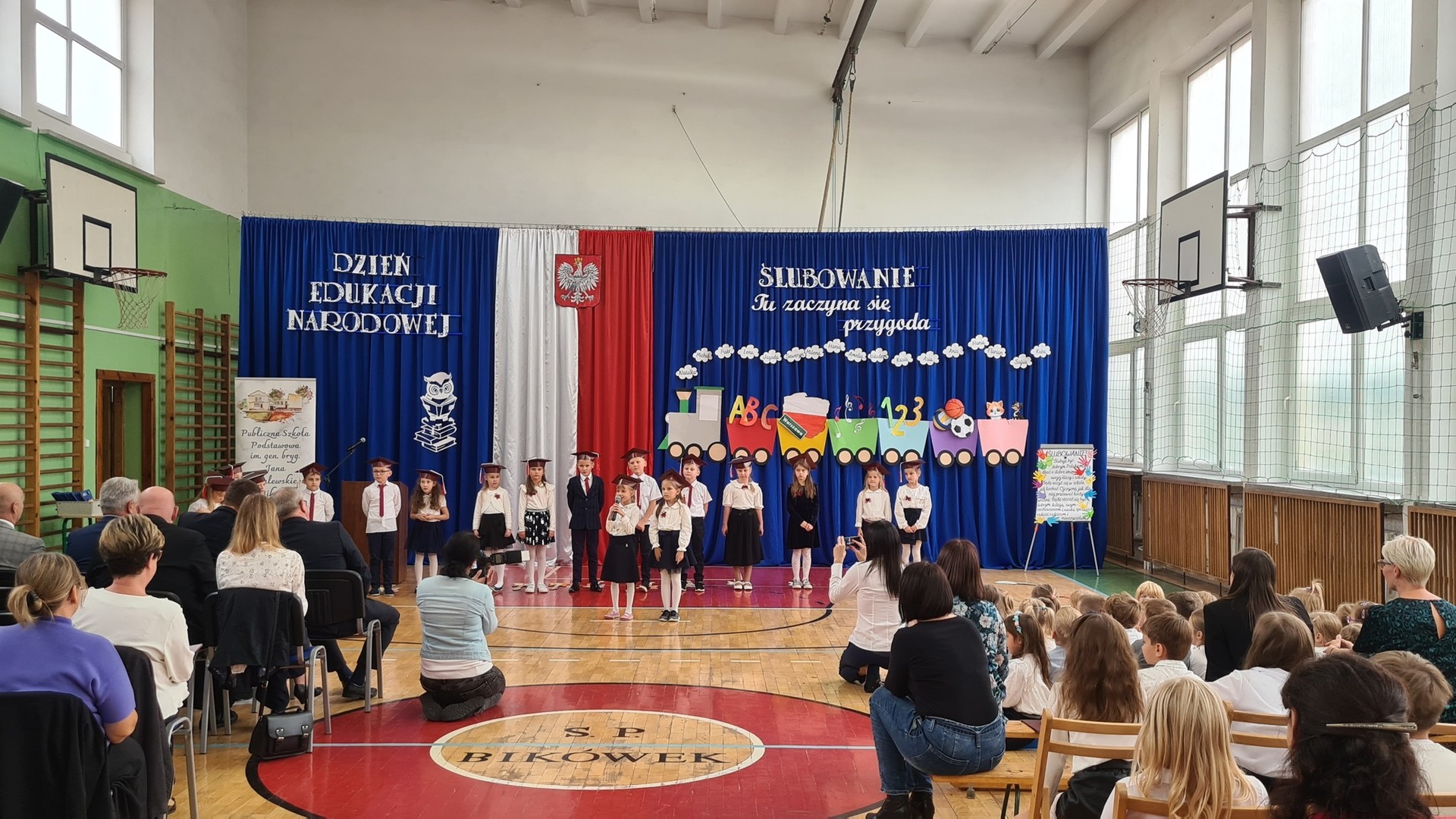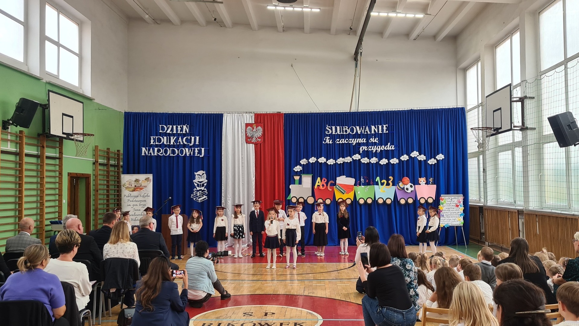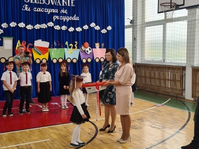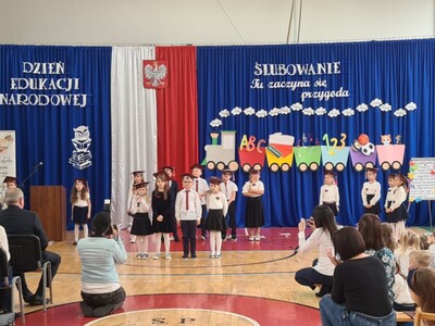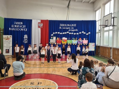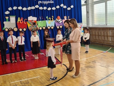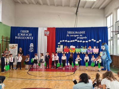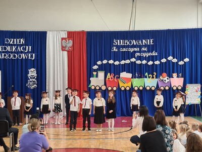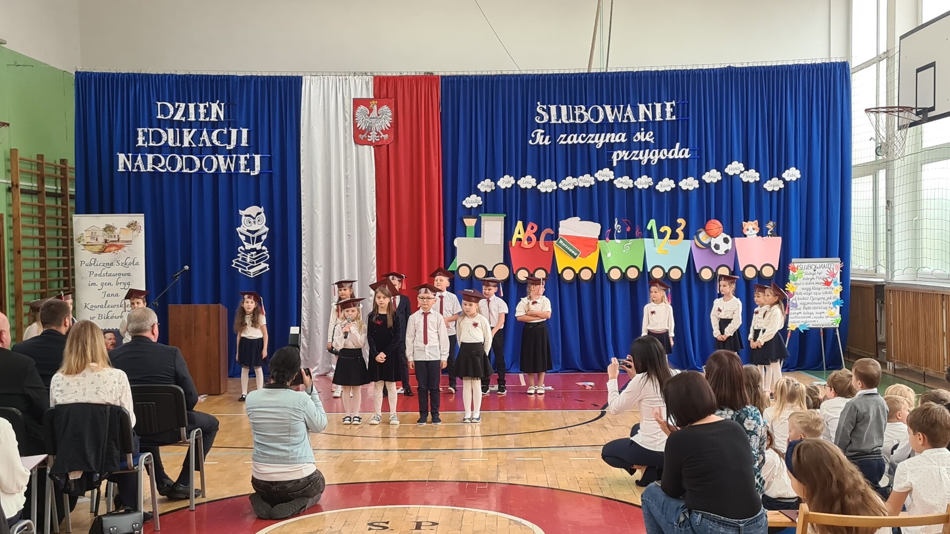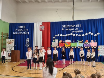 13 października 2023 roku 17 pierwszoklasistów w podniosłej atmosferze przed pocztem sztandarowym złożyło ślubowanie. Obiecali być wzorowymi uczniami, dbać o swoje zachowanie i poświęcać się nauce, by sprawiać radość nauczycielom i rodzicom. To ważny moment w życiu każdego ucznia, który symbolizuje ich zaangażowanie w proces edukacji. Pani dyrektor Agata Kępka symbolicznie pasowała ich na uczniów.