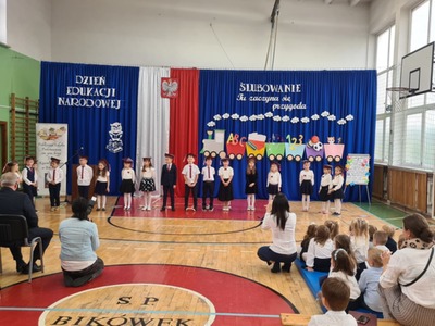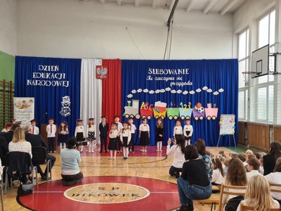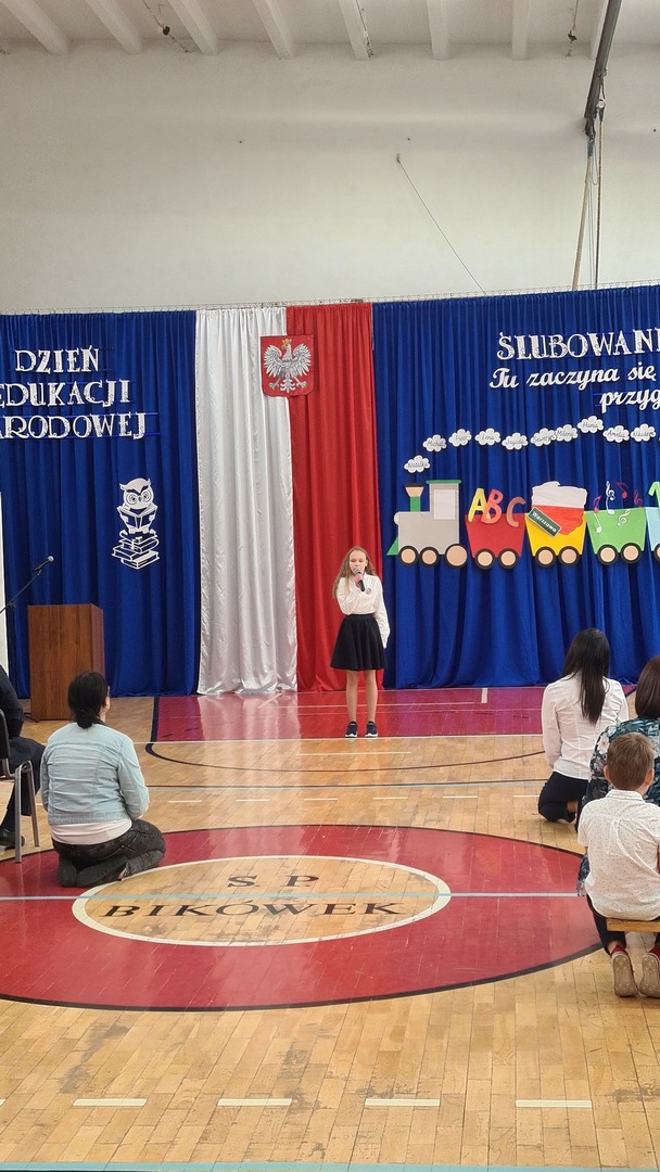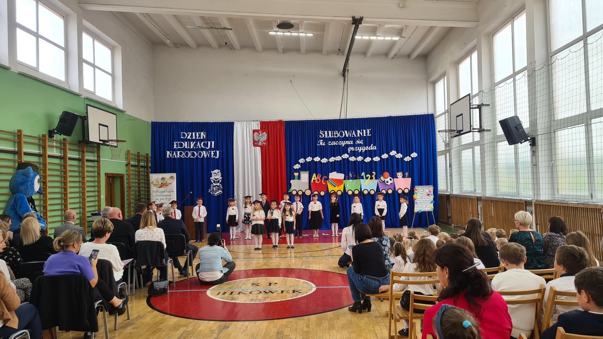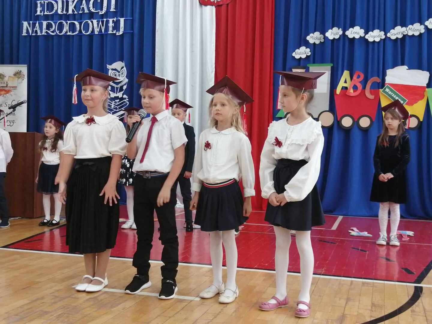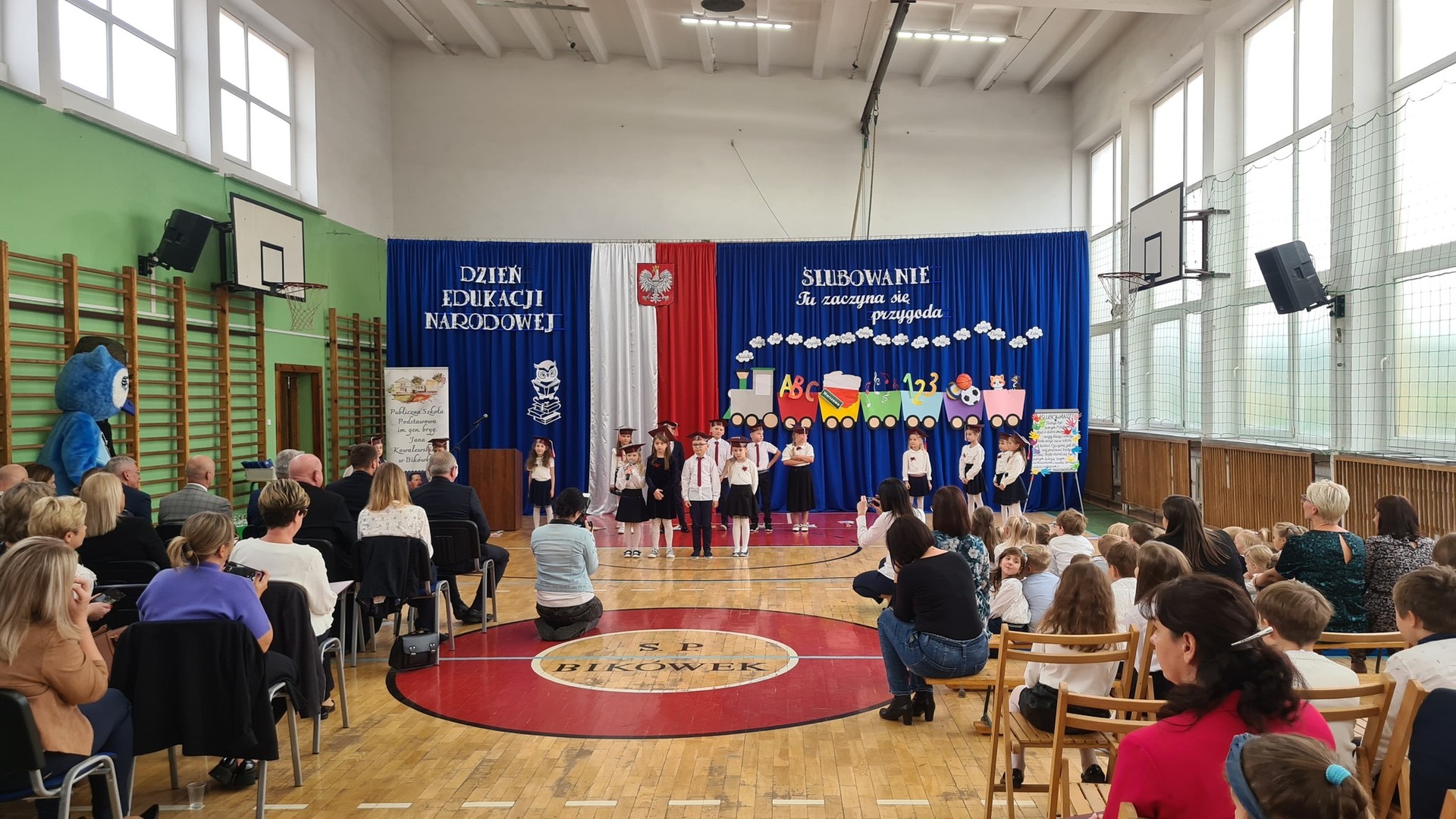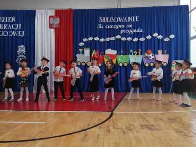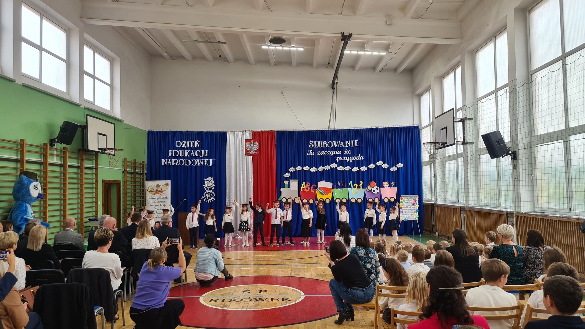 13 października 2023 roku 17 pierwszoklasistów w podniosłej atmosferze przed pocztem sztandarowym złożyło ślubowanie. Obiecali być wzorowymi uczniami, dbać o swoje zachowanie i poświęcać się nauce, by sprawiać radość nauczycielom i rodzicom. To ważny moment w życiu każdego ucznia, który symbolizuje ich zaangażowanie w proces edukacji. Pani dyrektor Agata Kępka symbolicznie pasowała ich na uczniów.