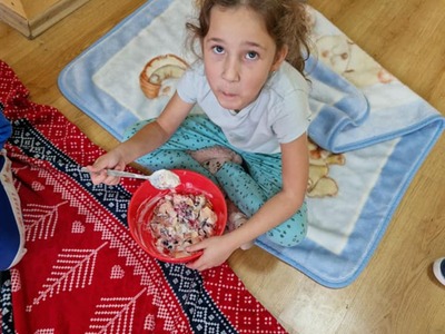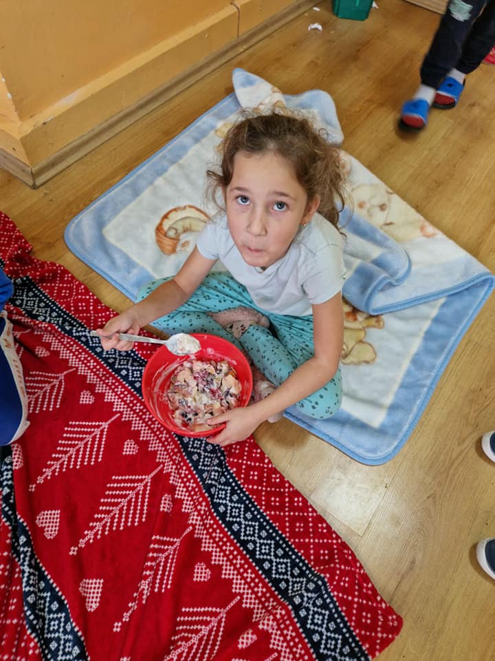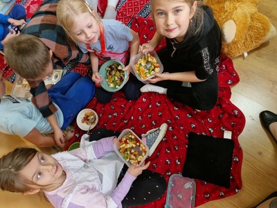 Własnoręcznie zrobiona sałatka wyśmienicie smakowała dzieciom i w mig znikała z miseczki.