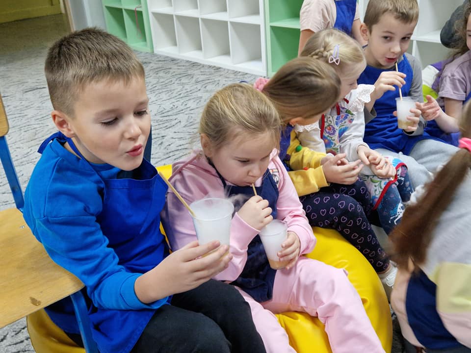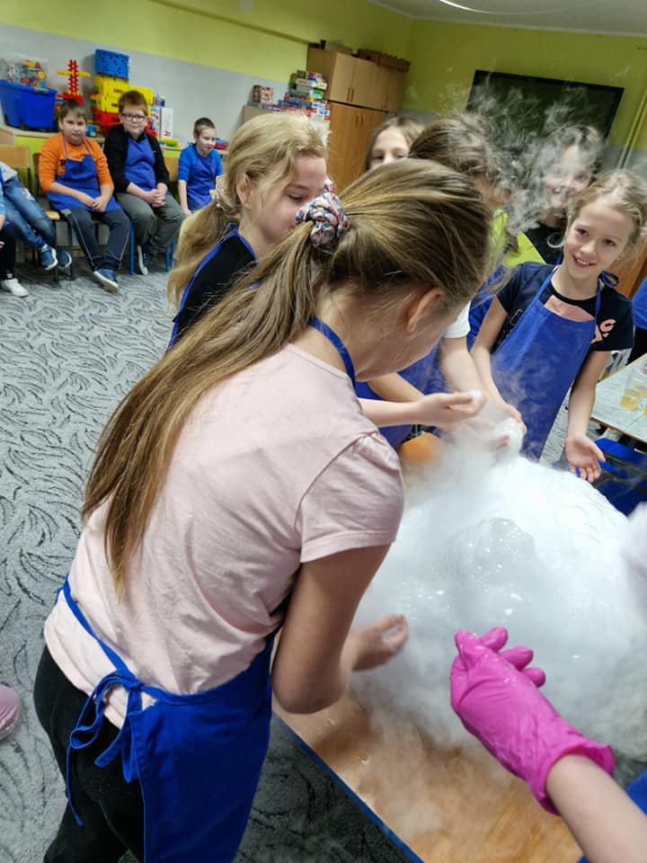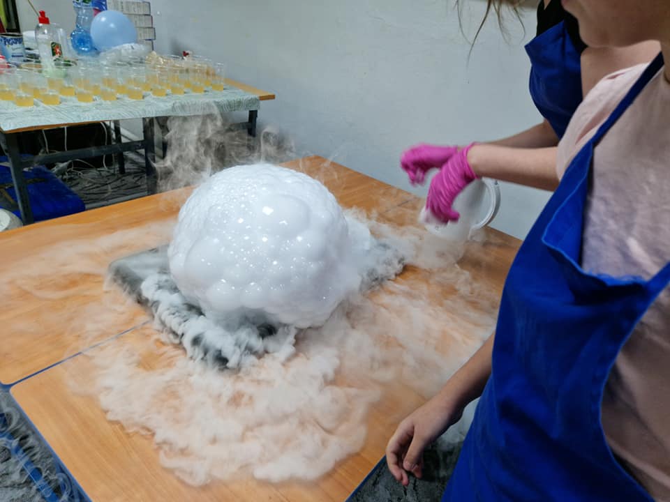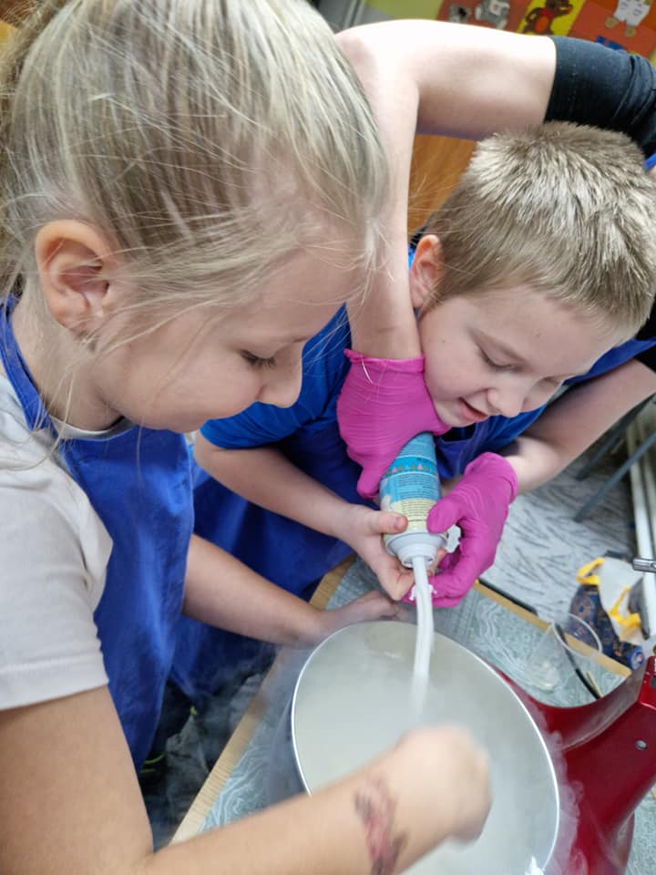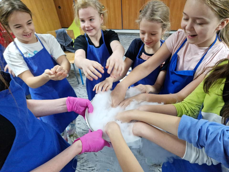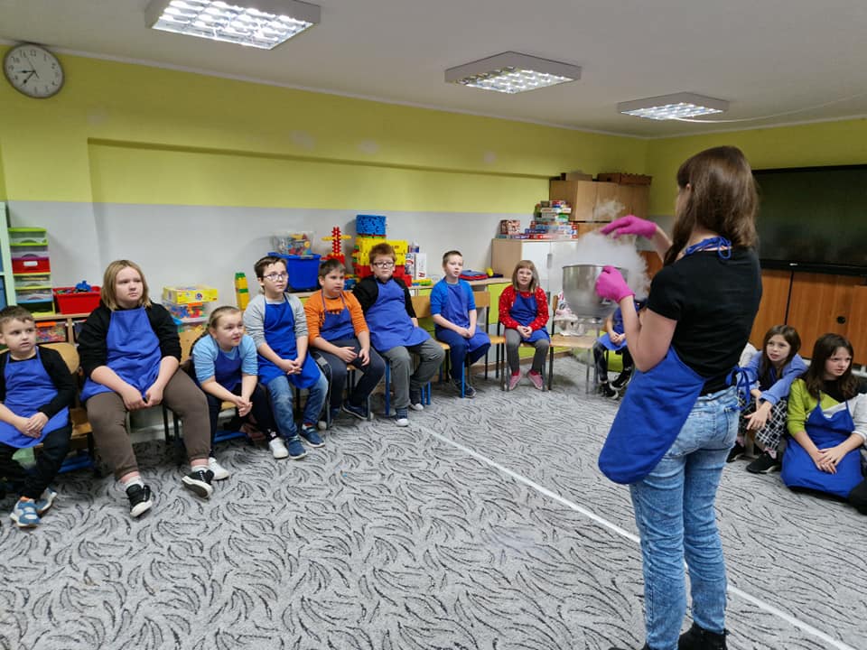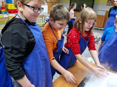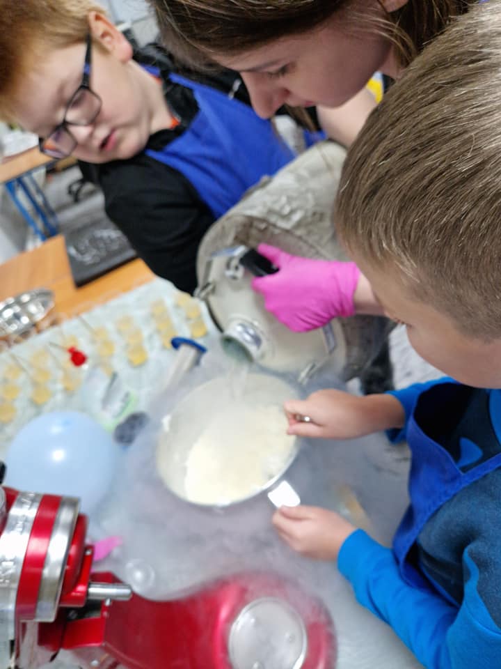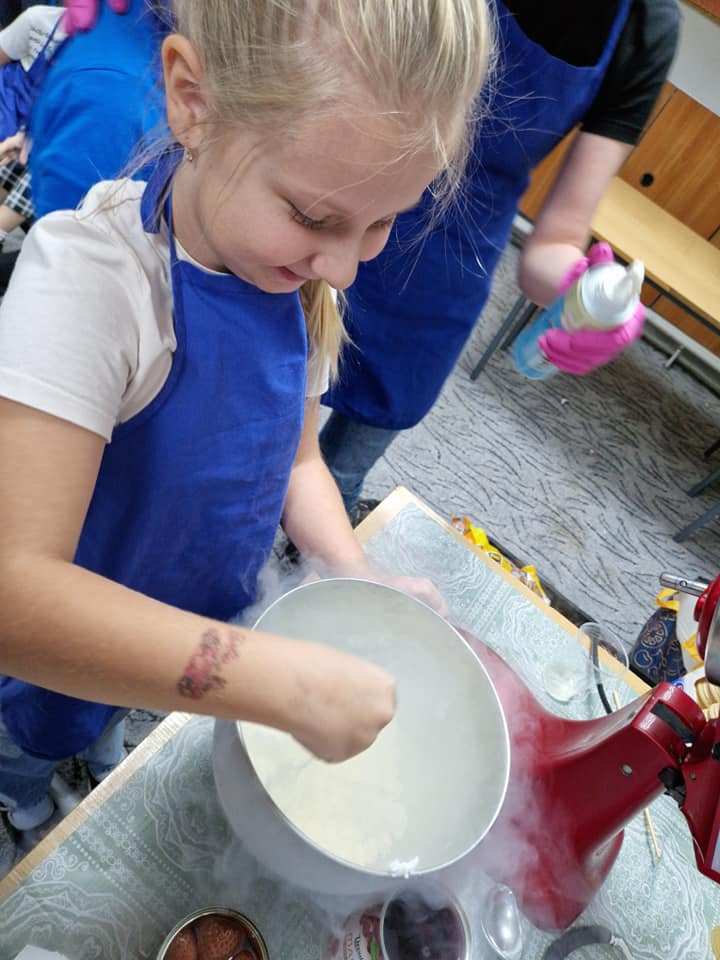 Ciekły azot oraz suchy lód służyły uczniom do przygotowania przepysznych przekąsek. Był śmietanowy popcorn, lody owocowe, dymiący soczek jabłkowy i chrupki kukurydziane, które zmieniły nas w smoki