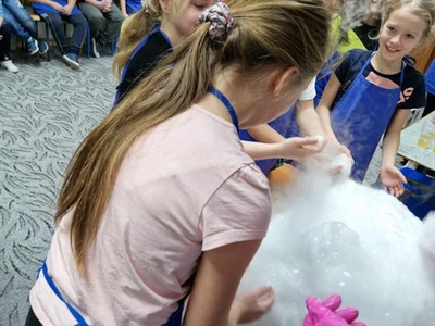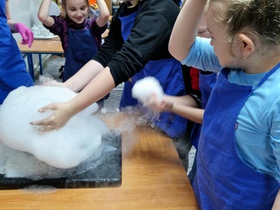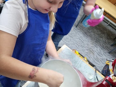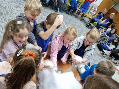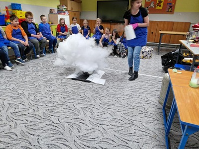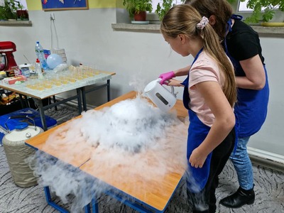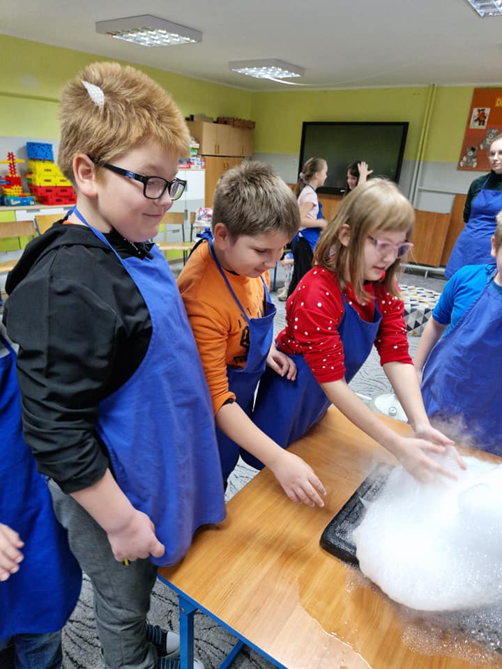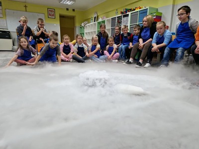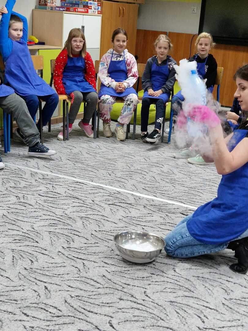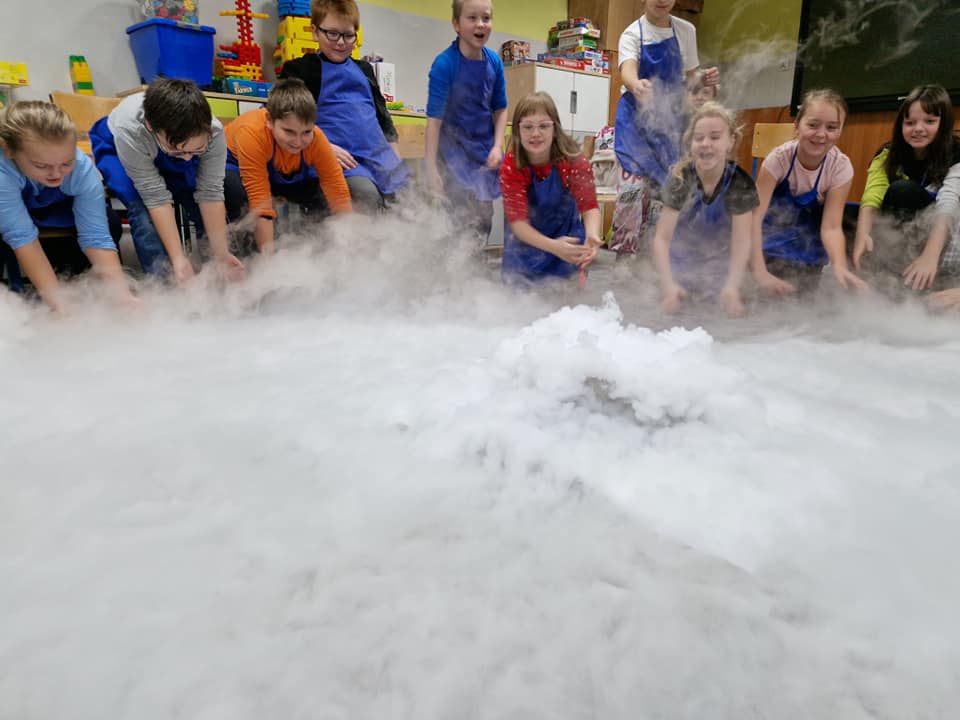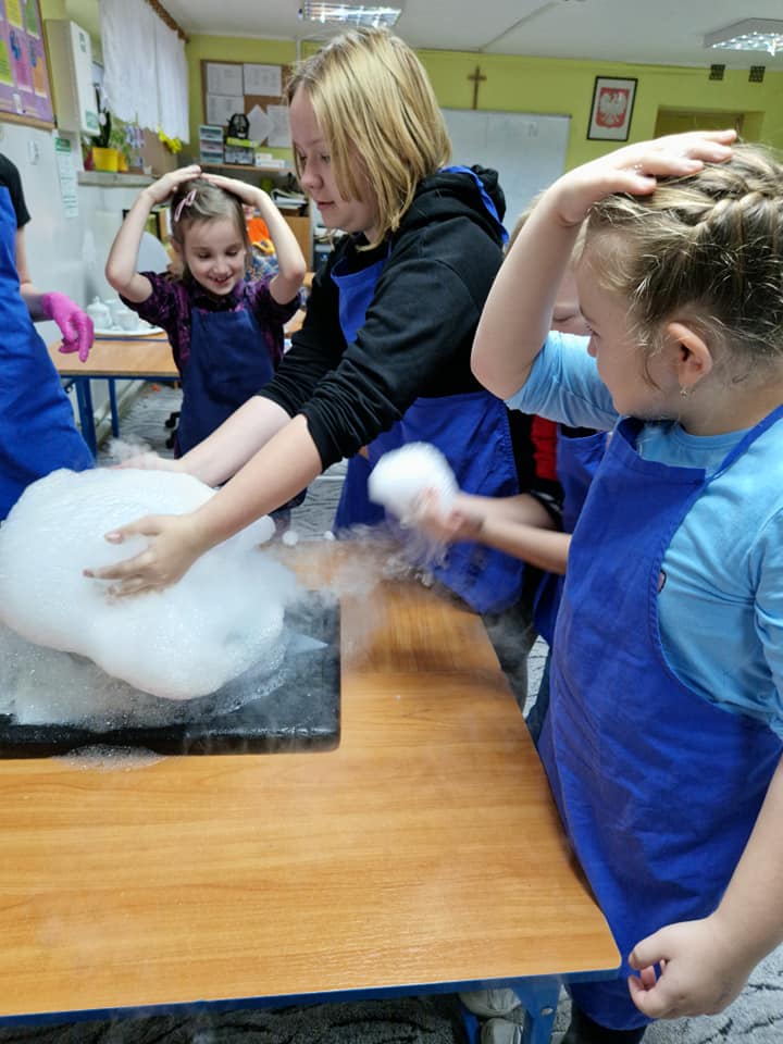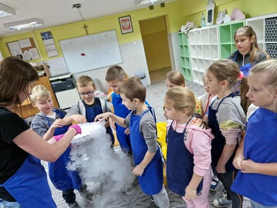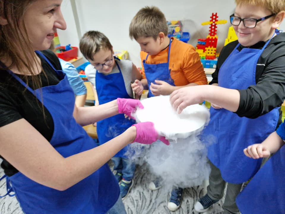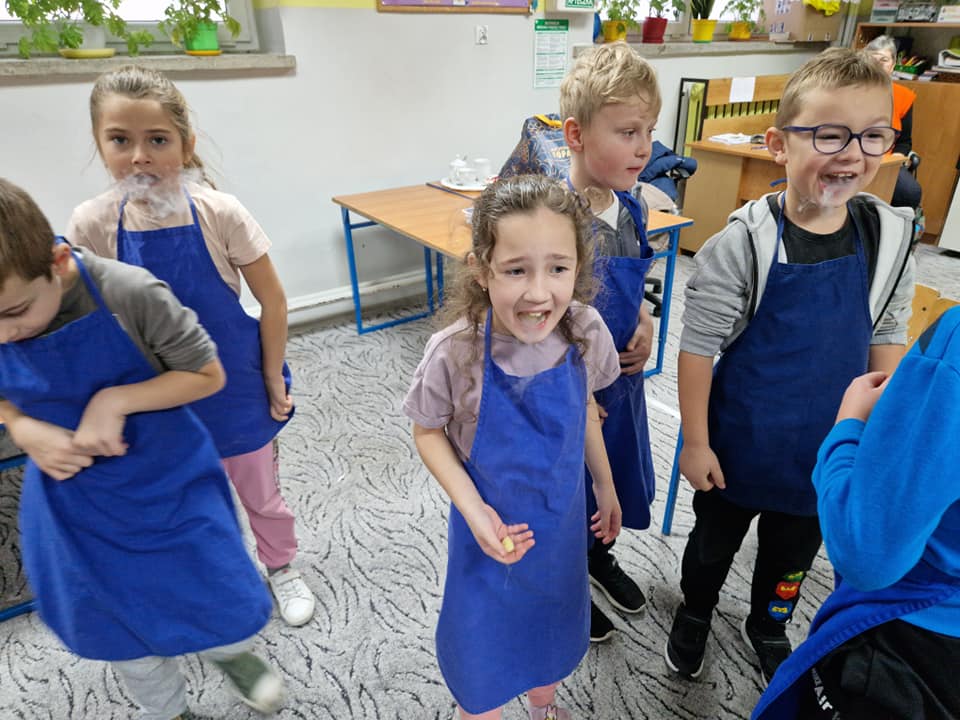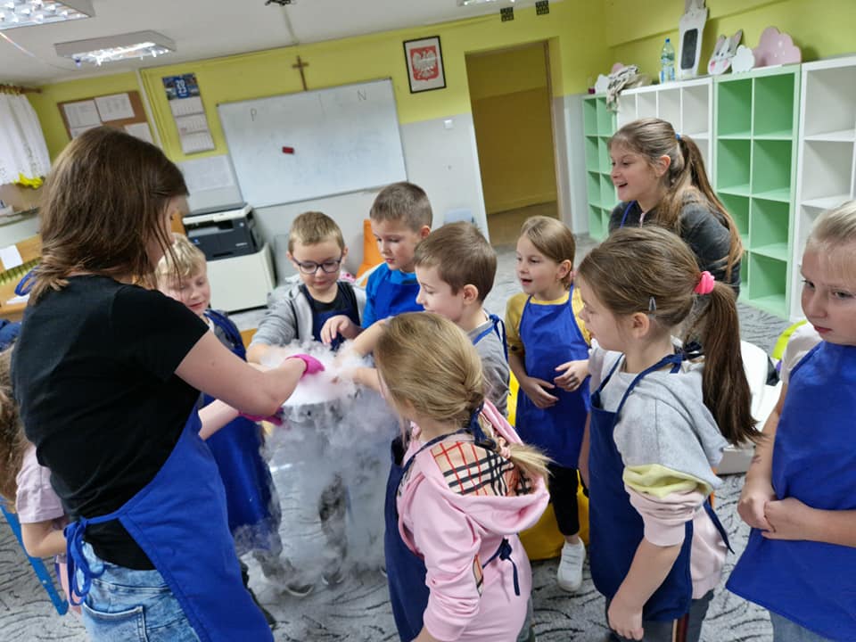 Ciekły azot oraz suchy lód służyły uczniom do przygotowania przepysznych przekąsek. Był śmietanowy popcorn, lody owocowe, dymiący soczek jabłkowy i chrupki kukurydziane, które zmieniły nas w smoki