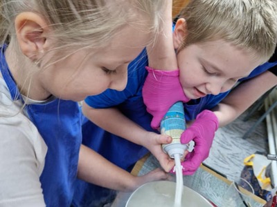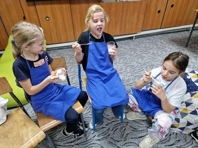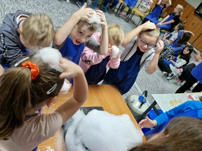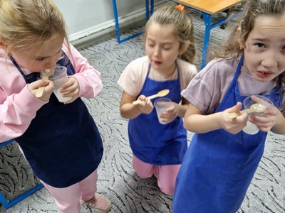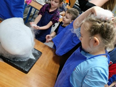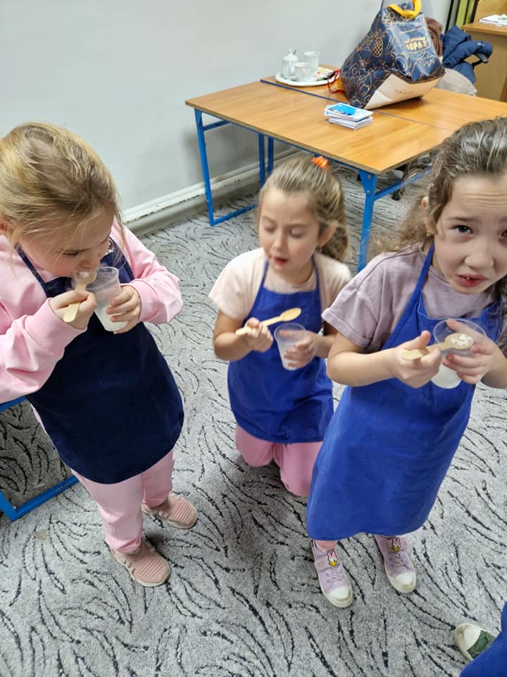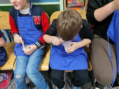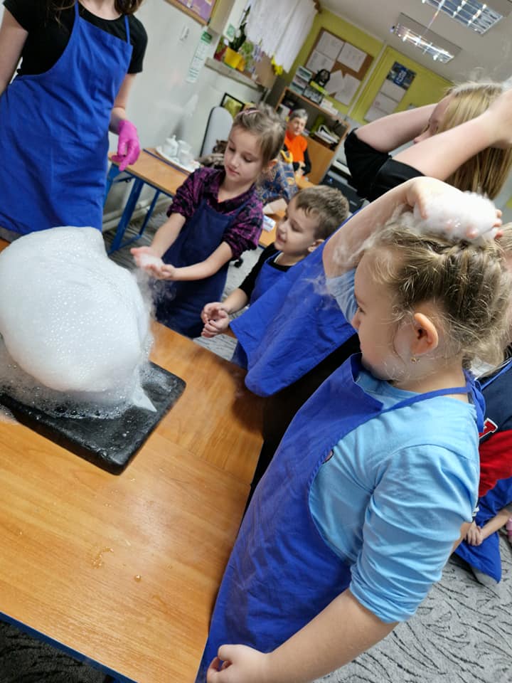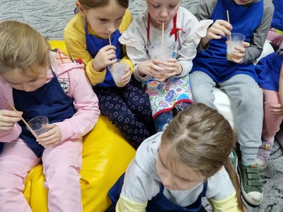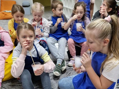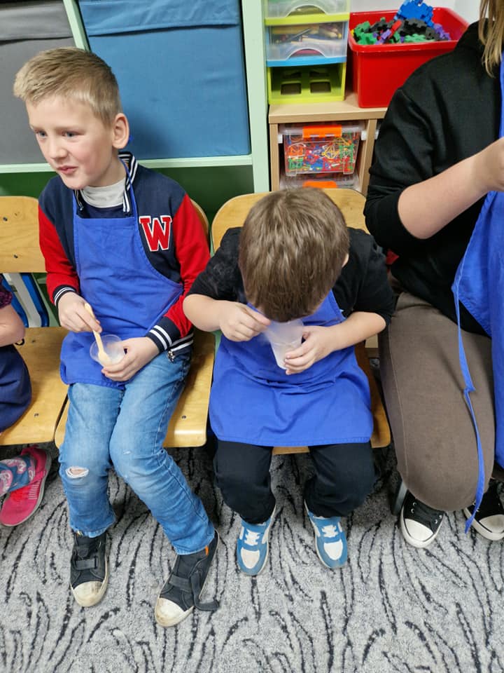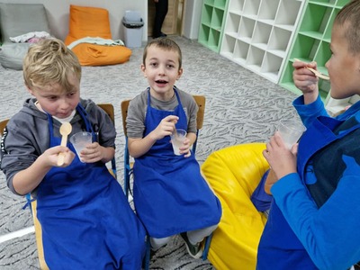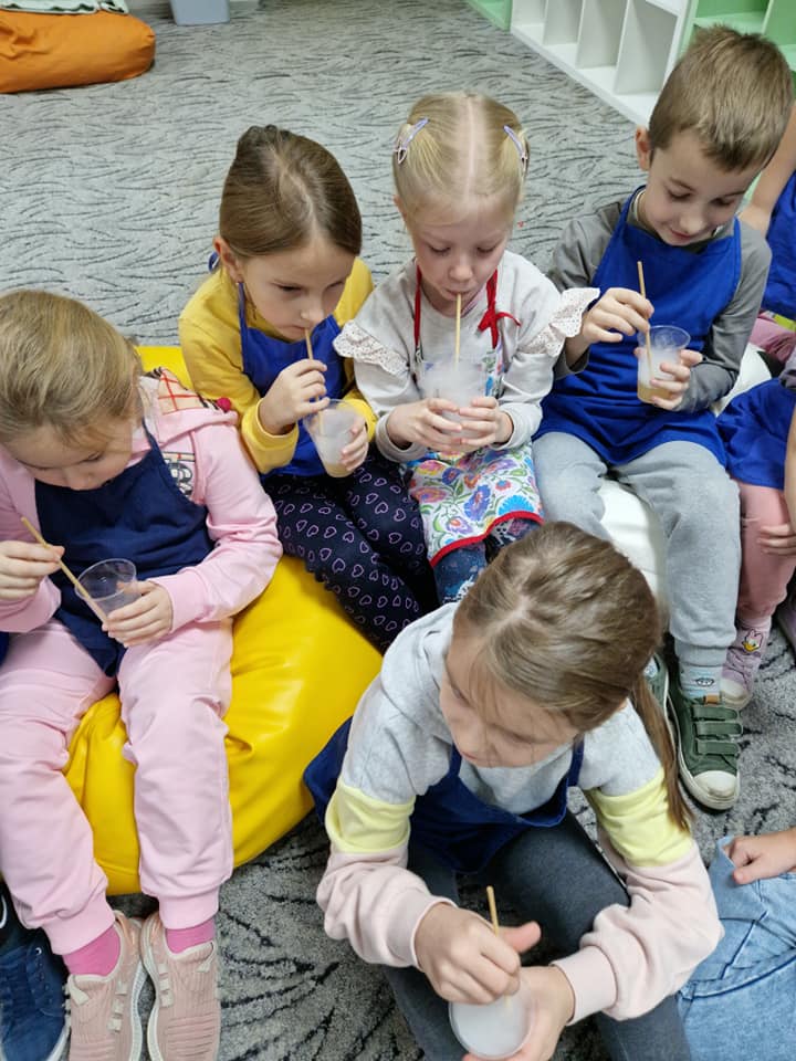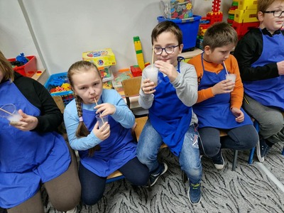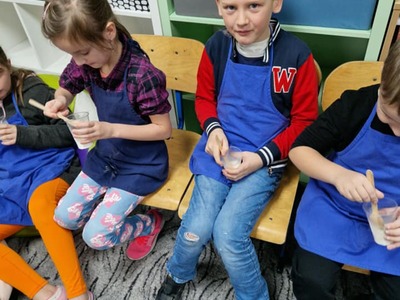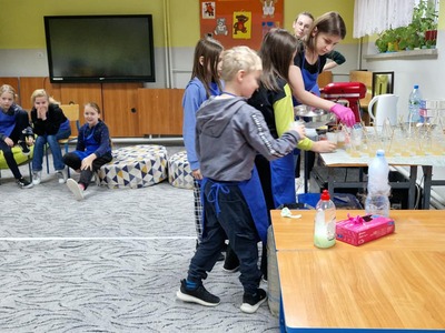 Uczniowie klasy 1 i 3 oraz oddzialy przedszkolne brały udział w warsztatach kuchni molekularnej.