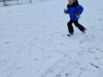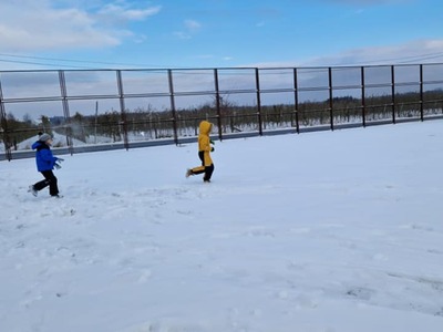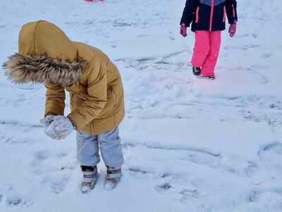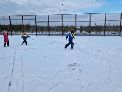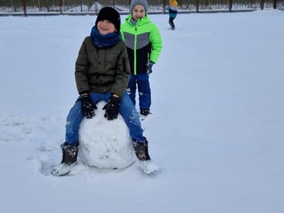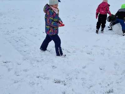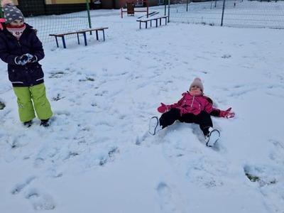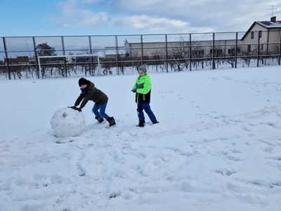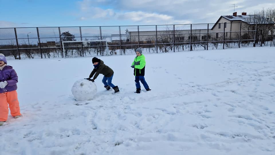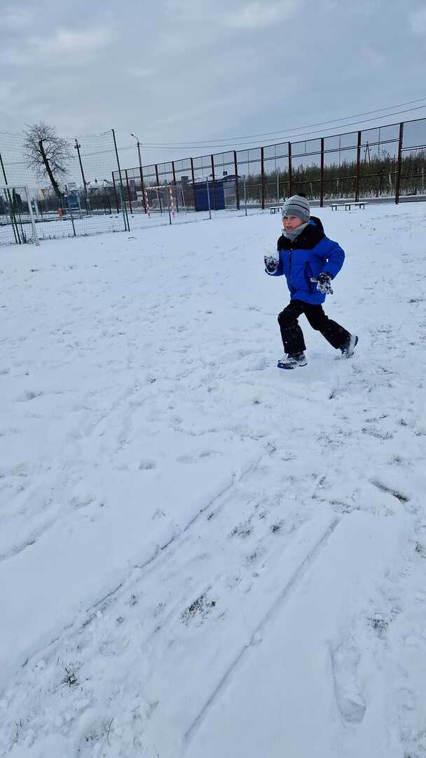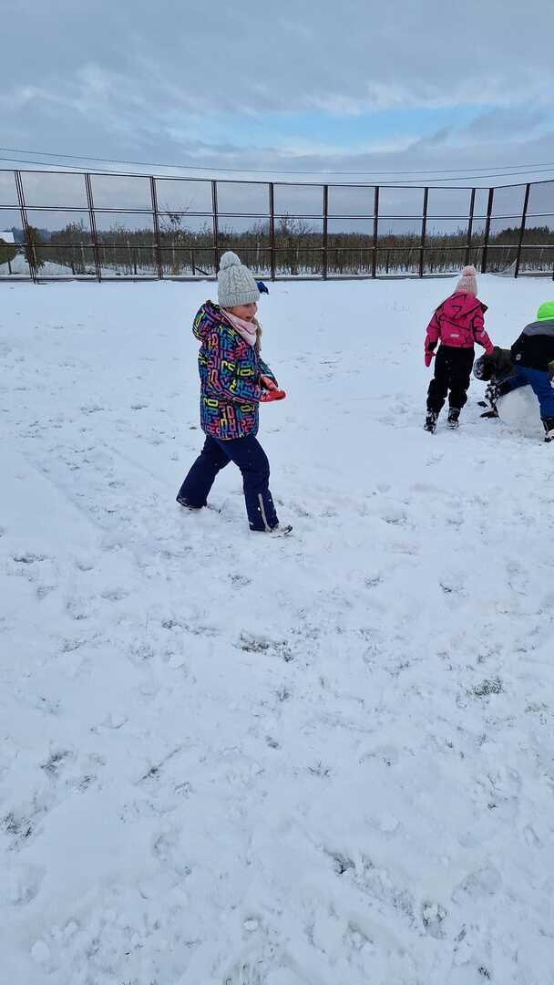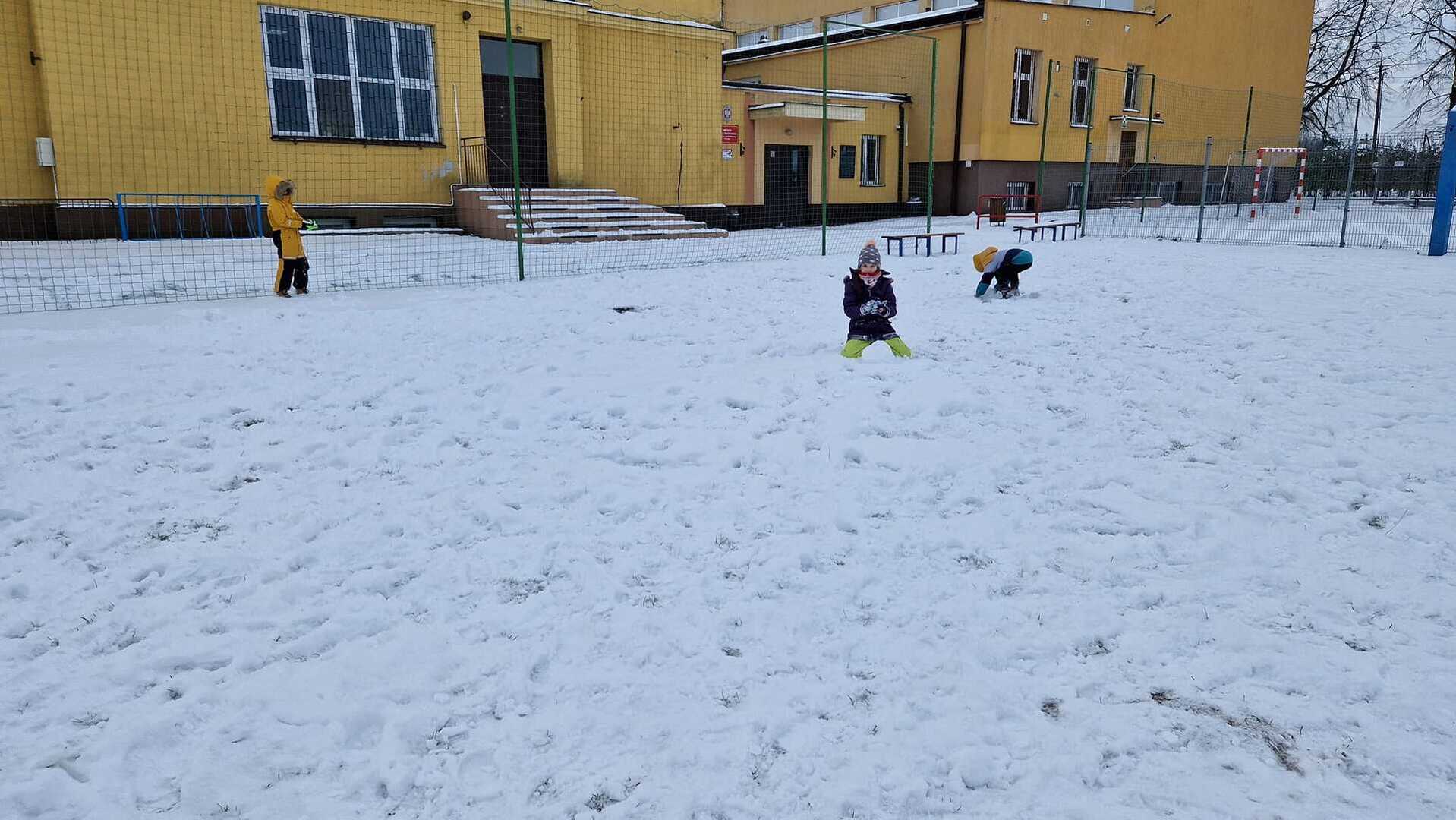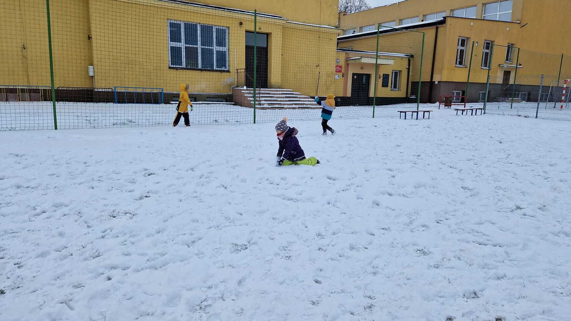 Pierwszaki 4 grudnia w ramach lekcji w-f korzystały z uroków zimy