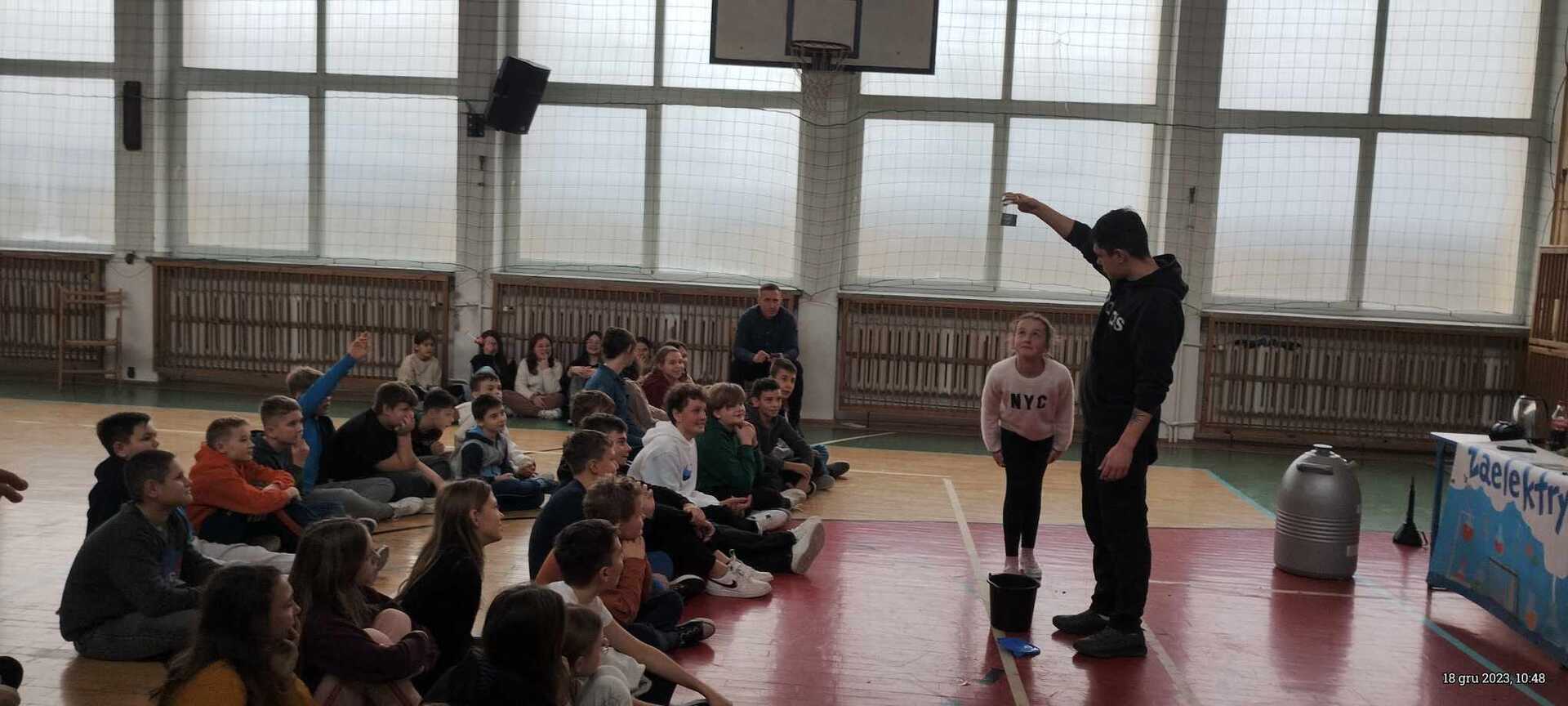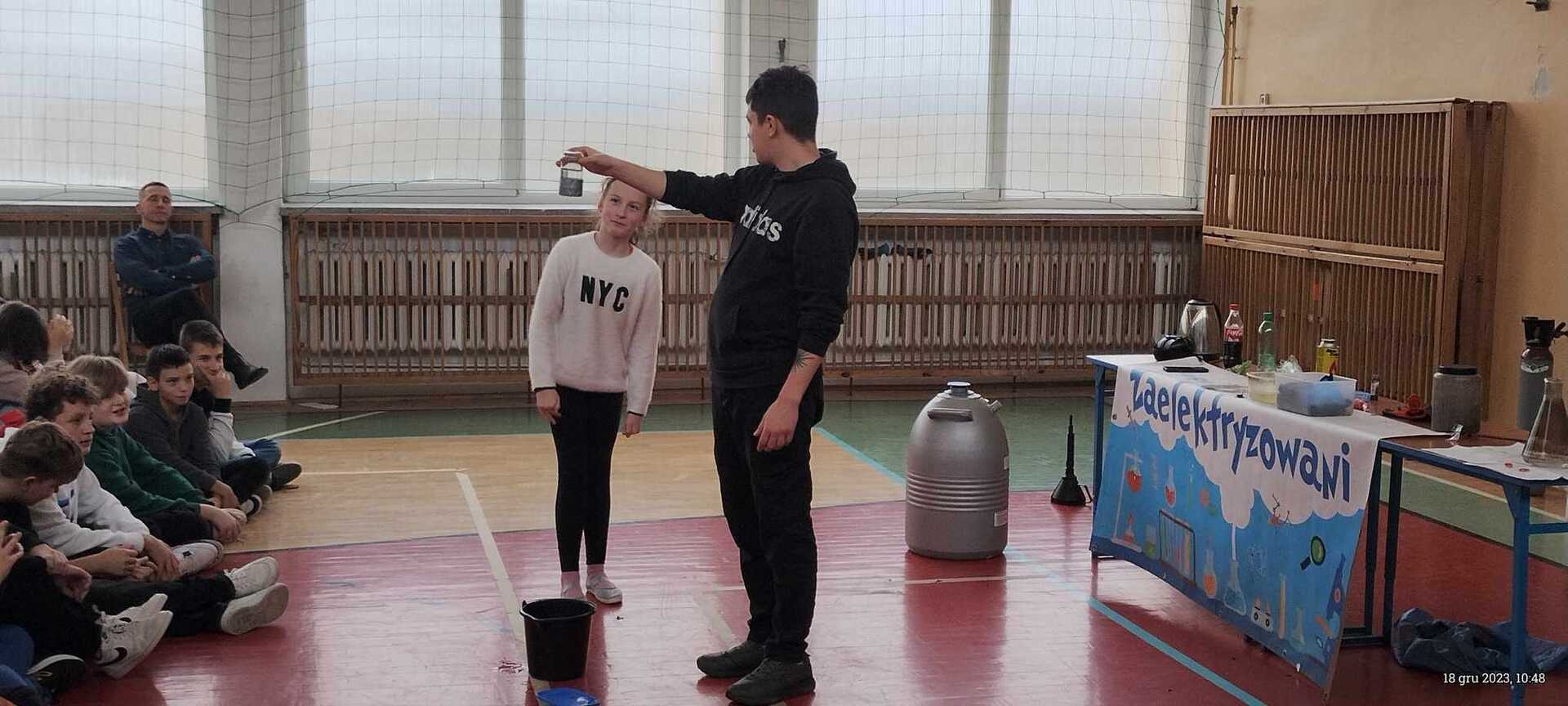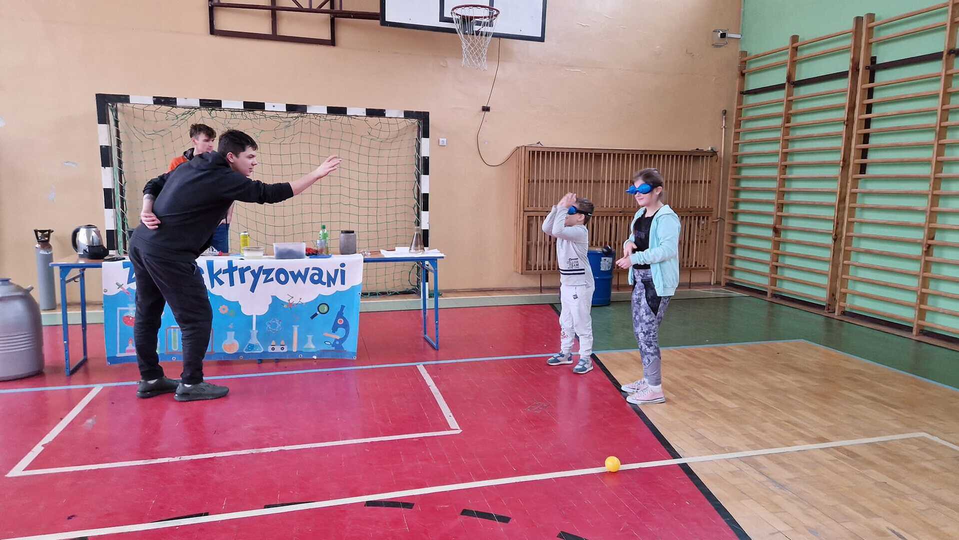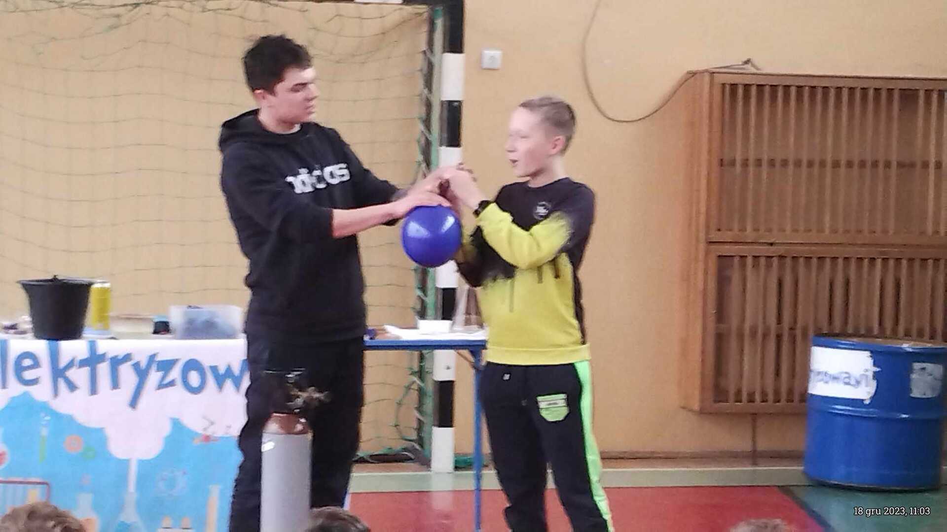 Dziś naszą szkołę odwiedziła grupa "Zaelektryzowani", która zaprosiła uczniów na niecodzienną lekcję pt. "Zasady fizyczne czy kwasy chemiczne". Prowadzący przybliżył dzieciom wiedzę z zakresu chemii i fizyki w bardzo prosty i atrakcyjny sposób, zaprezentował wiele ciekawych doświadczeń z wodorem, helem, azotem, parą wodną. Uczniowie mieli możliwość aktywnego uczestnictwa w pokazach i doświadczenia na własnej skórze zjawisk przyrodniczych. Podczas pokazu wszyscy świetnie się bawili