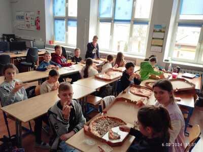 9 lutego jest Międzynarodowy Dzień Pizzy. W naszej szkole świętowaliśmy cały tydzień. Zapach pizzy roznosił się po szkolnych korytarzach. Było bardzo smakowicie
