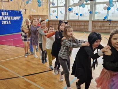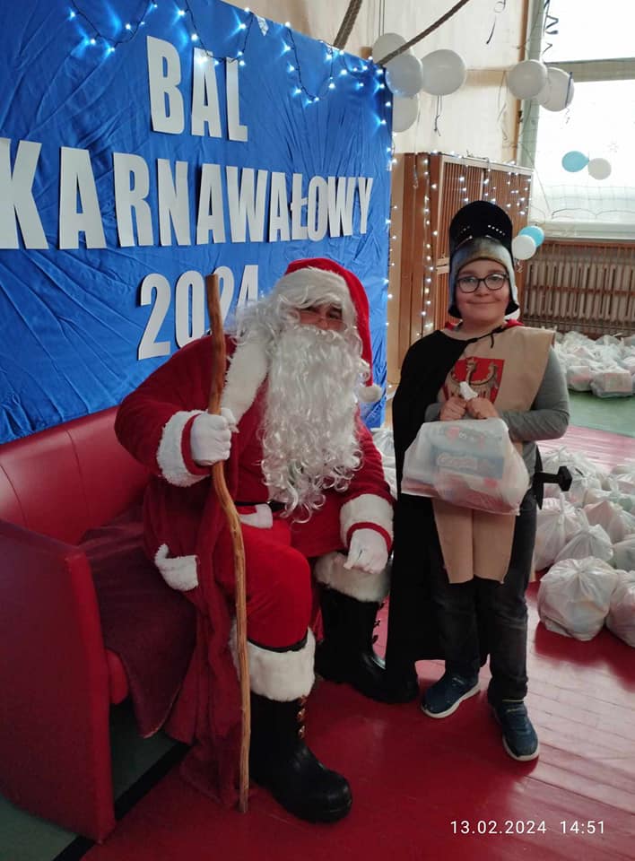 Dnia 13 lutego 2024 roku w naszej szkole odbył się Bal Karnawałowy. Uczniowie i nauczyciele zaangażowali się w przygotowania, aby stworzyć wyjątkową atmosferę pełną zabawy i radości.W sali gimnastycznej rozbrzmiewały dźwięki muzyki, a kolorowe dekoracje i balony tworzyły magiczną scenerię. Uczniowie młodszych klas przybyli ubrani w niezwykłe stroje - od klasycznych postaci z bajek po postacie z filmów i książek, a nawet superbohaterów! Ponadto, nie mogło zabraknąć pysznych przekąsek i napojów przygotowanych przez Rodziców. Podczas balu na dzieci czekała niespodzianka - wizyta Mikołaja. W tę rolę, jak zawsze wcielił się pan Kamil Sobczak .