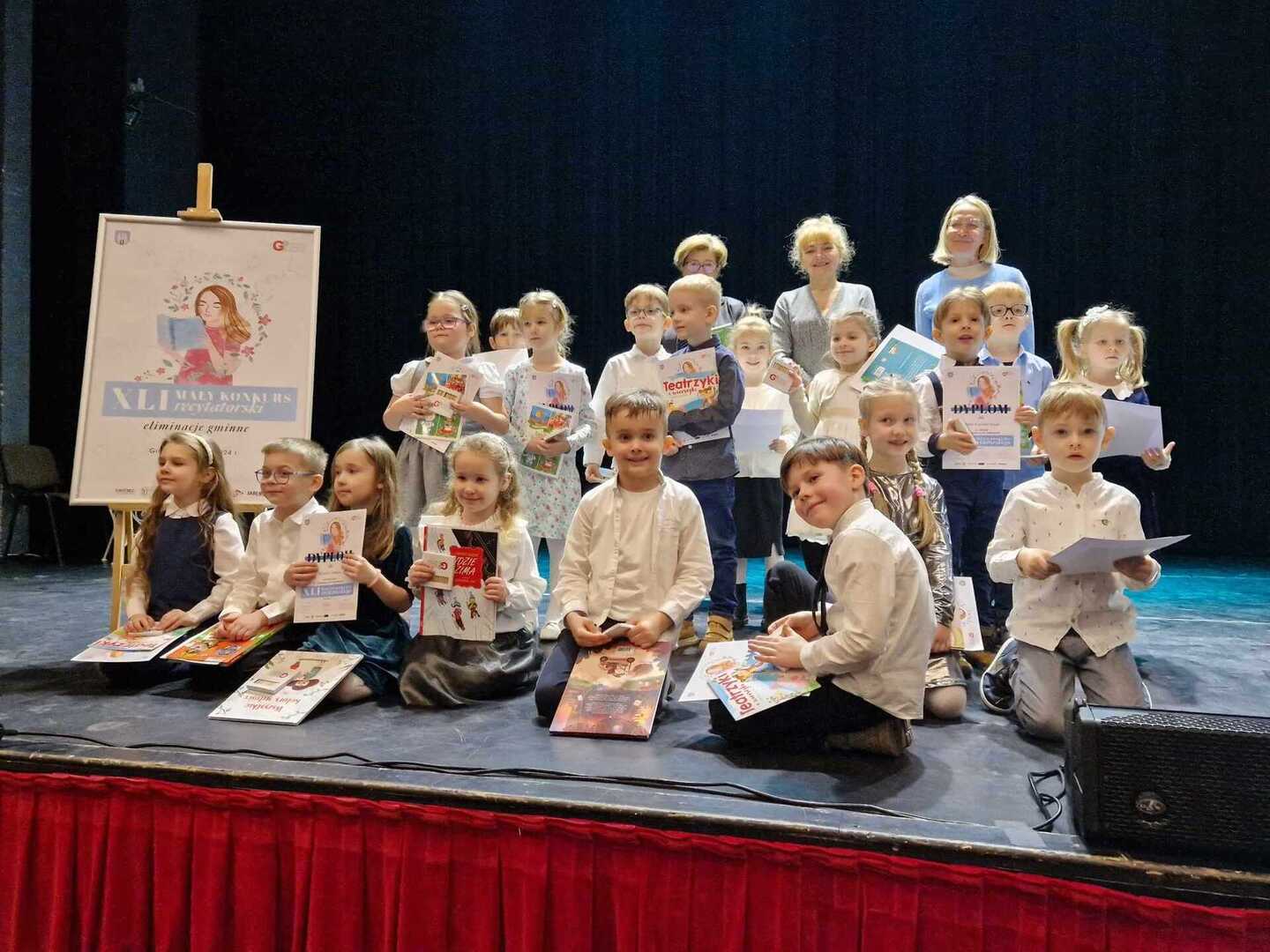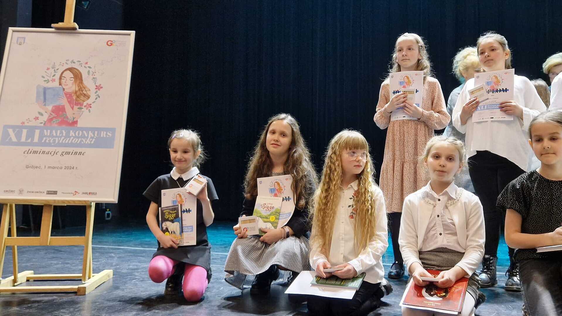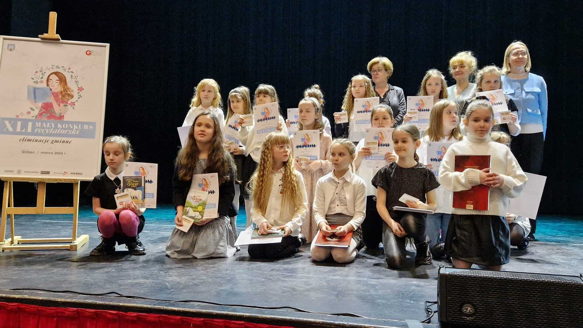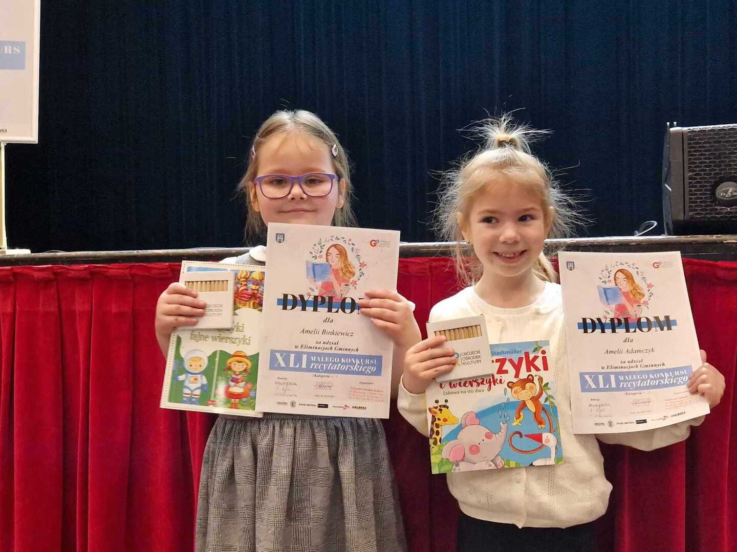 Dnia 1 marca cztery uczennice Amelia Binkiewicz i Amelia Adamczyk z oddziału przedszkolnego "Krasnale", Hanna Szymańczak z kl. I oraz Emilia Tomczyk z kl. IV reprezentowały naszą szkołę podczas Eliminacji Gminnych XLI Małego Konkursu Recytatorskiego. Emilia recytowała wiersz "Spóźniony słowik" J. Tuwima, Amelia Binkiewicz - "Wiosenne porządki" J. Brzechwy, Amelia Adamczyk - "Skarga" A. Frączek otrzymały dyplom za udział.