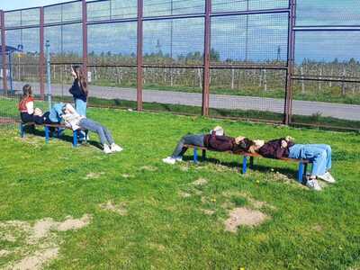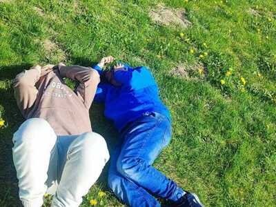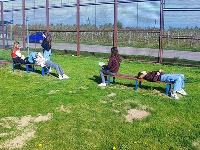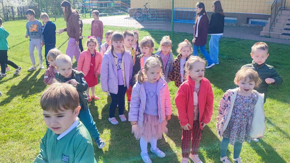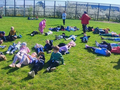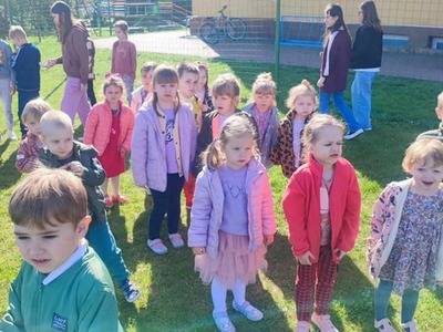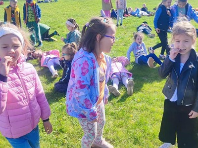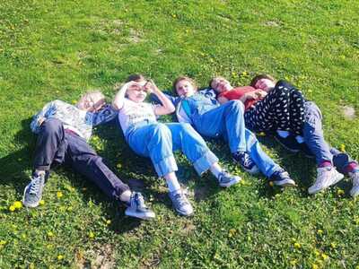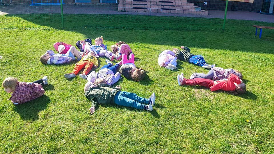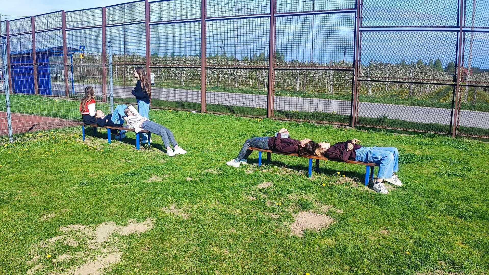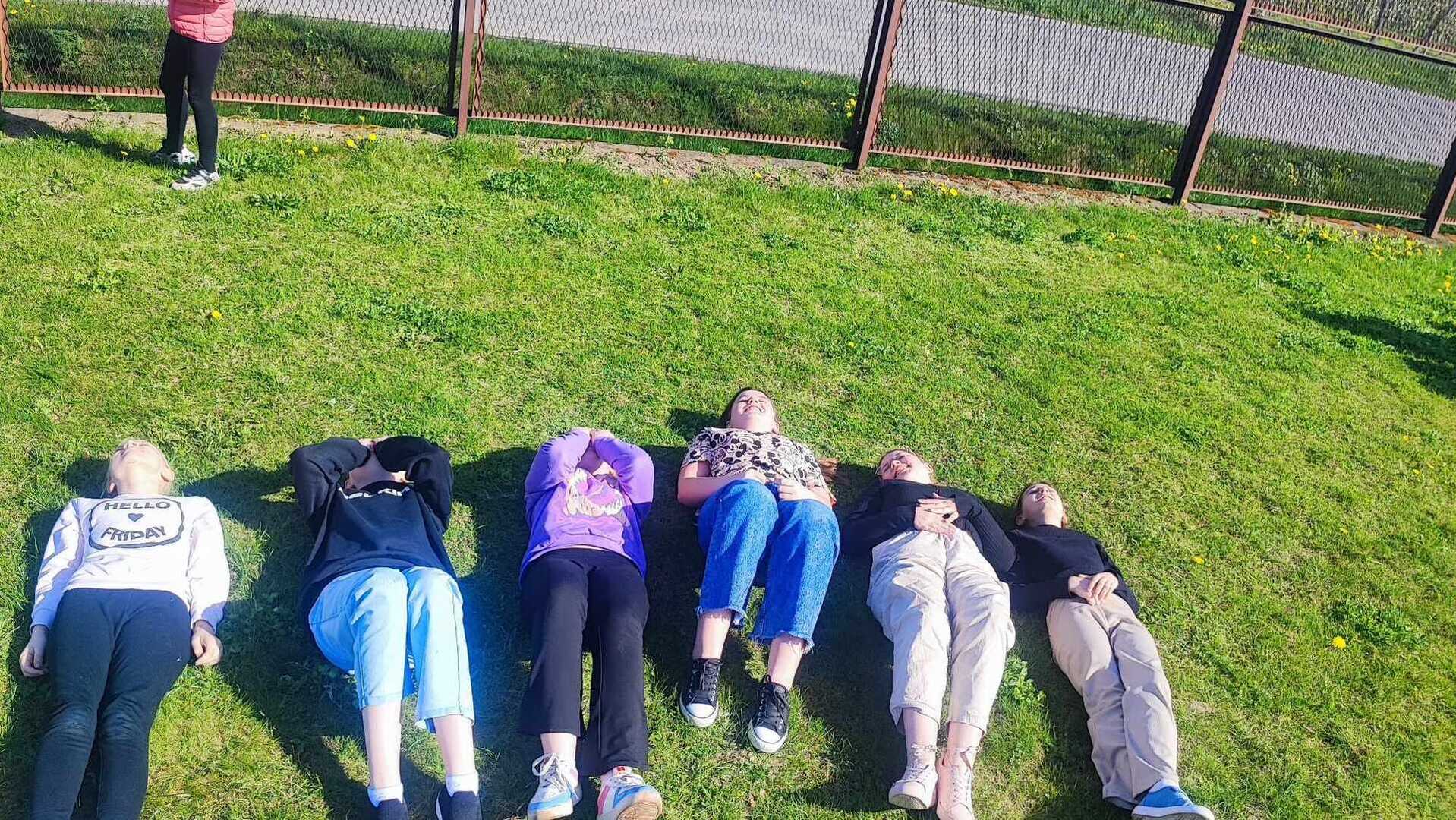 Podczas przerwy śniadaniowej wszyscy uczniowie wyszli na boisko, gdzie wspólnie podziwialiśmy błękit nad nami oraz wypatrywaliśmy chmur na wyjątkowo przejrzystym niebie