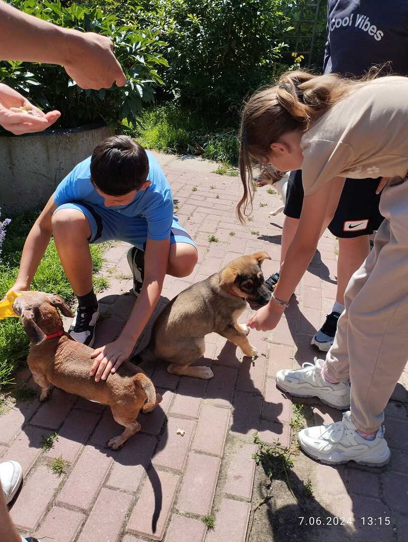 W czasie wizyty dzieci mogły poznać warunki w jakich mieszkają psy,