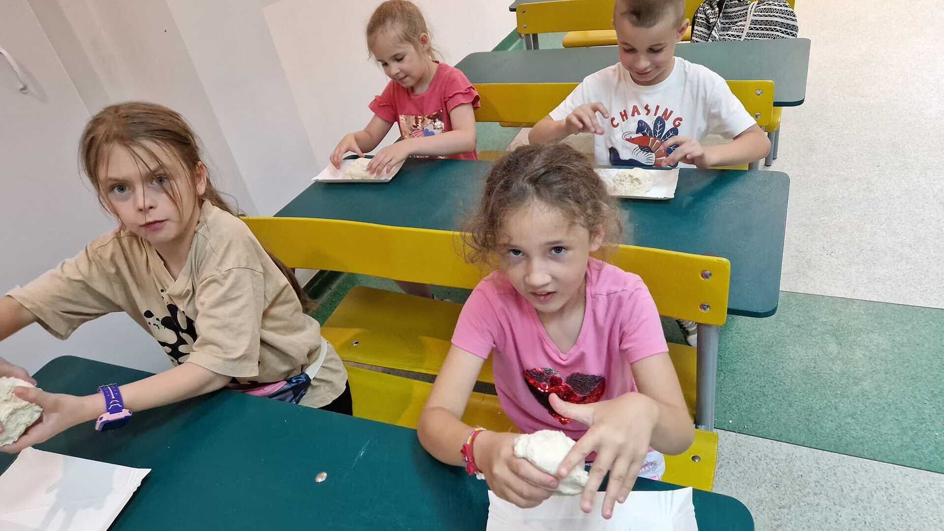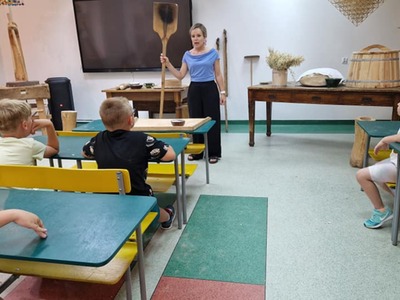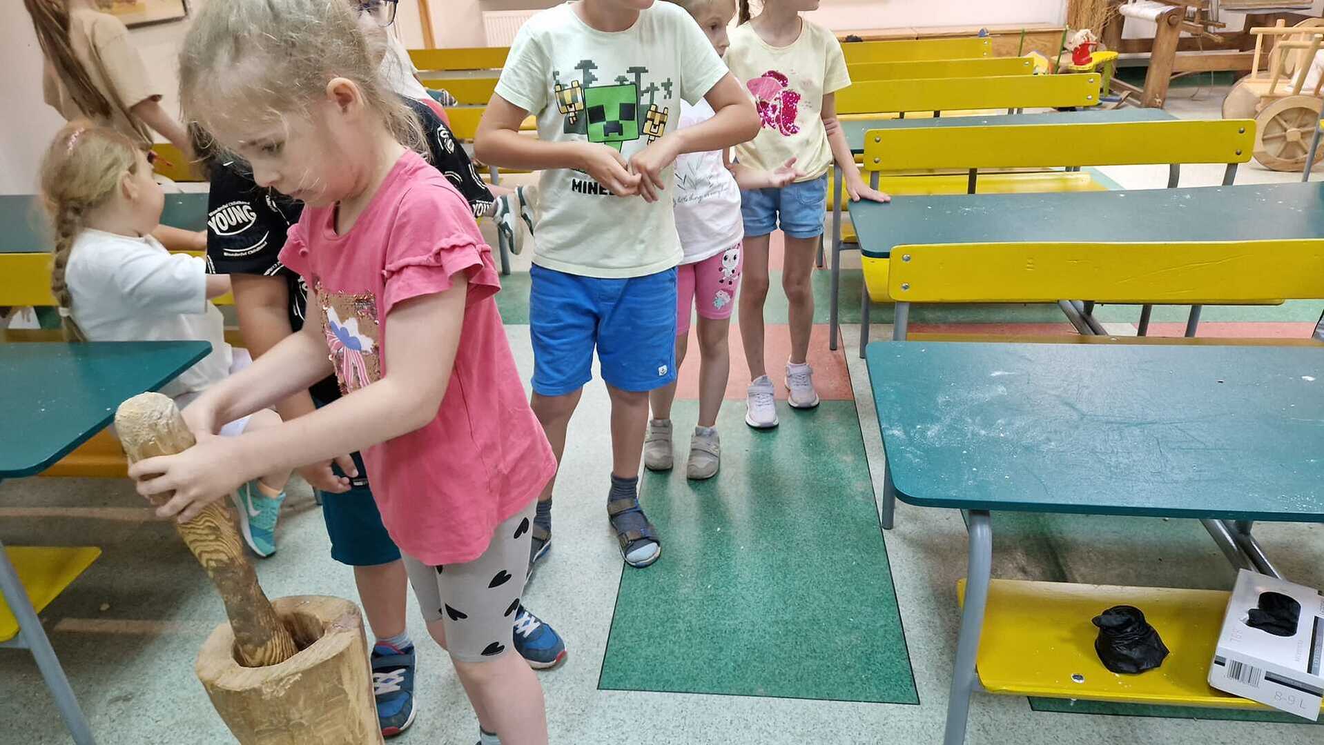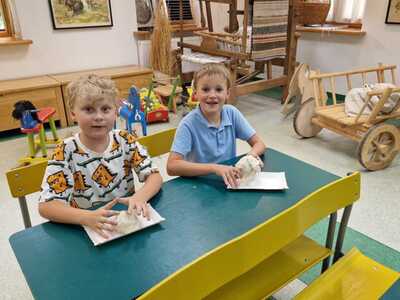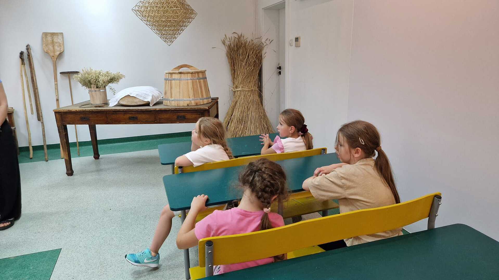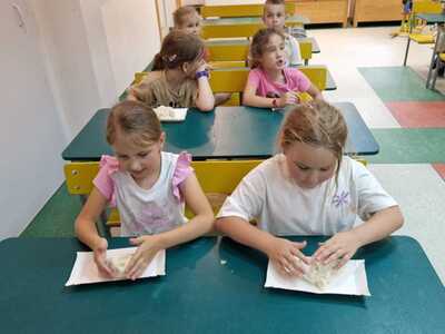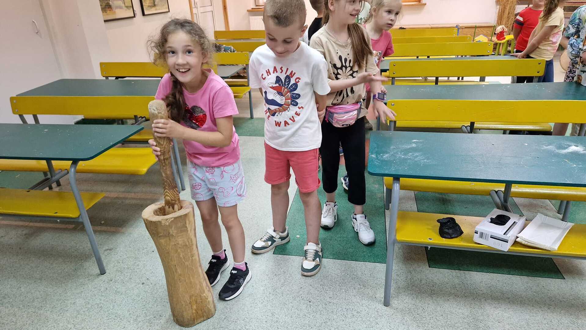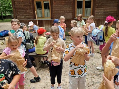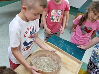 Warsztaty pieczenia chleba rozpoczęły się od krótkiego wprowadzenia na temat historii chleba oraz tradycji piekarniczych. Następnie uczestnicy mieli okazję przygotować swoje własne bułeczki. Dzieci dowiedziały się również, jak powstaje mąka i samodzielnie ją robiły. Było to niesamowite doświadczenie. Na koniec każdy otrzymał pyszne, ciepłe, pachnące pieczywo. Następnym punktem było zwiedzanie skansenu z przewodnikiem. Uczniowie z zainteresowaniem oglądali dawne budynki, słuchali informacji o życiu w dawnych czasach. To był aktywny, pełen atrakcji dzień.