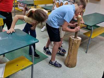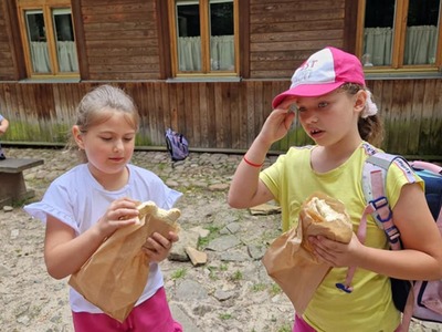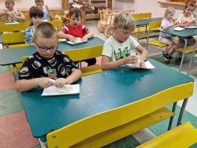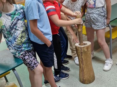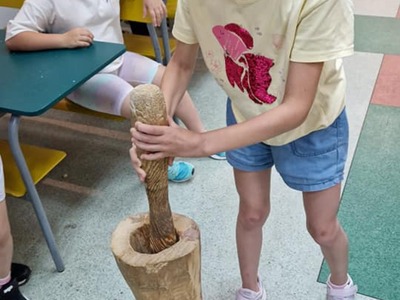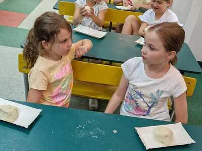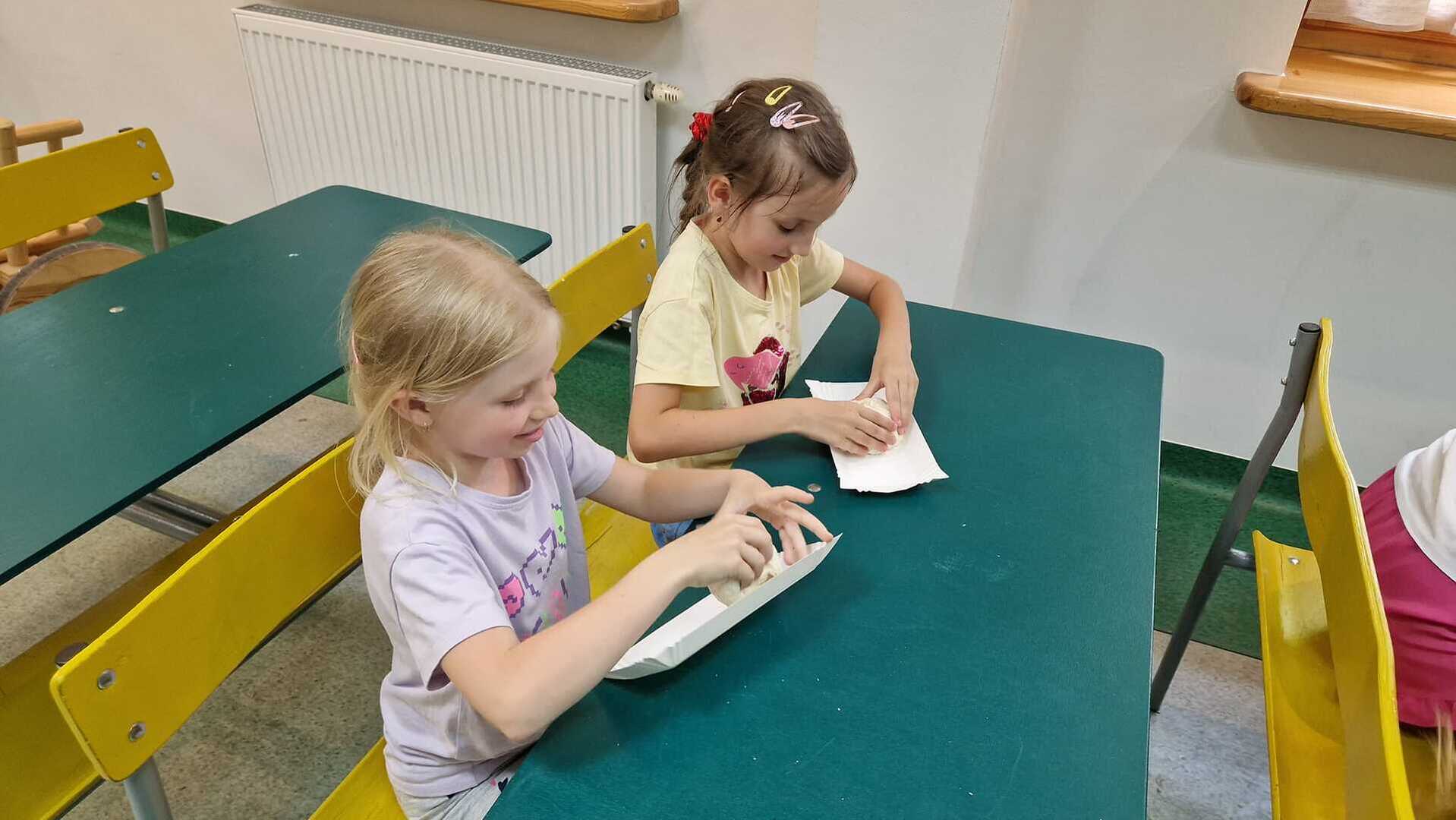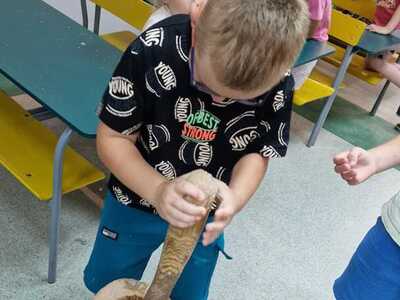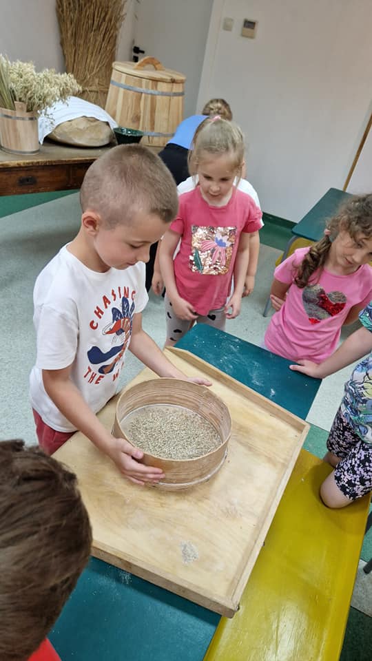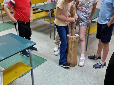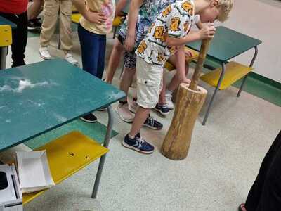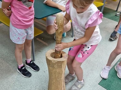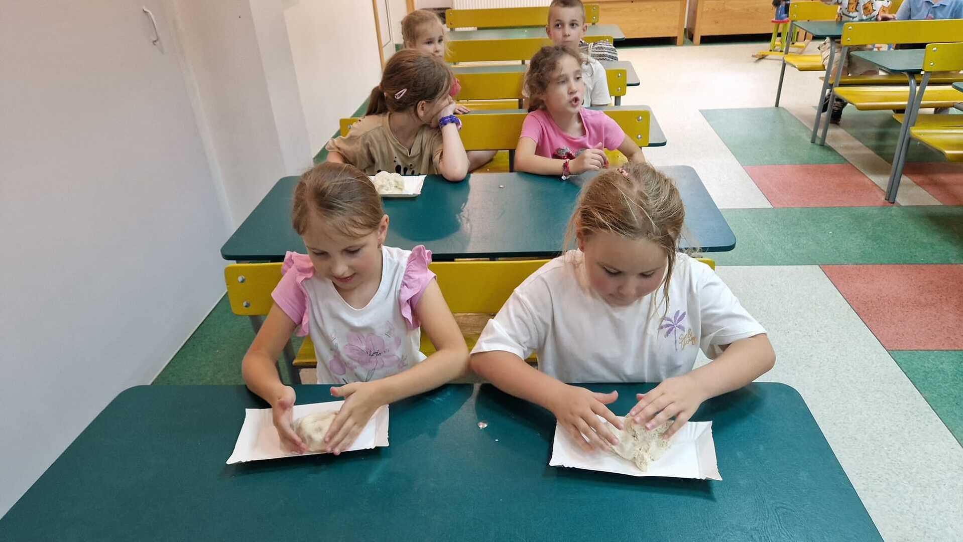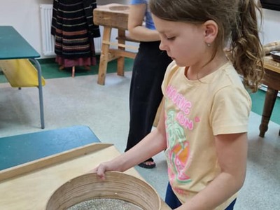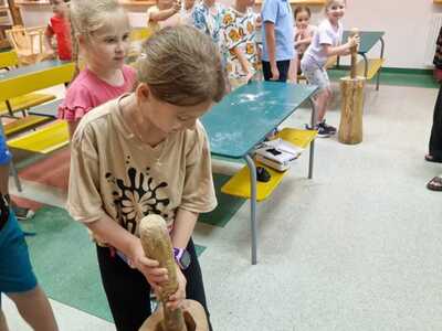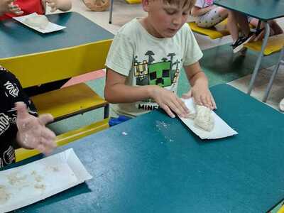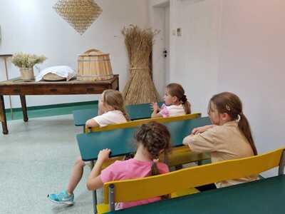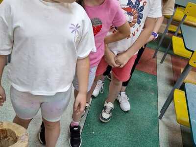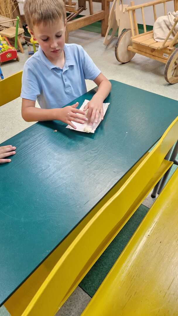 Warsztaty pieczenia chleba rozpoczęły się od krótkiego wprowadzenia na temat historii chleba oraz tradycji piekarniczych. Następnie uczestnicy mieli okazję przygotować swoje własne bułeczki. Dzieci dowiedziały się również, jak powstaje mąka i samodzielnie ją robiły. Było to niesamowite doświadczenie. Na koniec każdy otrzymał pyszne, ciepłe, pachnące pieczywo. Następnym punktem było zwiedzanie skansenu z przewodnikiem. Uczniowie z zainteresowaniem oglądali dawne budynki, słuchali informacji o życiu w dawnych czasach. To był aktywny, pełen atrakcji dzień.