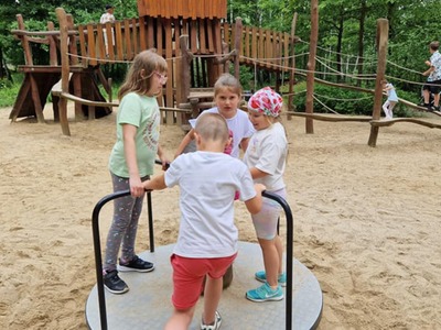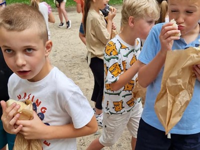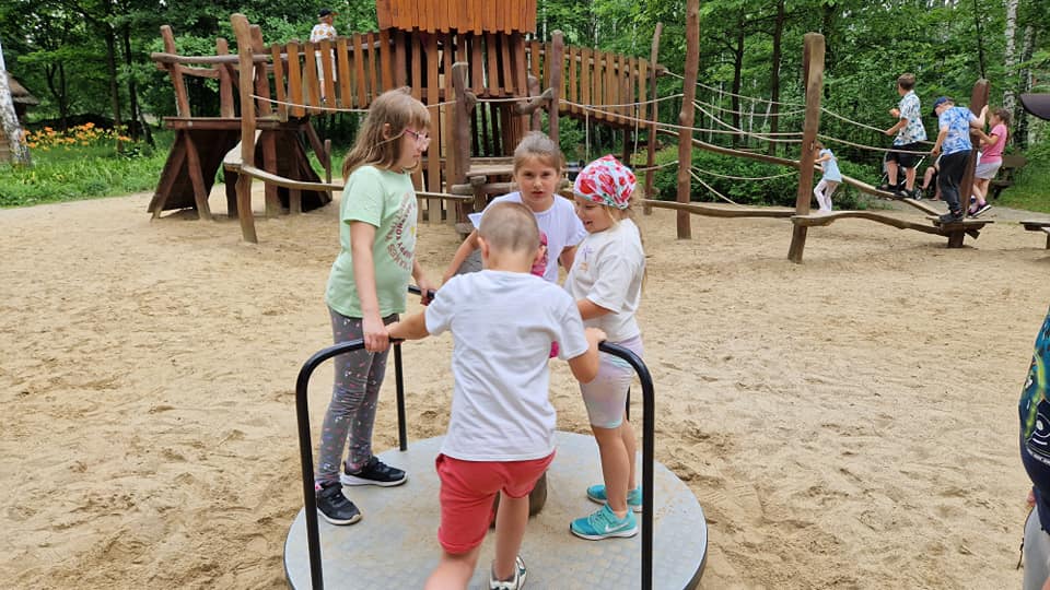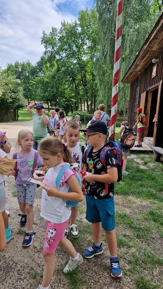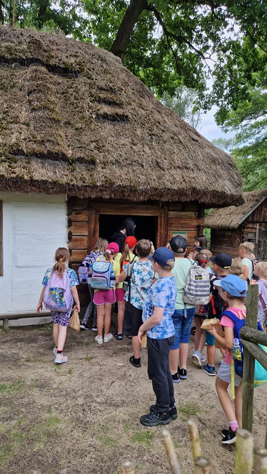 Dziś klasy 1-3 wybrały się na wycieczkę do Radomia. W Hula Parku uczestnicy mieli okazję wypróbować różne atrakcje, które zapewniły mnóstwo ruchu i zabawy. Największym zainteresowaniem cieszyły się zjeżdżalnie, gdzie można było doświadczyć prawdziwej adrenaliny. Była to doskonała okazja do integracji oraz aktywnego spędzenia czasu. Następnie pojechaliśmy do Muzeum Wsi Radomskiej, gdzie w ramach programu "Kulturalna szkoła na Mazowszu" uczniowie wzięli udział w warsztatach "Od ziarenka do bochenka".