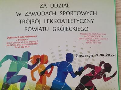 Dnia 11 czerwca odbyły się powiatowe zawody w 3-bój LA w PSP Goszczyn. Nasi uczniowie wzięli udział w biegu na 60m, skoku w dal oraz w rzucie piłeczką palantową.