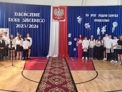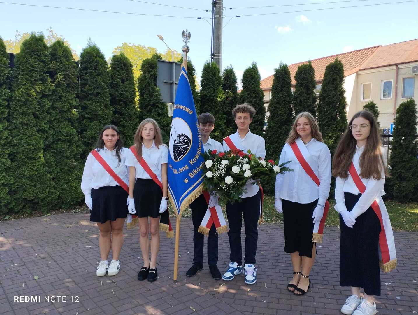Naszą szkołę reprezentowali uczniowie: Maria Domasiewicz, Maja Jaworek, Wiktoria Jaworek, Zuzanna Wojciechowska, Paweł Gorzkowski, Stanisław Ciaś wraz z opiekunem pocztu sztandarowego panią Wioletą Zbierańską-Kamińską. Ich obecność na uroczystościach była ważnym elementem, podkreślającym zaangażowanie młodego pokolenia w pielęgnowanie pamięci o historii.
