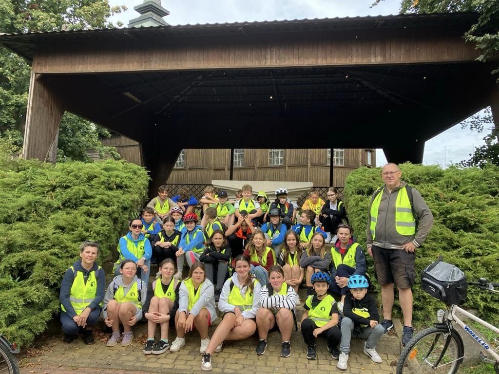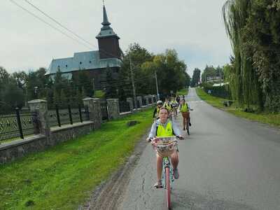 W rześki czwartkowy poranek uczniowie klas 5-8 wraz z opiekunami Olga Szewczyk , Kasia Białek, Luiza Madej, Marzanna Nowakowska, Wioletta Zbierańska-Kamińska, Arkadiusz Kępka wykorzystali ostatnie momenty wrześniowej aury i wybrali się na wycieczkę rowerową do Lewiczyna. Podróżowaliśmy mniej uczęszczanymi trasami, a zapachy i widoki otaczających nas jabłkowych sadów umilały drogę.