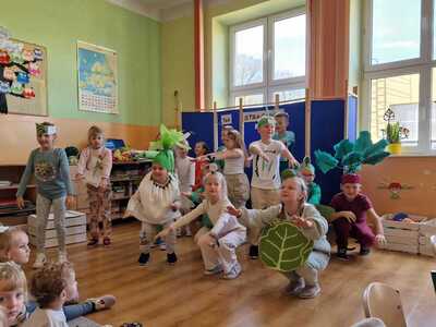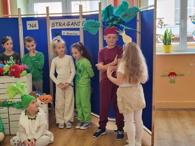 "Na straganie w dzie艅 targowy takie s艂yszy si臋 rozmowy …” pewnie ka偶dy zna wiersz Jana Brzechwy i warto艣ci, jakie z niego p艂yn膮. Nasi Drugoklasi艣ci postanowili zaprezentowa膰 swoje umiej臋tno艣ci dzieciom z oddzia艂ów przedszkolnych - "Smerfy" i "Krasnale" .