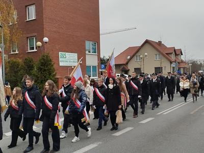 11 listopada Pani Dyrektor Agata Kępka, Przewodniczący Rady Rodziców Pan Paweł Binkiewicz oraz poczet sztandarowy w składzie: Maria Domasiewicz, Maja Jaworek, Zuzanna Wojciechowska, Kacper Mikołajek, Stanisław Ciaś, Mikołaj Szwech wzięli udział w obchodach upamiętniających Odzyskanie Niepodległości przez Polskę. Uroczystości rozpoczęły się zapaleniem znicza pamięci przy pomnikach na dziedzińcu Kościoła Miłosierdzia Bożego w Grójcu. Następnie wszyscy zebrani wysłuchali koncertu pieśni patriotycznych w wykonaniu Chóru "Fletnia Pana". Po którym została odprawiona Msza Święta w intencji Ojczyzny oraz wszystkich, którzy przyczynili się do jej wolności. Po mszy uczestnicy przemaszerowali pod pomnik Marszałka Józefa Piłsudskiego, gdzie odbyła się dalszą część uroczystości. Głos zabrali przedstawiciele władz samorządowych,którzy podkreślali jak ważna jest niepodległość. Odśpiewano Mazurek Dąbrowskiego, złożono kwiaty i zapalono znicz oddając cześć tym, którzy walczyli o niepodległość Polski.