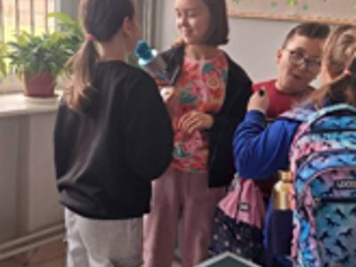 Czwartoklasiści wcielili się w rolę egzaminatorów i i przepytali dorosłych z naszej placówki, co dostarczyło wszystkim wielu emocji i uśmiechu.