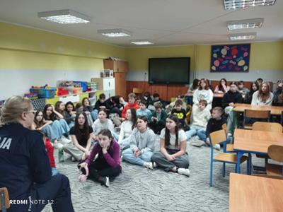 Policjanci przeprowadzili zajęcia z uczniami na temat zasad bezpiecznego spędzania czasu wolnego w miejscu zamieszkania i podczas wyjazdu, ze szczególnym zwróceniem uwagi na