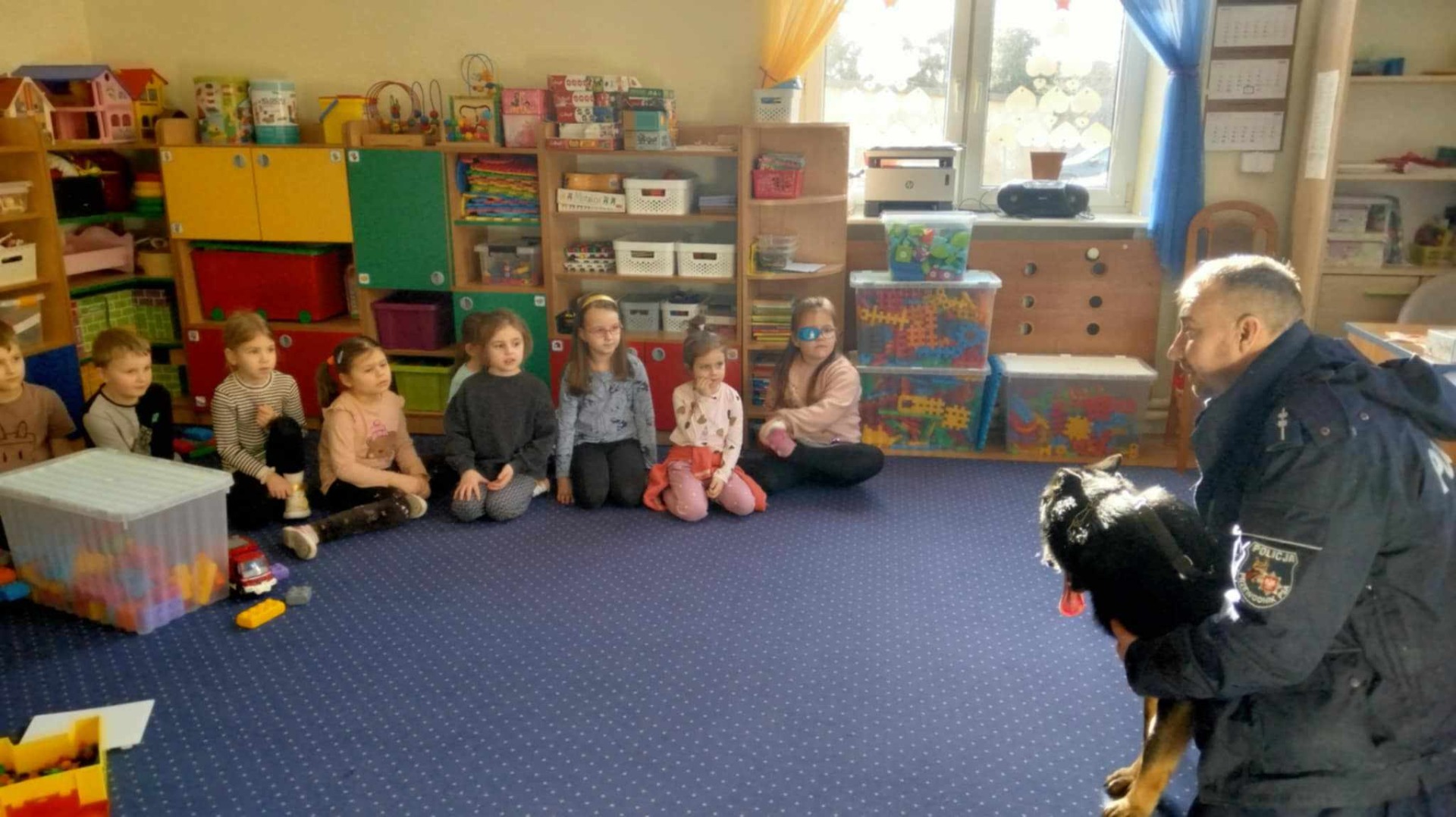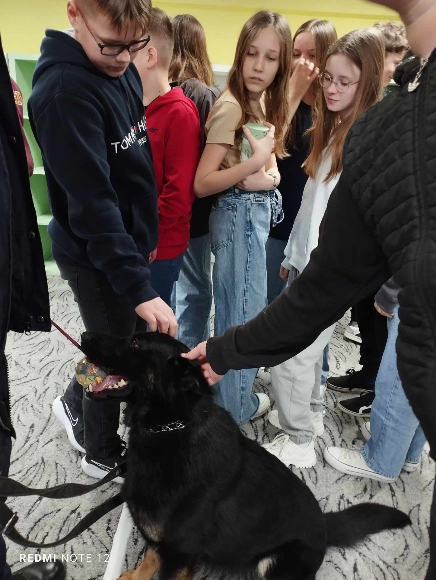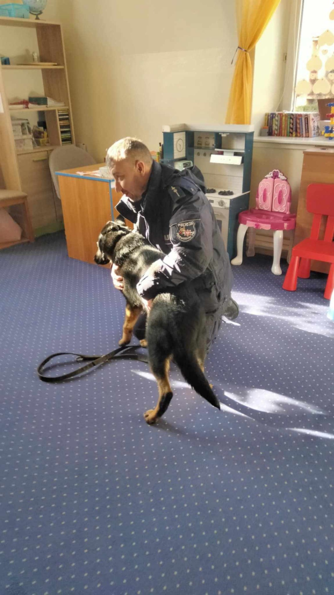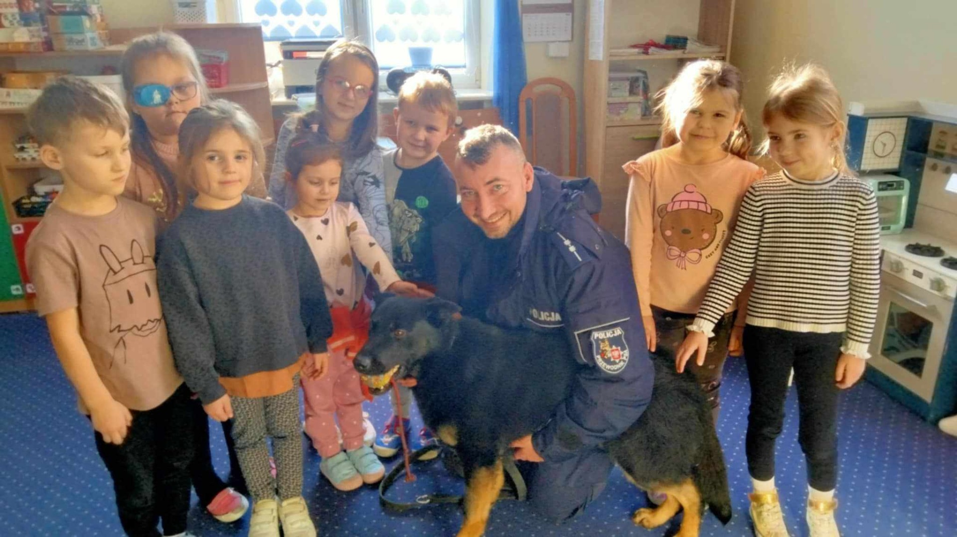 Przewodnik policyjny opowiedział o znaczeniu psa w Policji oraz pokazał naszym uczniom wspaniale umiejętności ,,Rewersa".