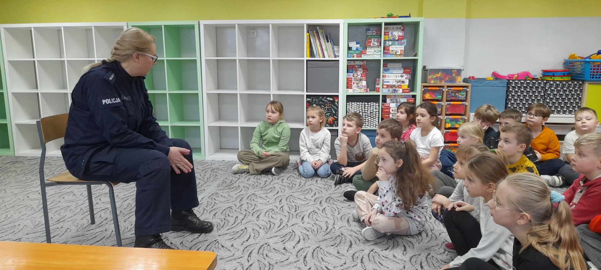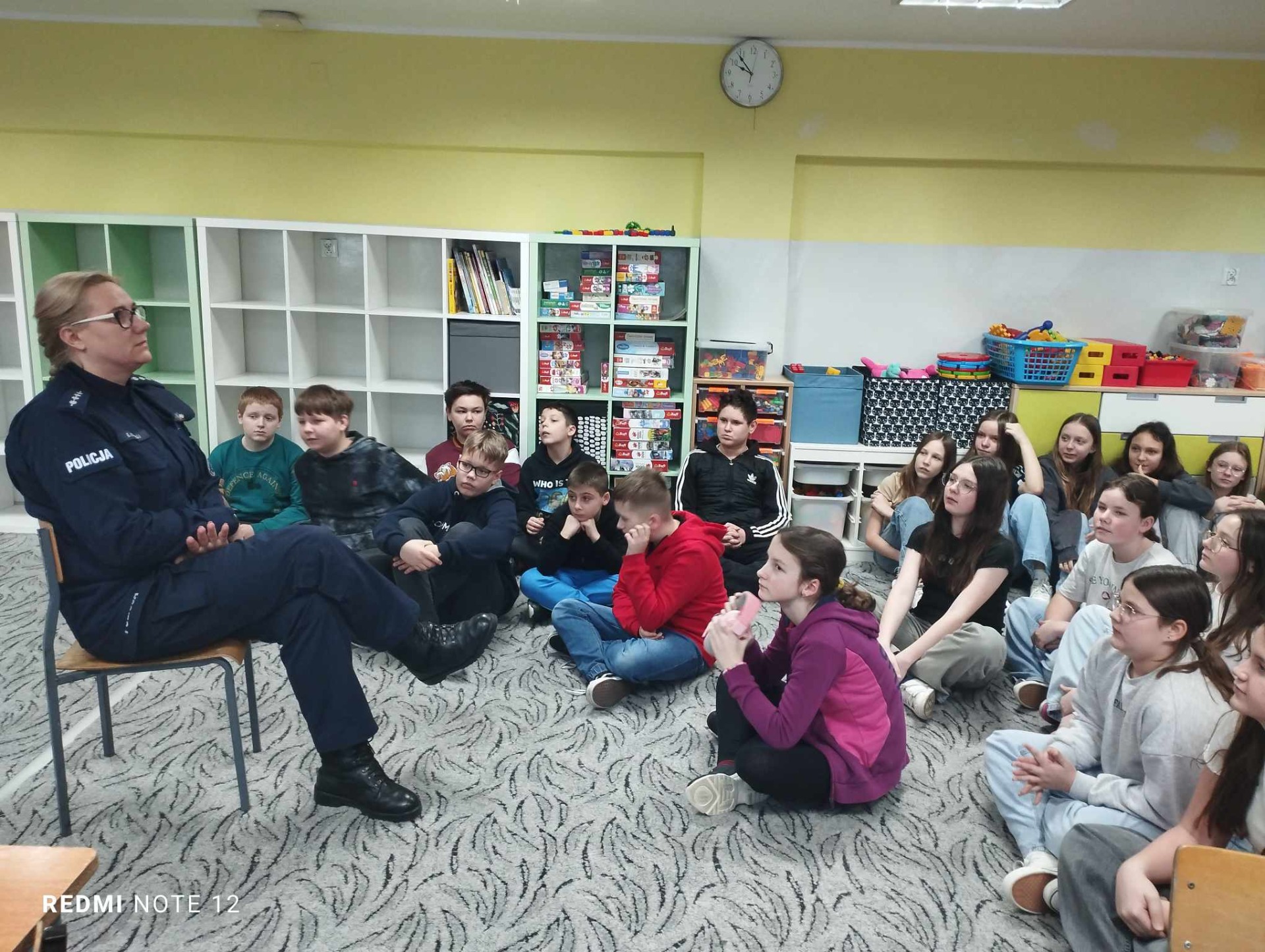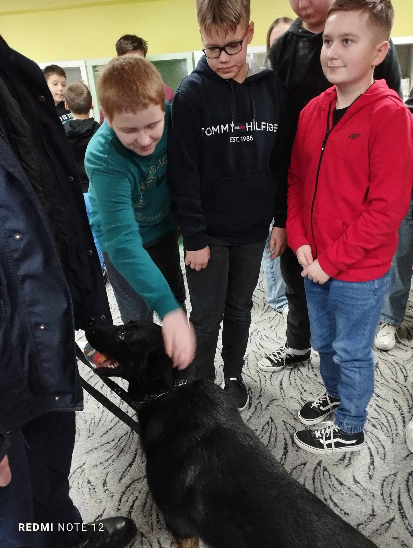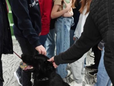 30.01.2025r. naszą szkołę odwiedzili Funkcjonariusze Policji z Komendy Powiatowej Policji w Grójcu: asp.szt. Ewelina Kozdruj, sierż. Anna Bednarczyk z Zespołu Profilaktyki Społecznej, Nieletnich i Patologii Komendy Powiatowej Policji w Grójcu oraz asp. Marcin Brzeziński Przewodnik Psa Służbowego ,,Rewers".