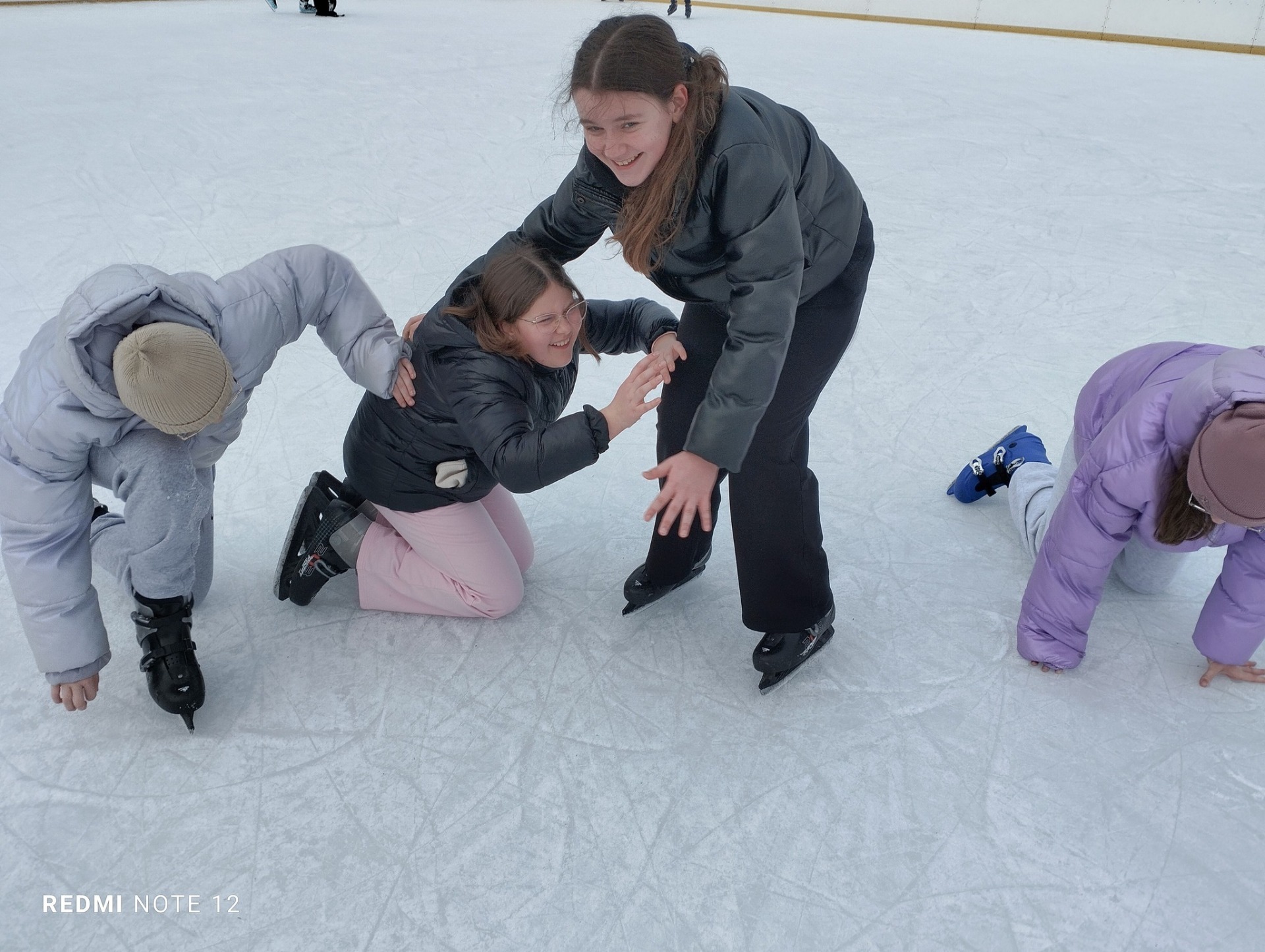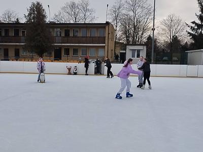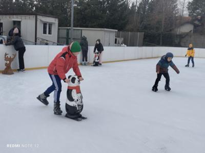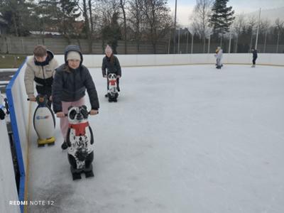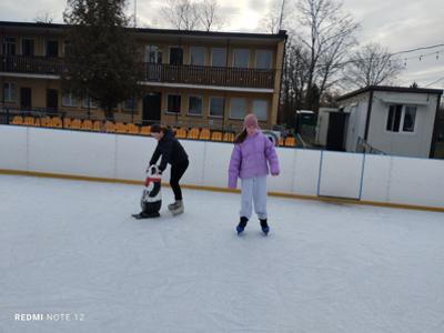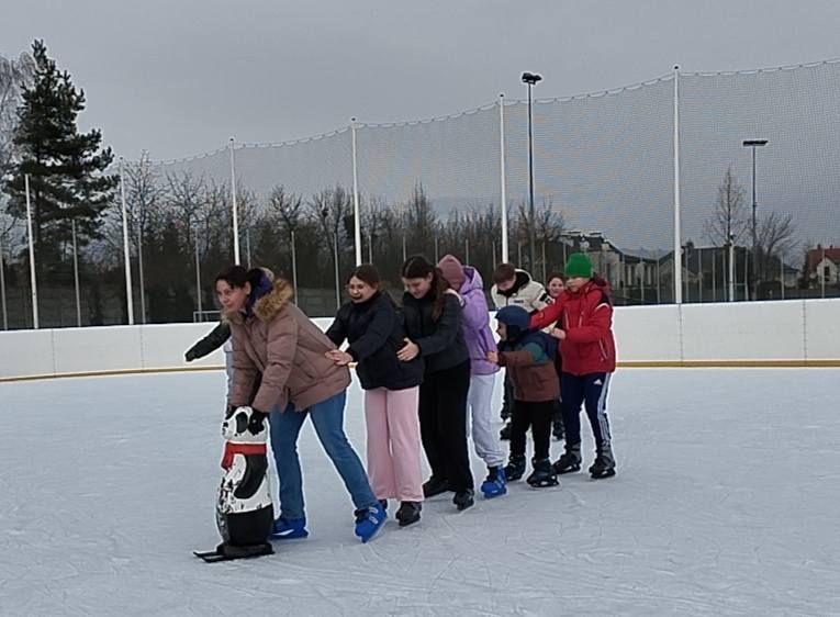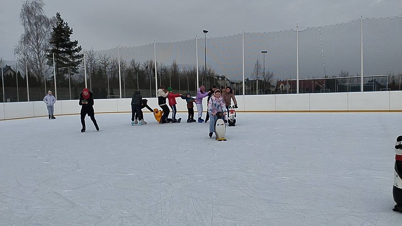 Każdy z uśmiechem na twarzy coraz lepiej szusował po lodzie, a atmosfera była pełna radości i śmiechu.