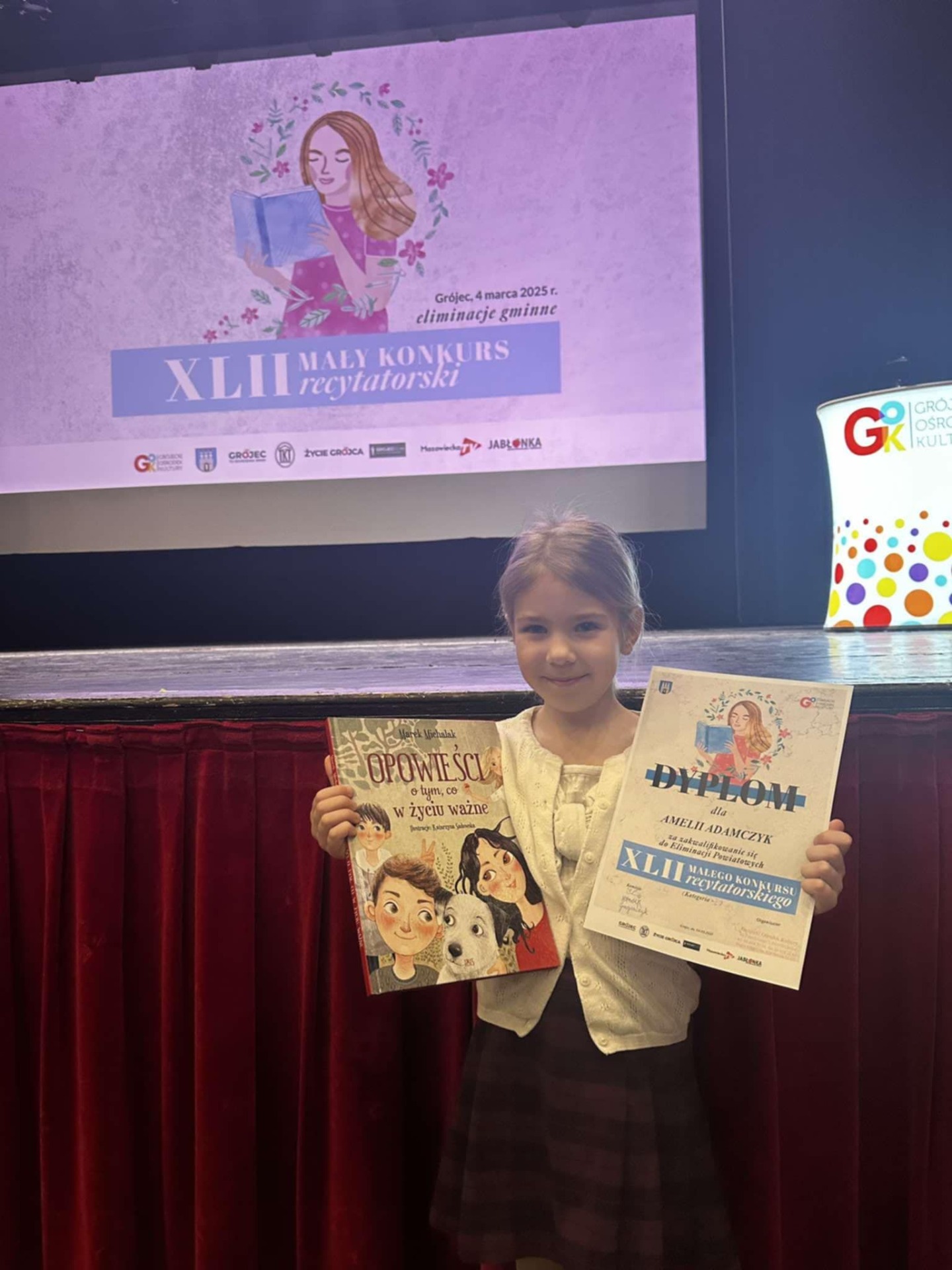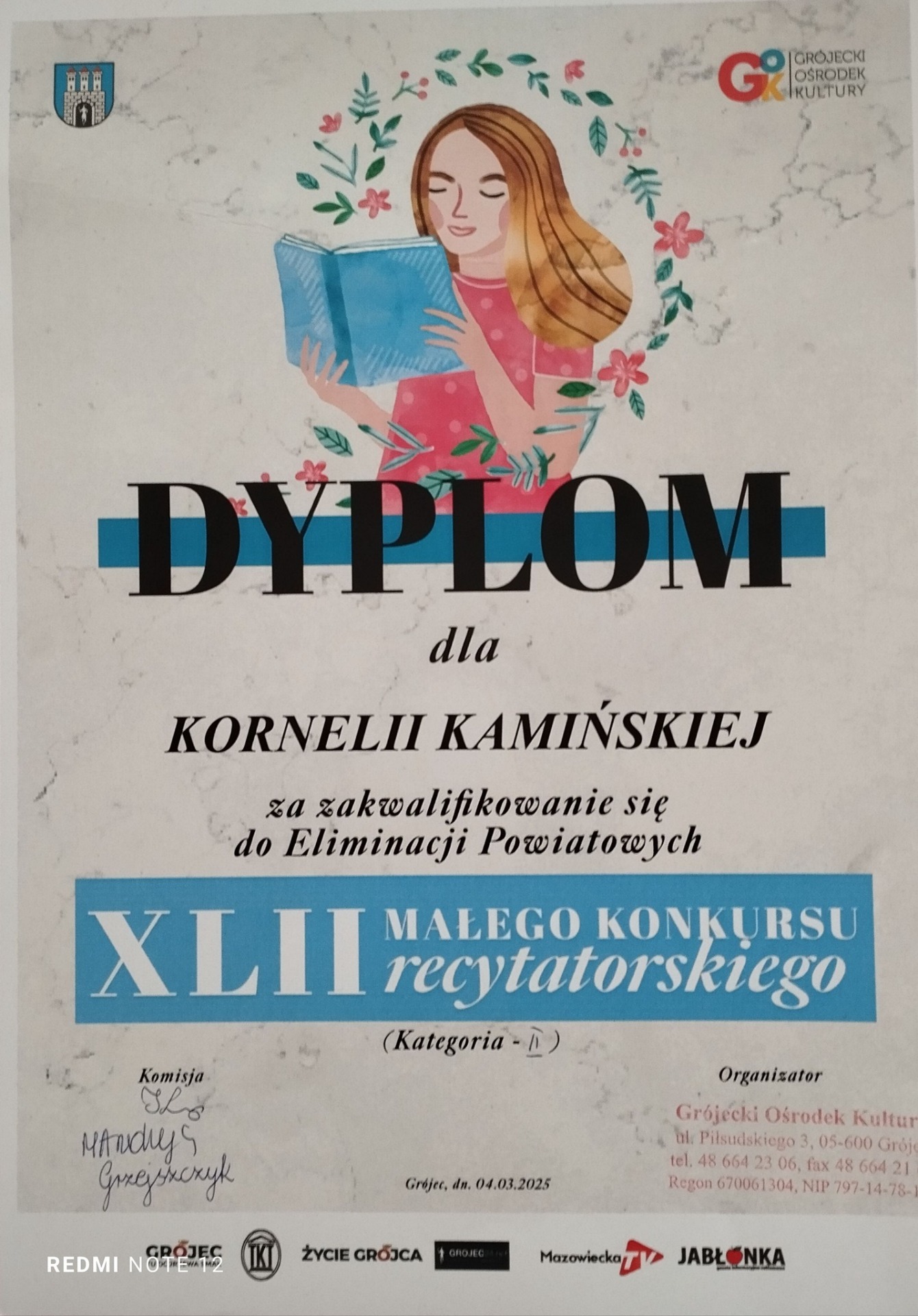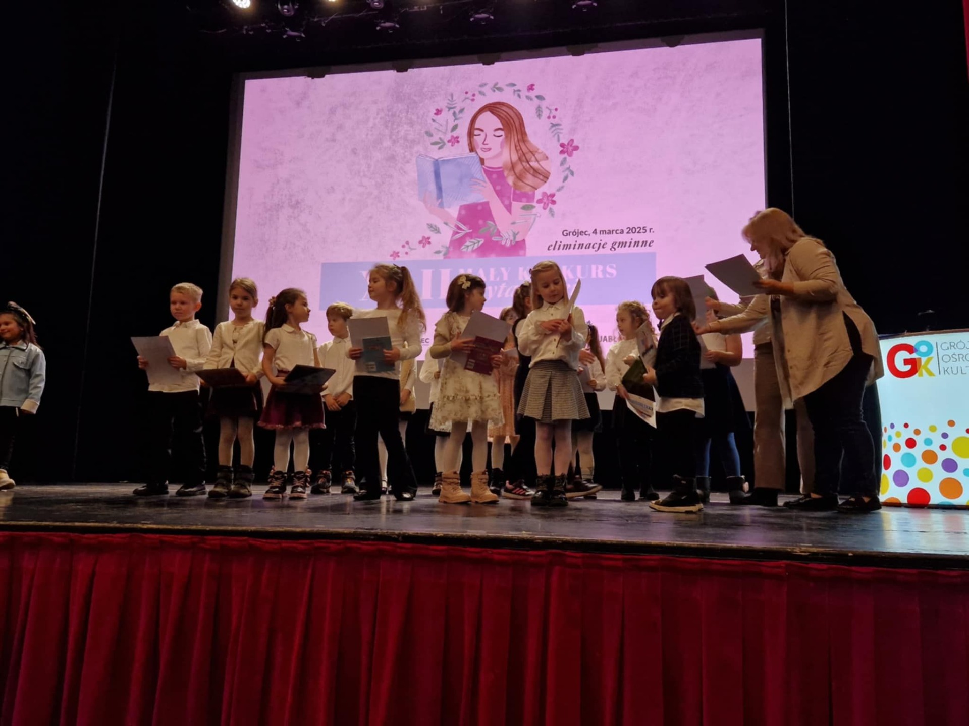 Dziś w Grójecki Ośrodek Kultury odbyły się eliminacje do XLII Małego Konkursu Recytatorskiego. W pierwszej kategorii naszą szkołę reprezentowały uczennice klasy 0: Amelia Adamczyk, Amelia Binkiewicz, Marcelina Maj, Michalina Maciak. W drugiej kategorii talentem recytatorskim wykazali się Lena Parol- kl 2, Hanna Szymańczak - kl 2, Kornelia Kamińska- kl. 3 oraz Wojciech Kacperski- kl. 4.