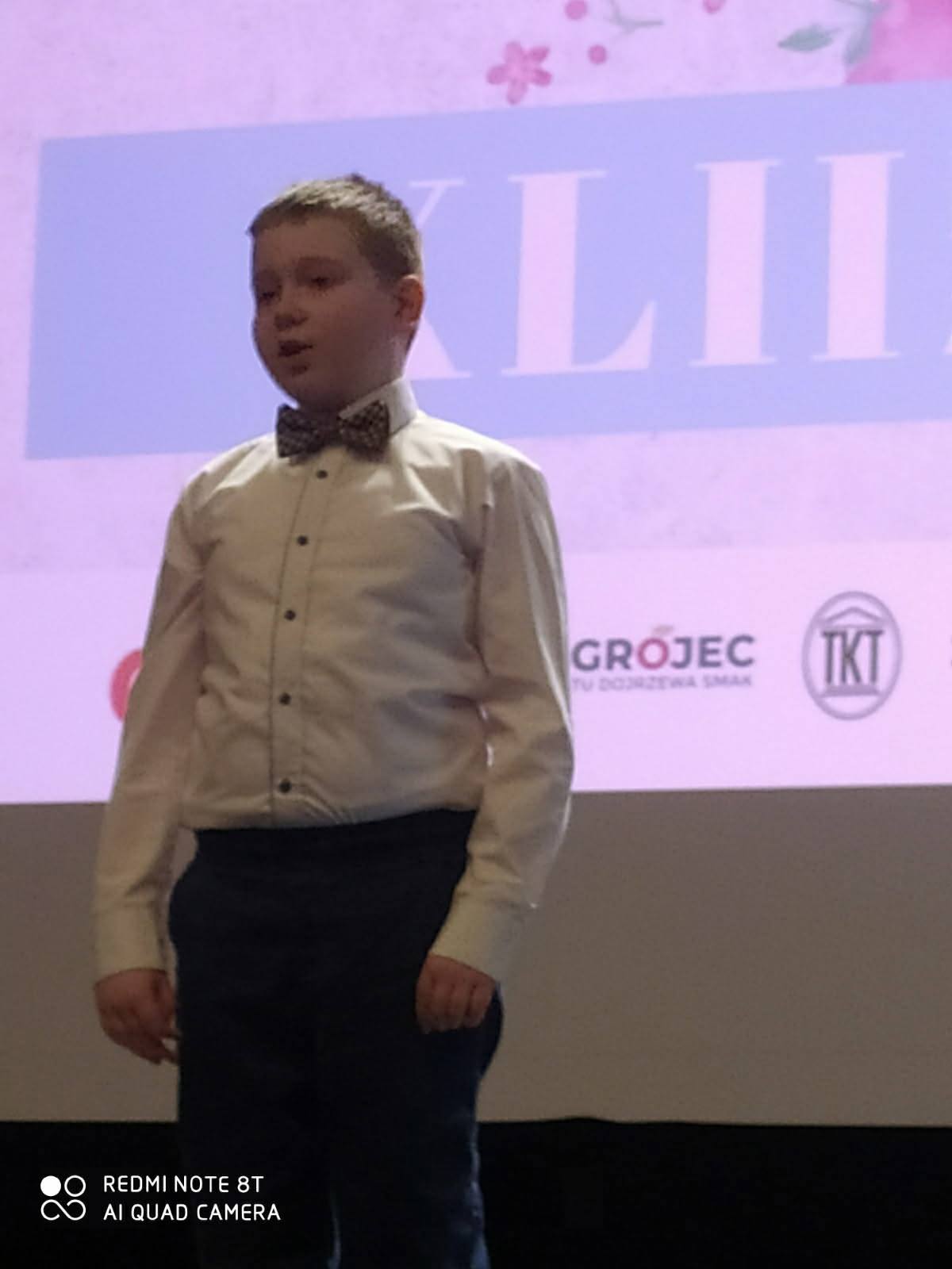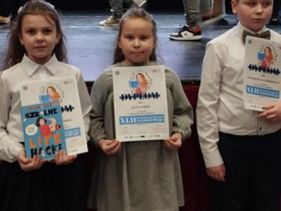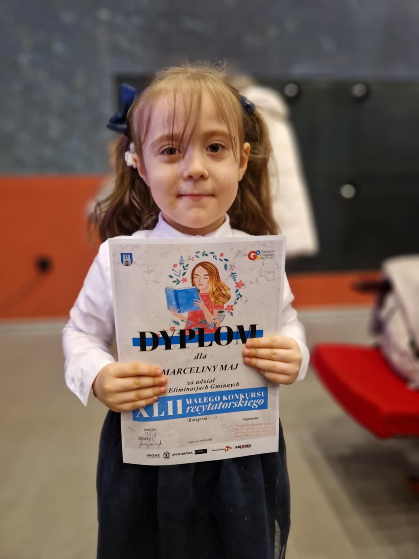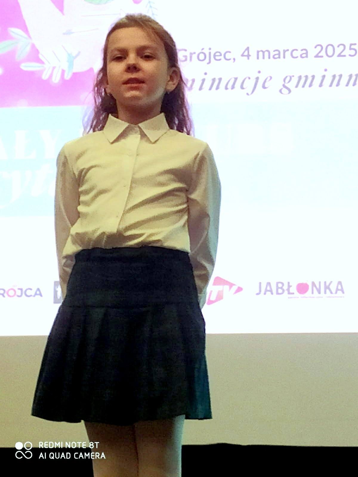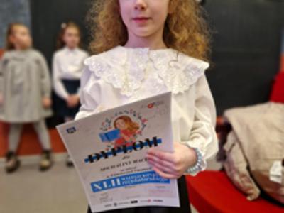 Amelia Binkiewicz zaprezentowała wiersz pt. "Mistrz" L.J.Kern, Michalina Maciak "Krasnoludki" E. Szelburg- Zarębiny, Marcelina Maj "Samochwała" J. Brzechwy, Amelia Adamczyk " Kłamczucha" J. Brzechwy. Lena Parol " Dziurki w serze" W. Chotomskiej, Kornelia Kamińska "Doświadczenie" M.Strzałkowskiej, Hanna Szymańczak " Na straganie" J. Brzechwy, Wojciech Kacperski " Spóźniony słowik" J. Tuwima. Wszyscy nasi przedstawiciele zaprezentowali recytację na bardzo wysokim poziomie. Zaowocowało to awansem aż dwóch naszych uczennic: Amelii Adamczyk oraz Kornelii Kamińskiej do drugiego etapu konkursu