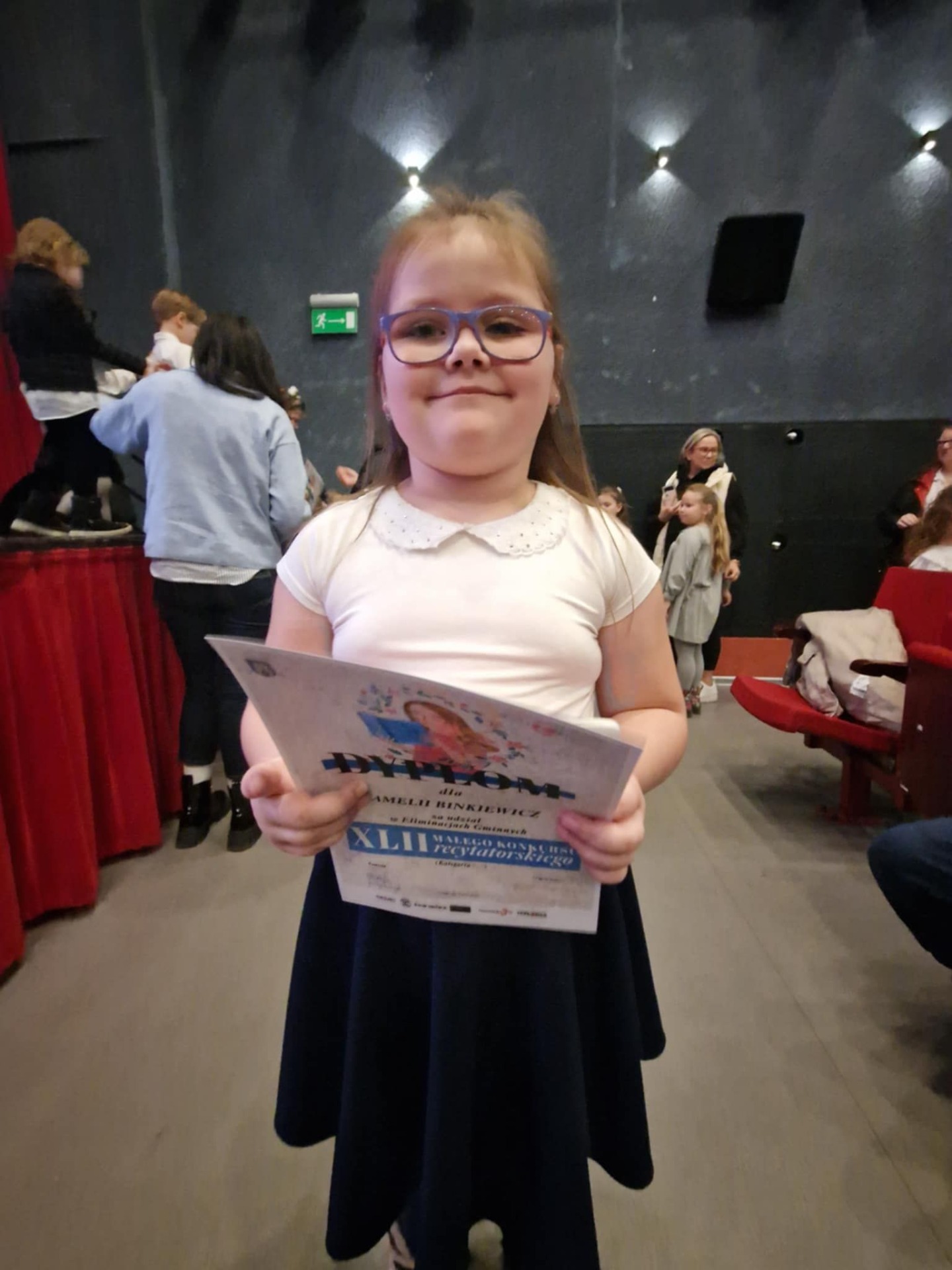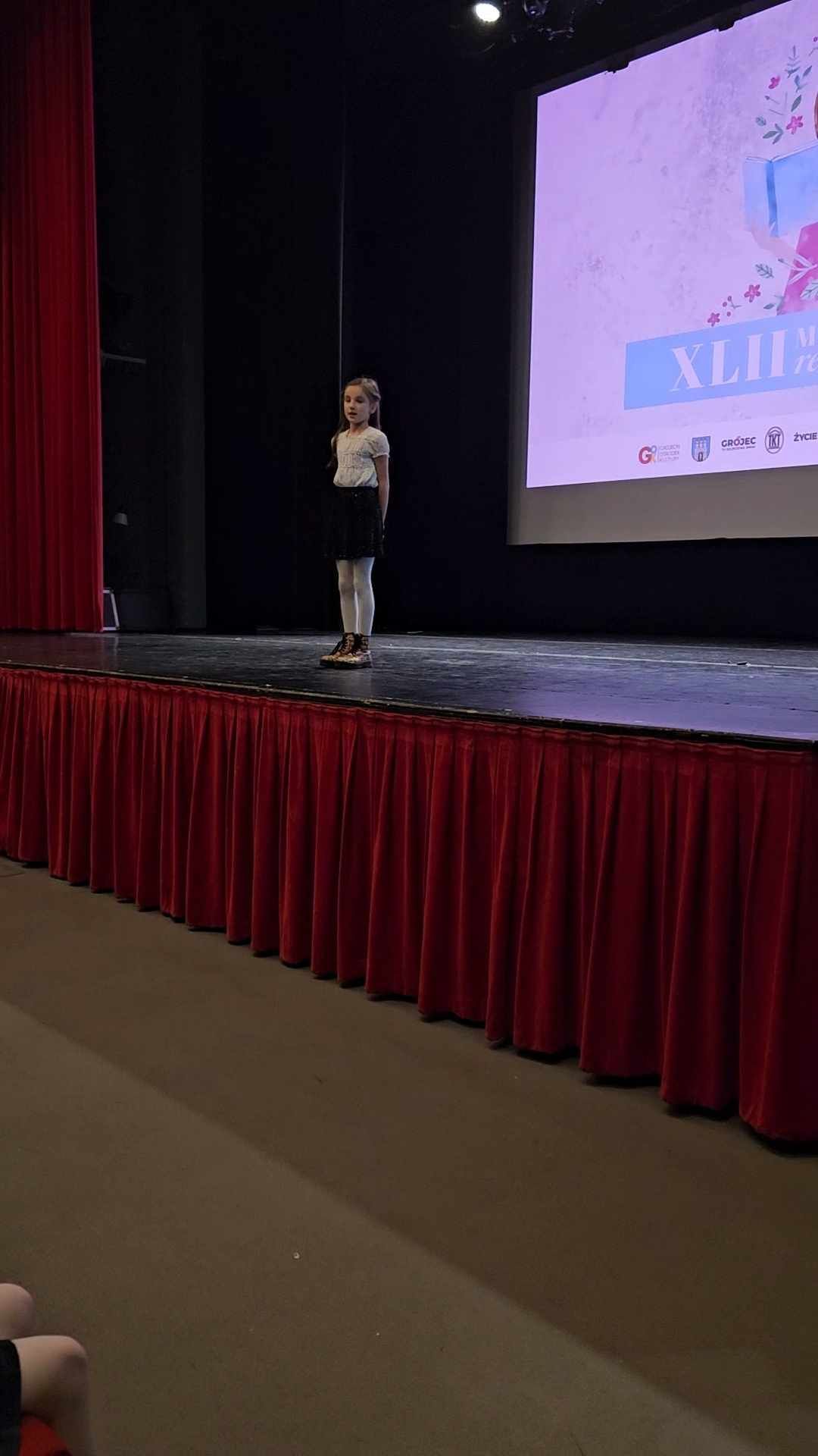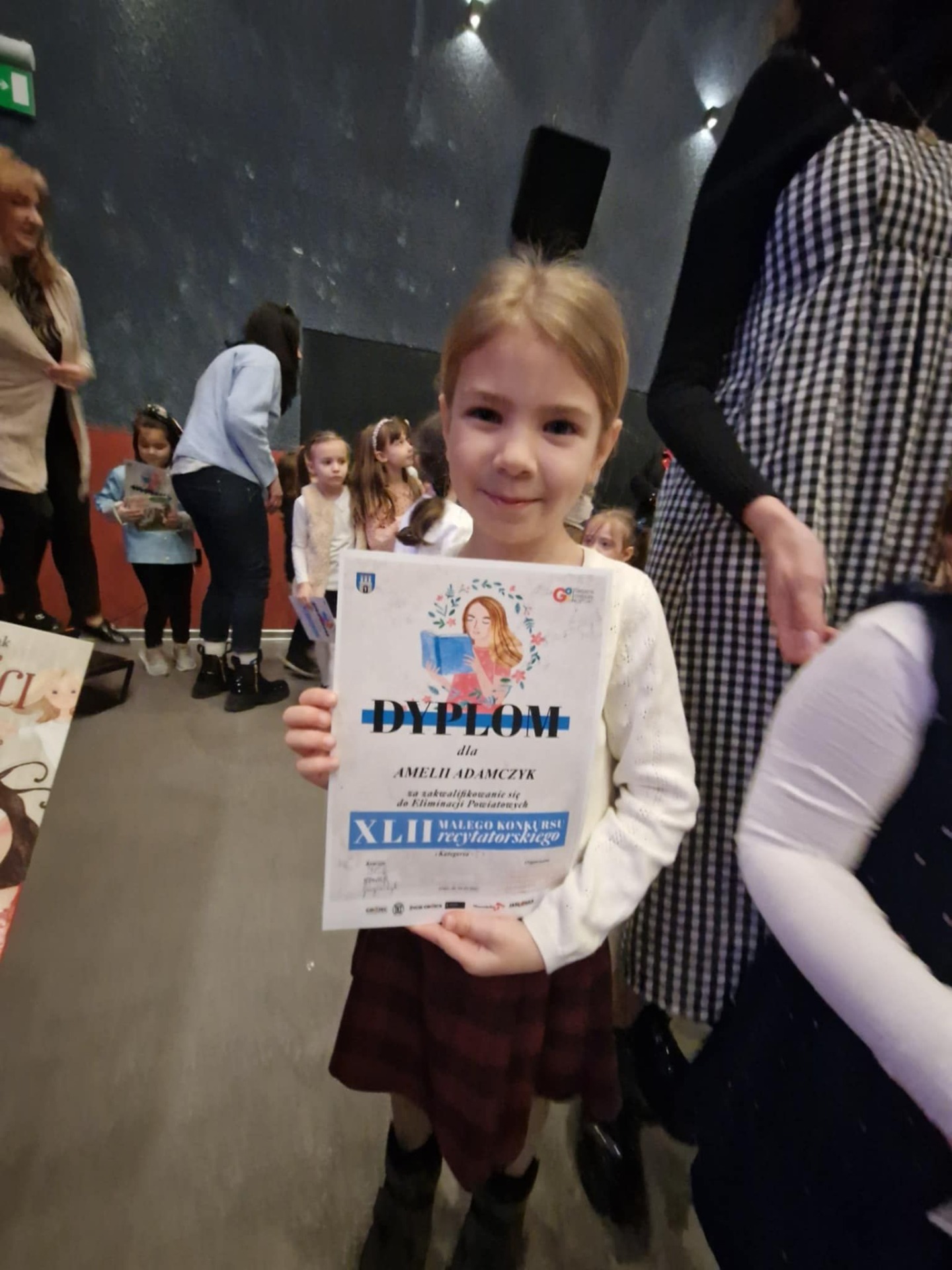 Pani Dyrektor Agata Kępka gratuluje wszystkim uczestnikom, życzy dalszego rozwijania talentu recytatorskiego, a także powodzenia dla Amelii i Kornelii na kolejnym szczeblu konkursu.