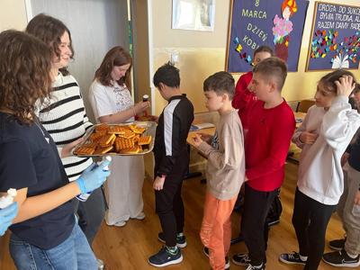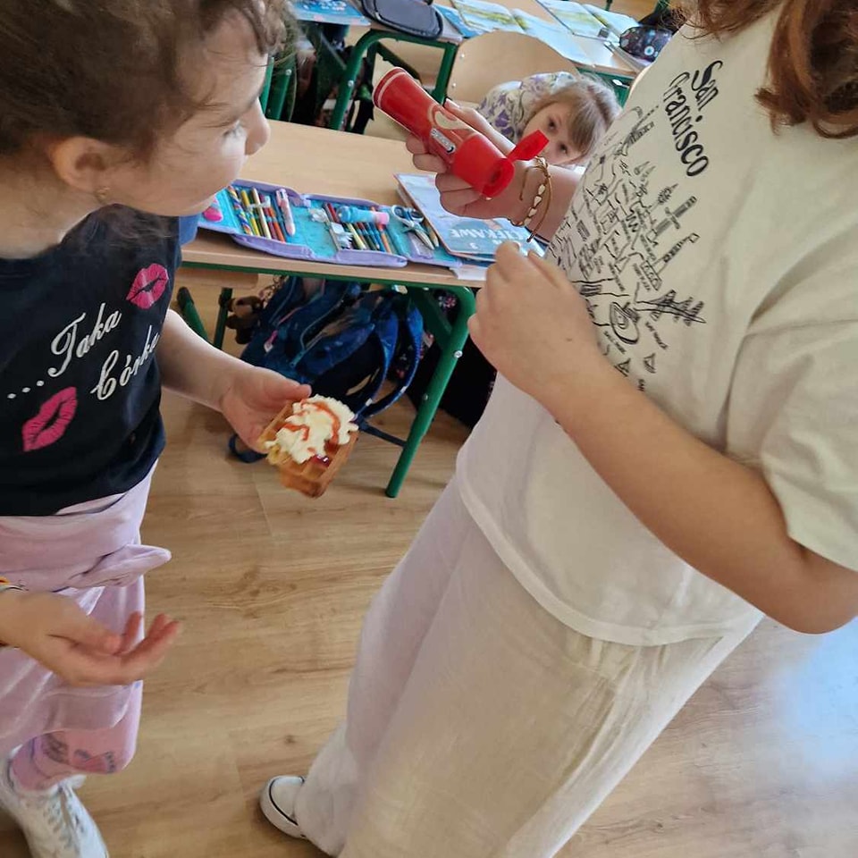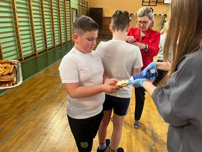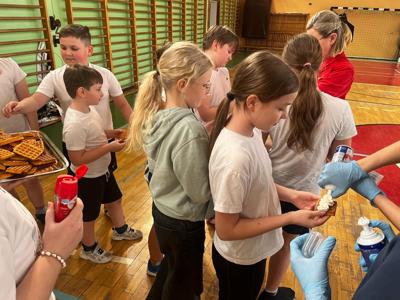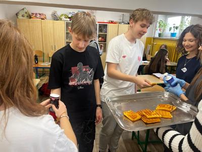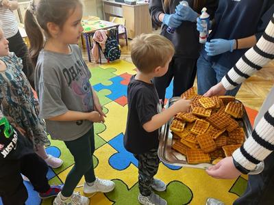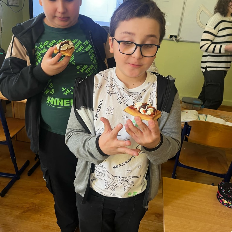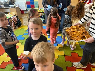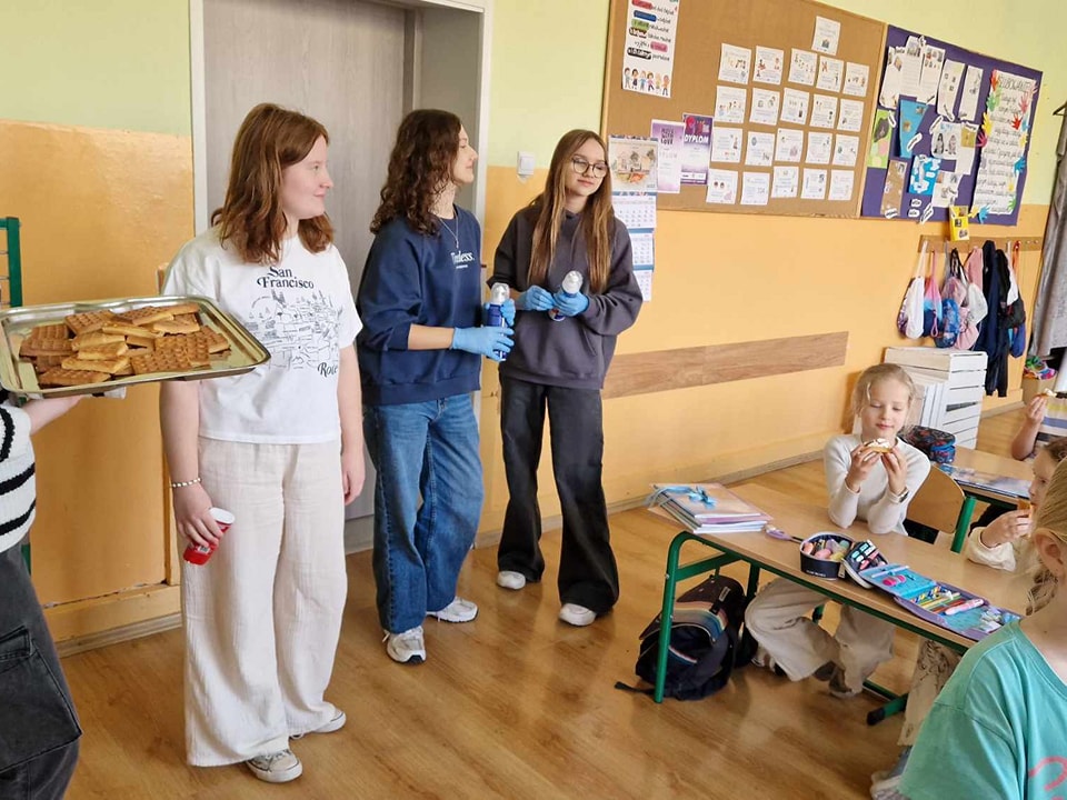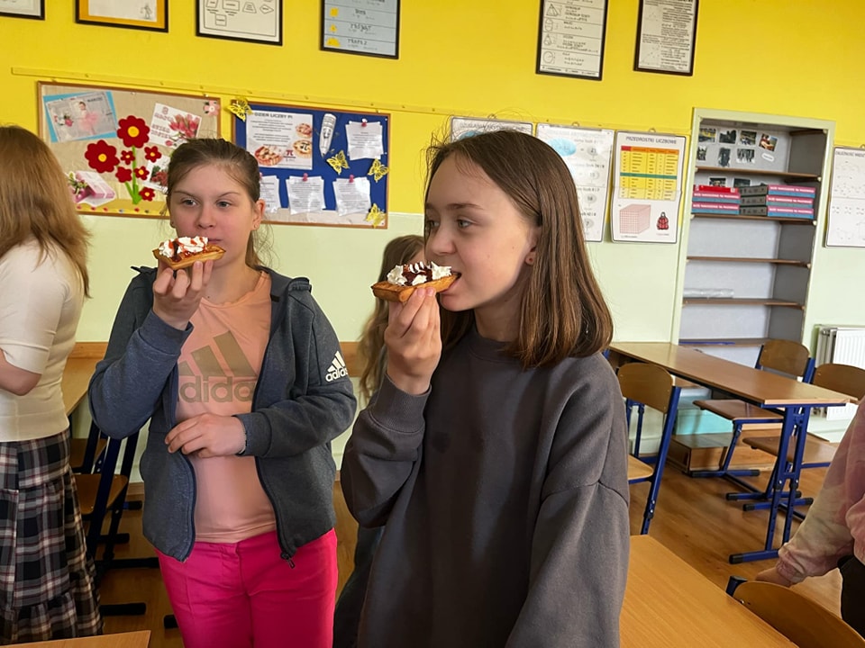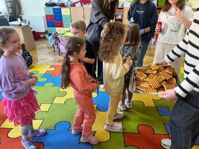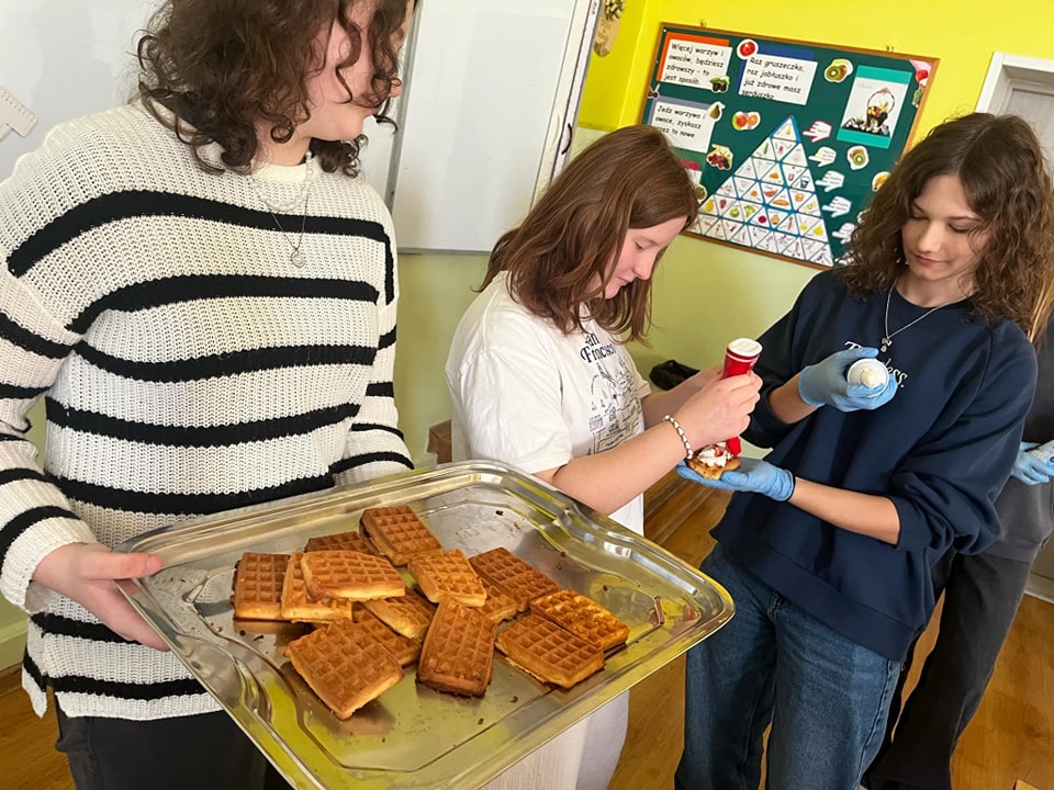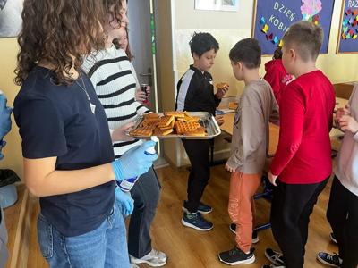 W środę, 26 marca, dzięki pomocy naszych kochanych Pań Kucharek, wszyscy mogli skosztować ciepłych i chrupiących gofrów – suchych, z polewą lub bitą śmietaną.