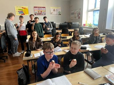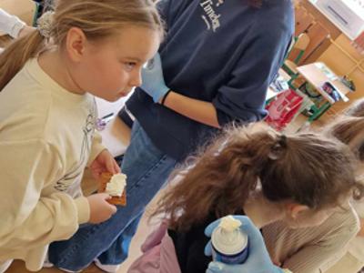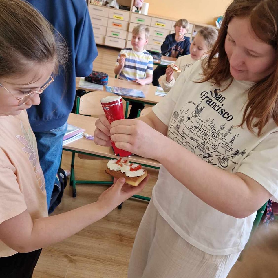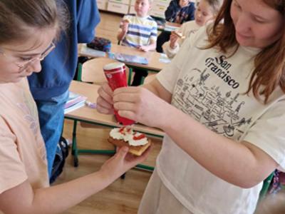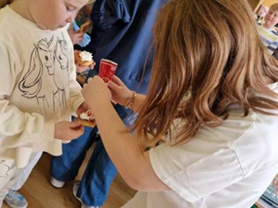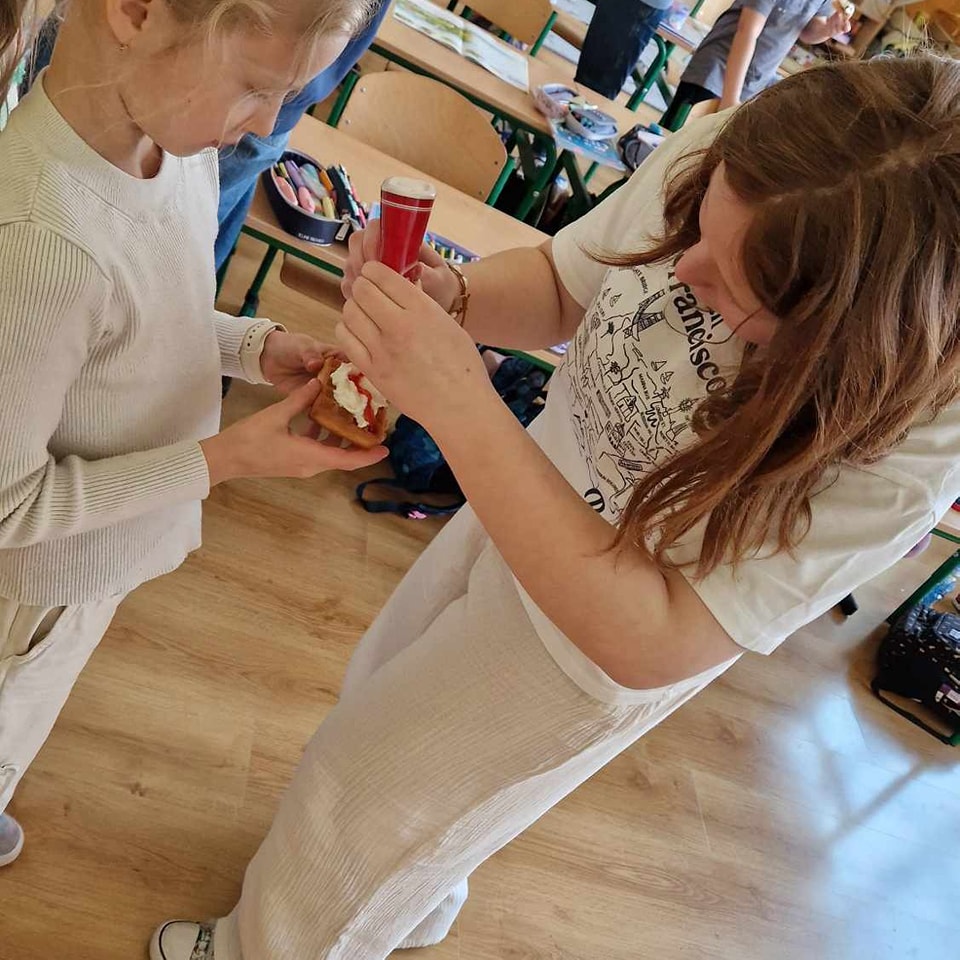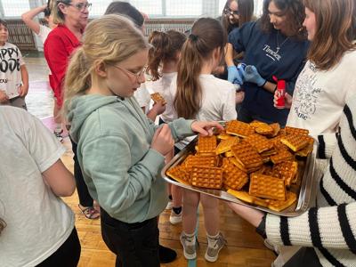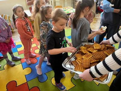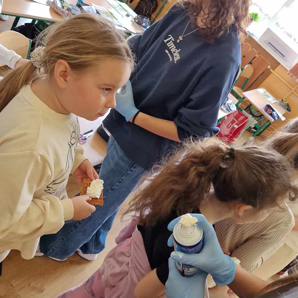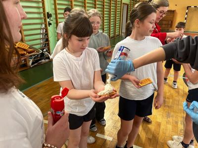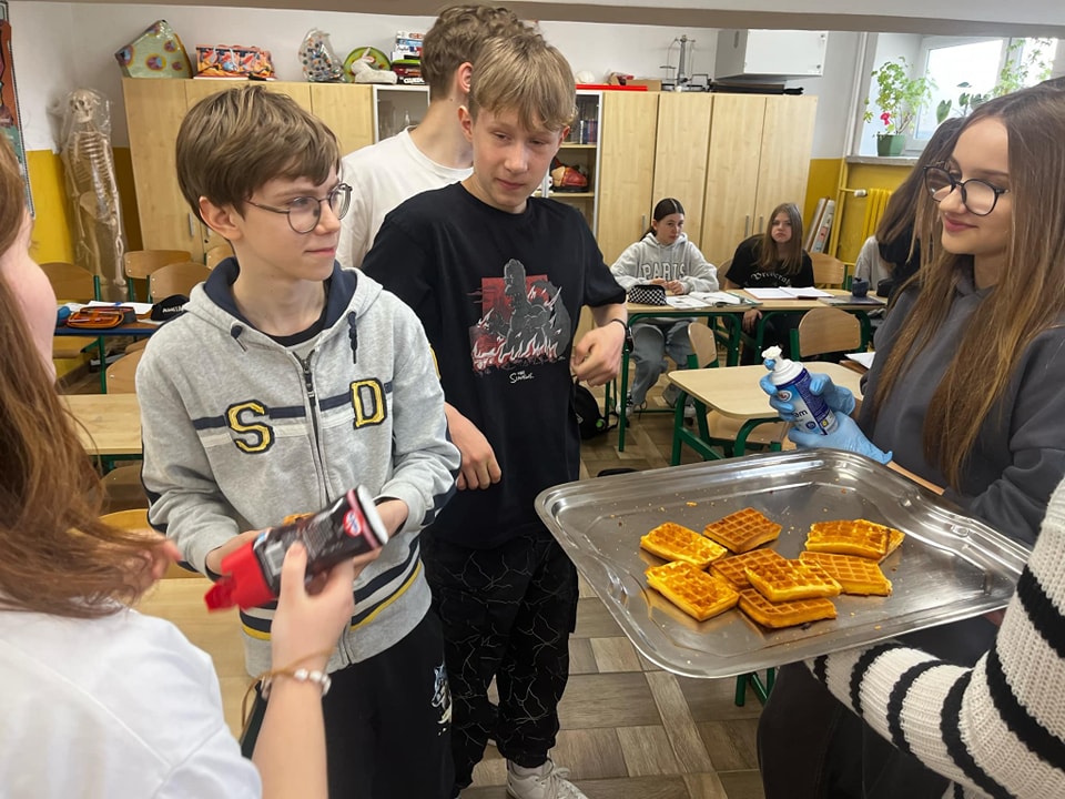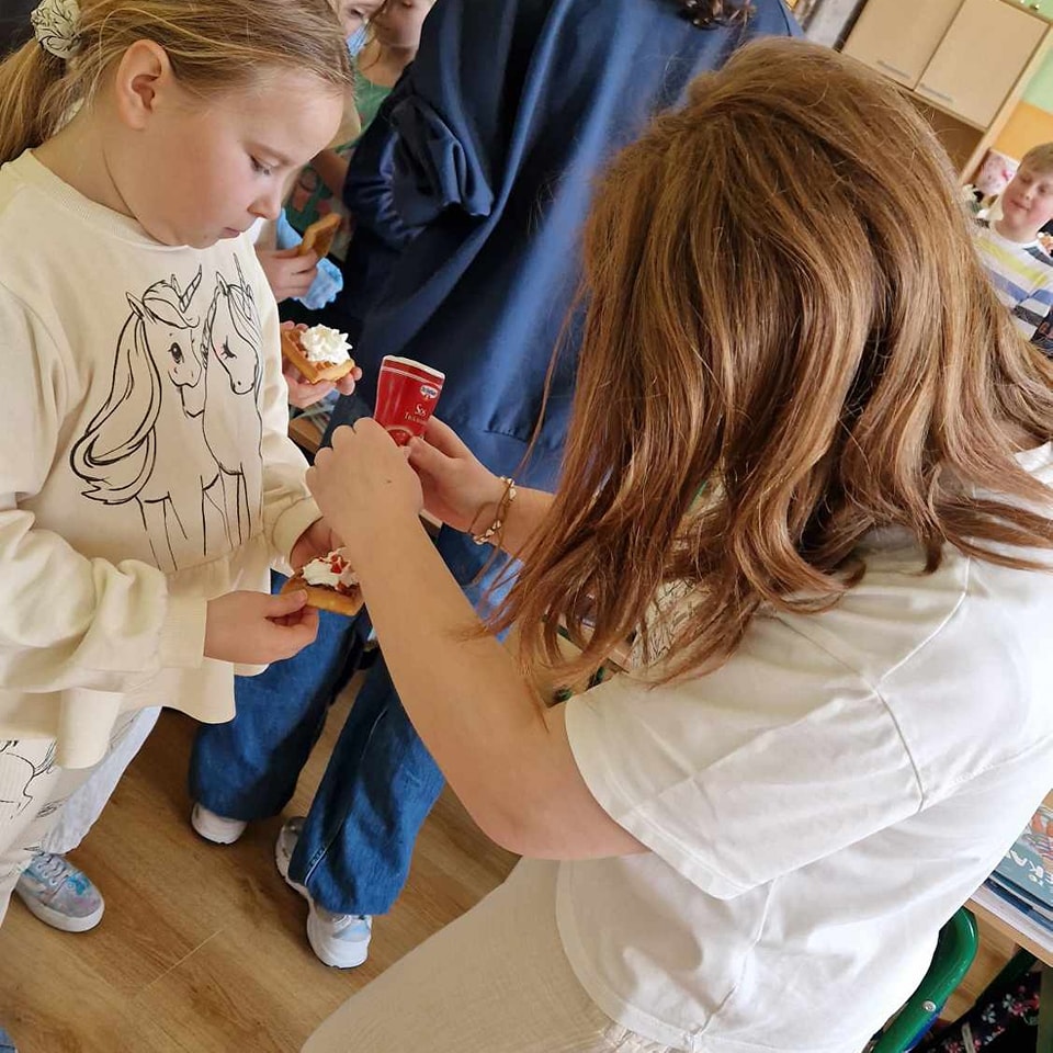 W środę, 26 marca, dzięki pomocy naszych kochanych Pań Kucharek, wszyscy mogli skosztować ciepłych i chrupiących gofrów – suchych, z polewą lub bitą śmietaną.