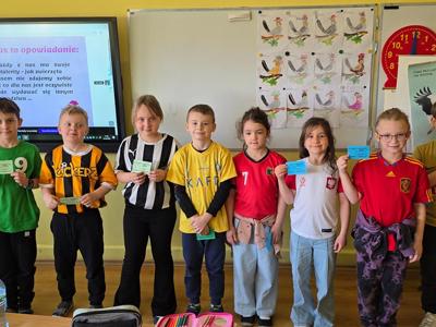31 marca uczniowie z różnych klas przyszli w swoich ulubionych koszulkach sportowych, każdy kto brał udział w zabawie dostał karteczkę niepytkę, a klasa która najliczniej przyszła w koszulkach sportowych dostała nagrodę
