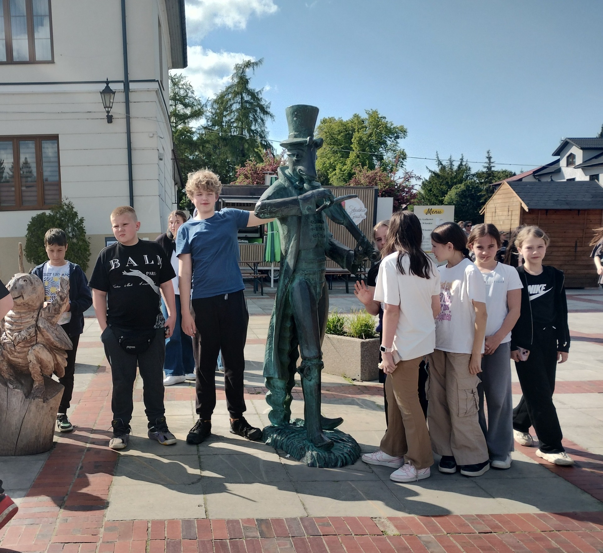 Ostatniego dnia wybraliśmy się do Parku Żywiołów. Połączenie nauki i zabawy pozwoliło nam miło spędzić czas. Odwiedziliśmy też Szczebrzeszyn – miasto słynące z chrząszcza z wiersza Jana Brzechwy. Zrobiliśmy pamiątkowe zdjęcia przy pomniku chrząszcza i odczytaliśmy utwór Brzechwy.