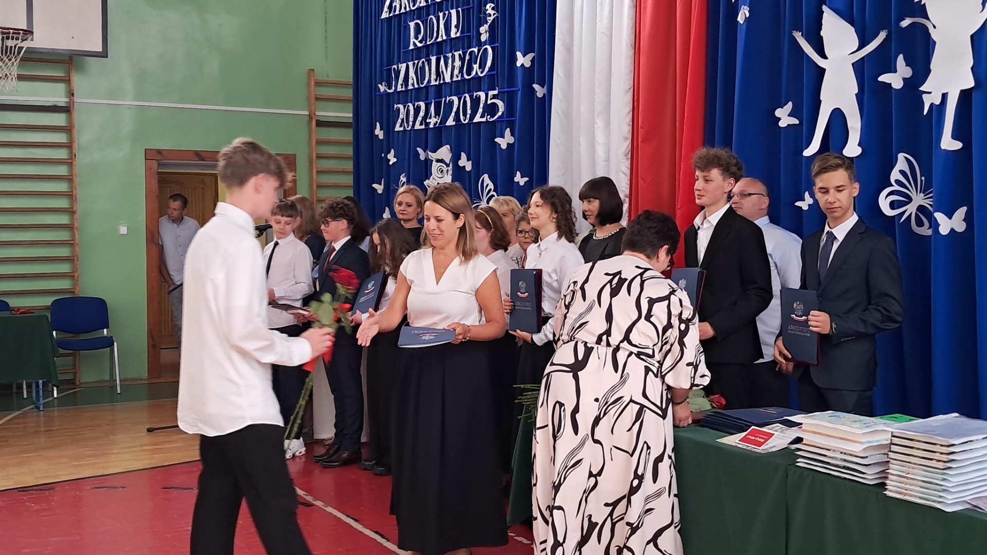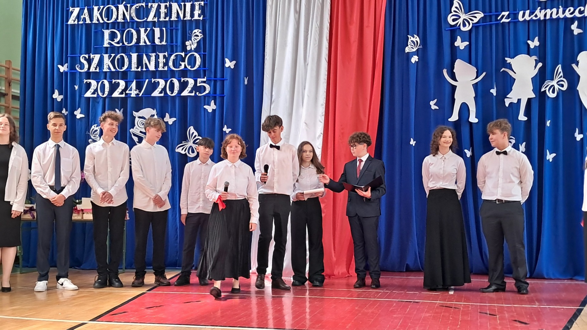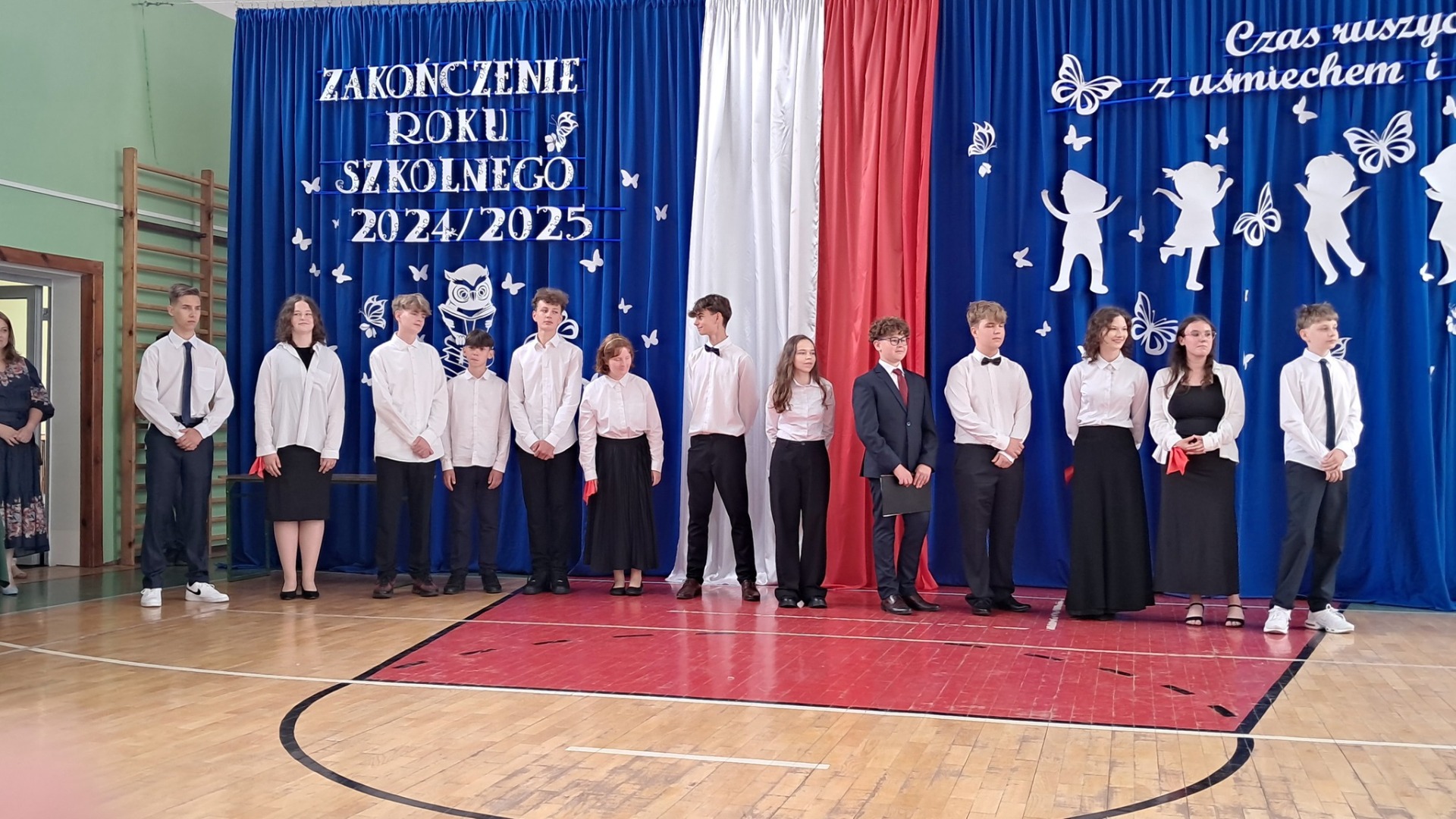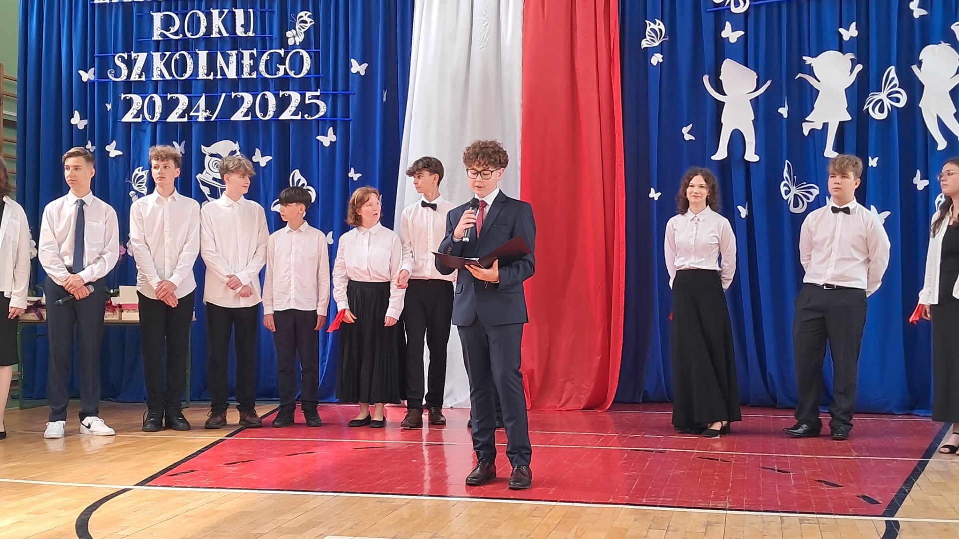 27 czerwca odbyło się uroczyste zakończenie roku szkolnego 2024/2025. Tradycyjnie rozpoczęliśmy ten wyjątkowy dzień mszą świętą w Kościele pw. Serca Pana Jezusa w Worowie, a następnie przenieśliśmy się do sali gimnastycznej, gdzie odbyła się dalsza część uroczystości.
