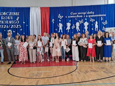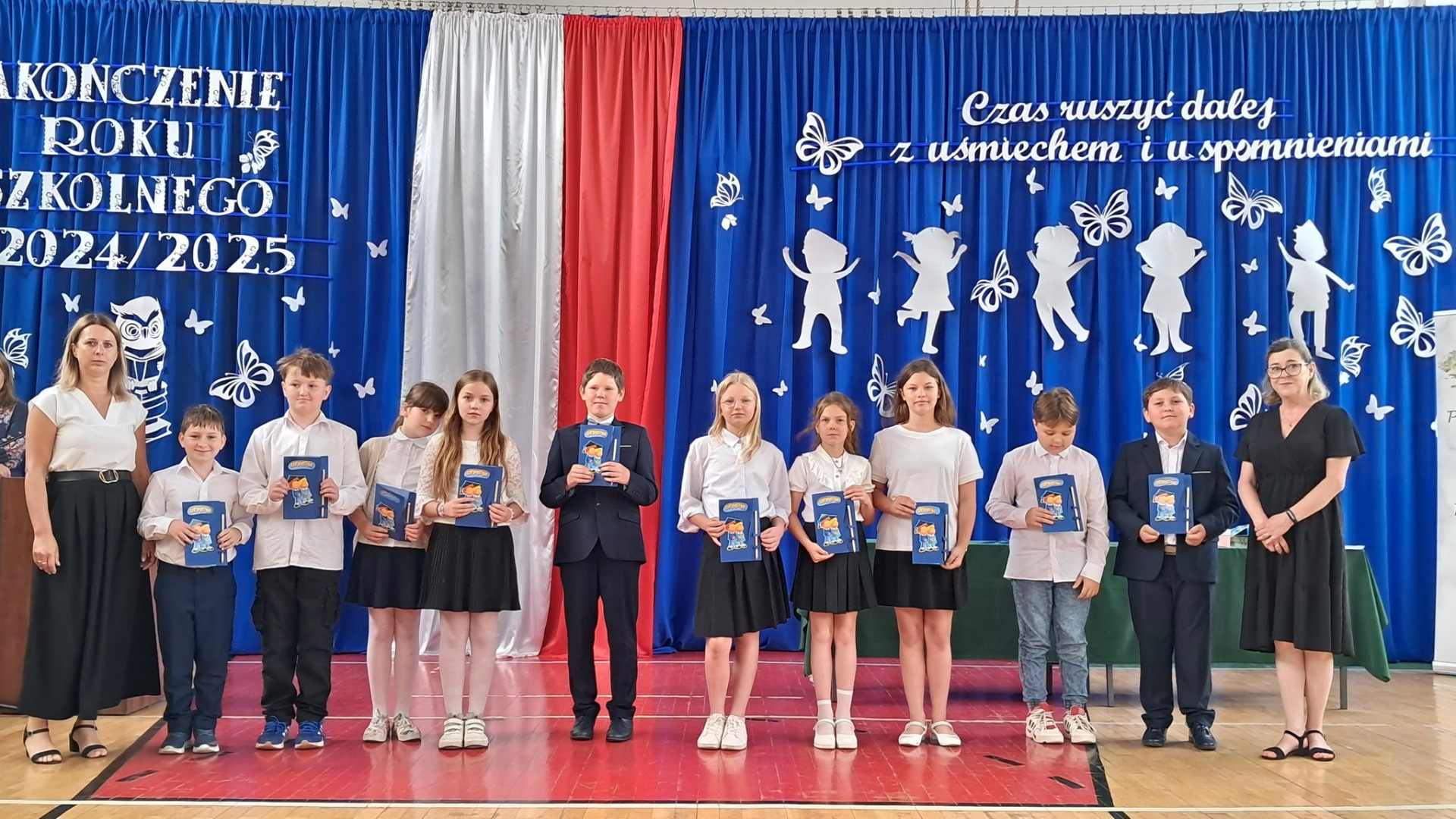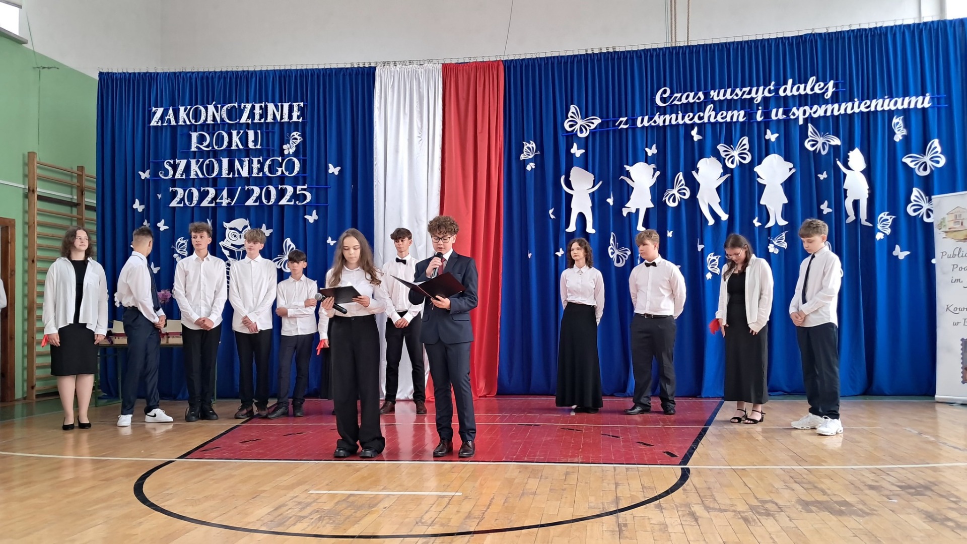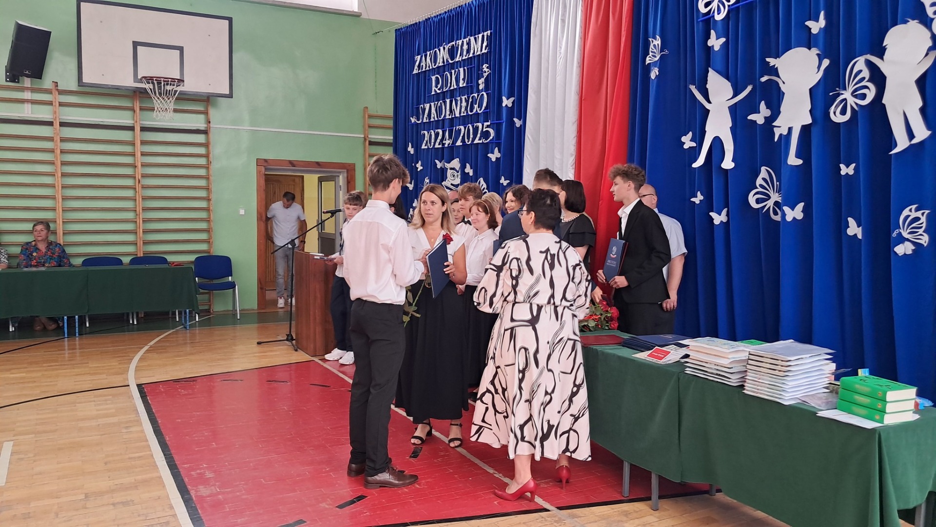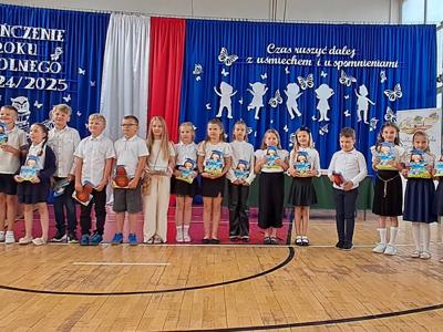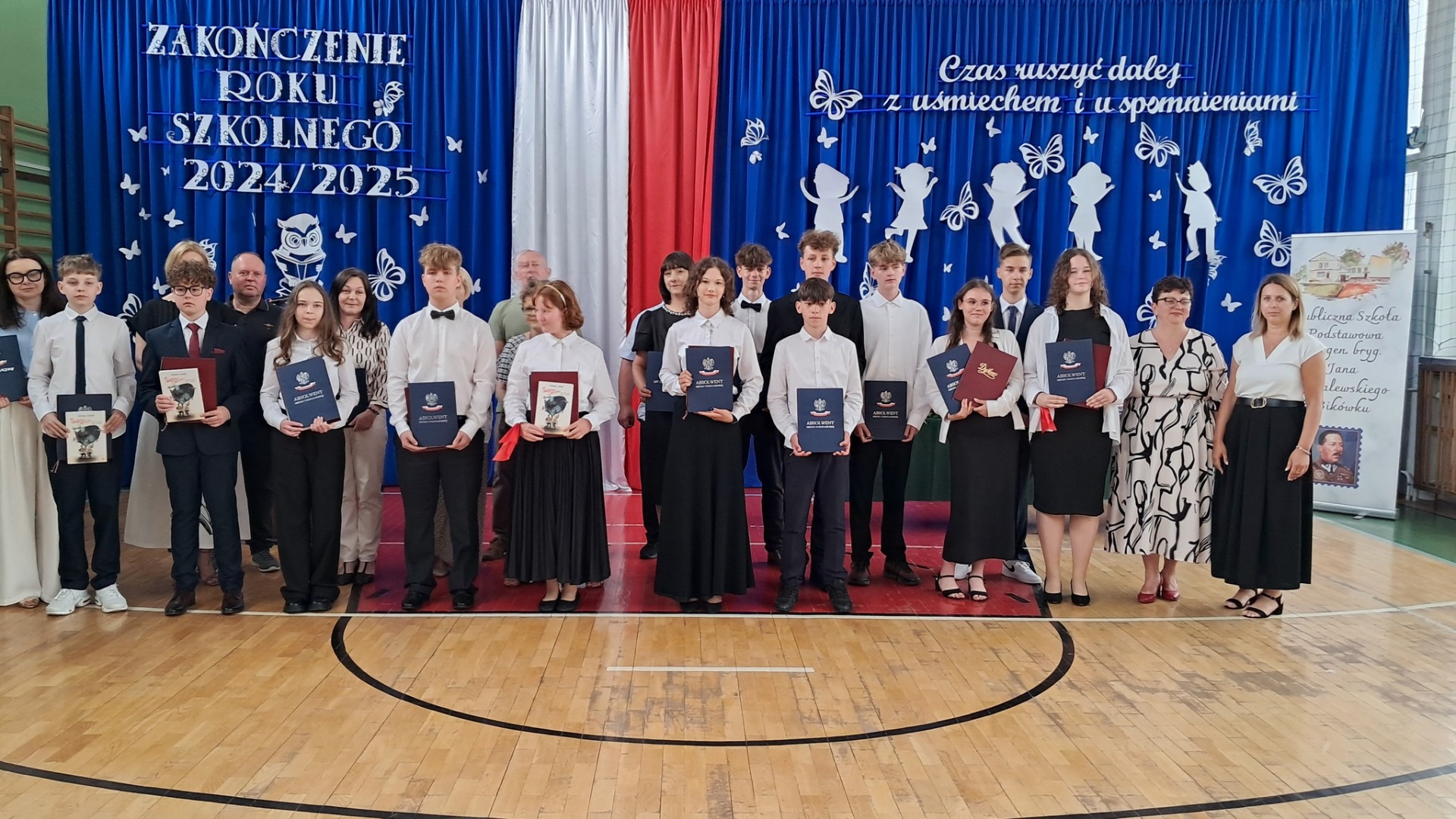 27 czerwca odbyło się uroczyste zakończenie roku szkolnego 2024/2025. Tradycyjnie rozpoczęliśmy ten wyjątkowy dzień mszą świętą w Kościele pw. Serca Pana Jezusa w Worowie, a następnie przenieśliśmy się do sali gimnastycznej, gdzie odbyła się dalsza część uroczystości.