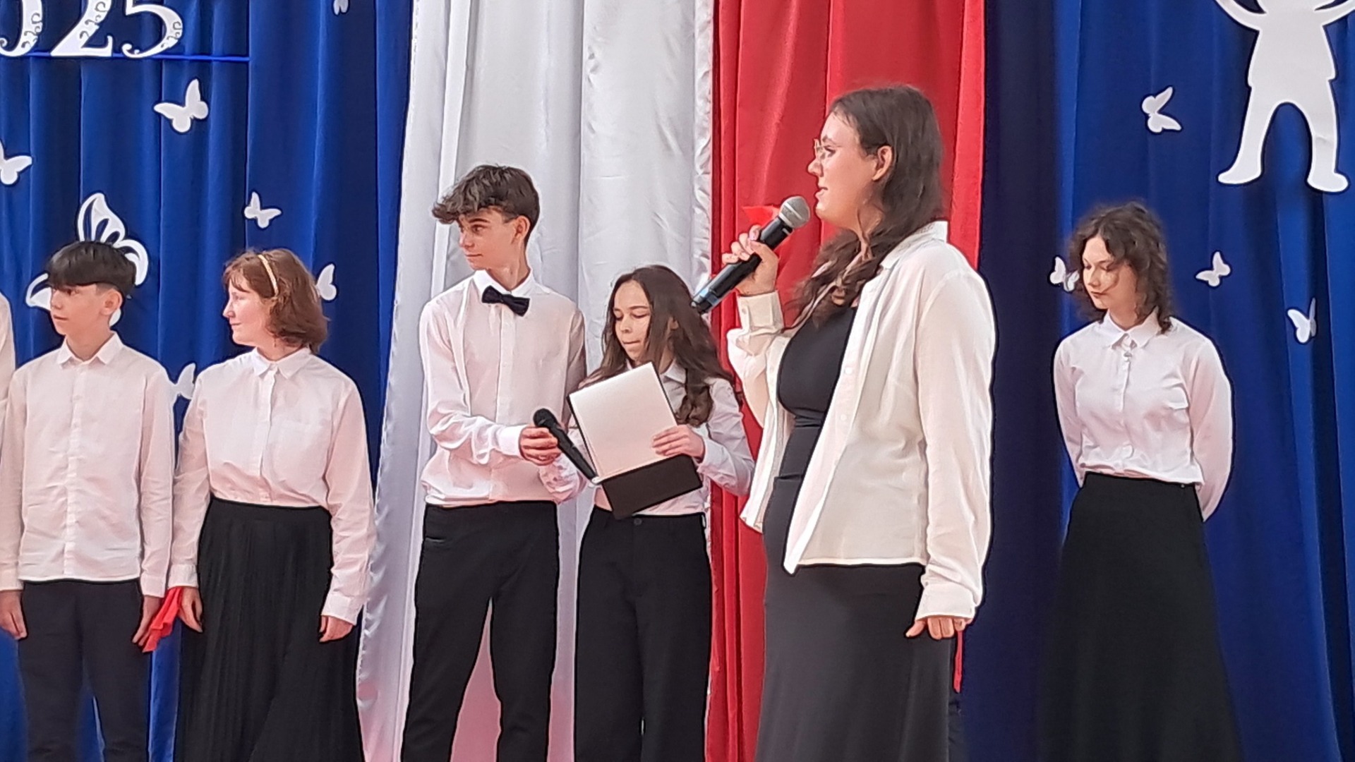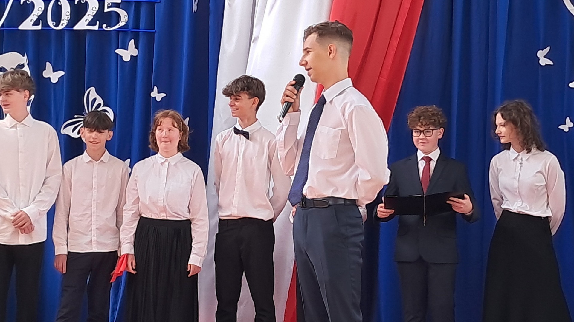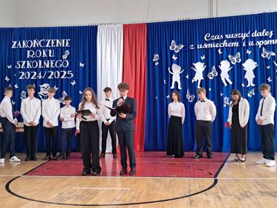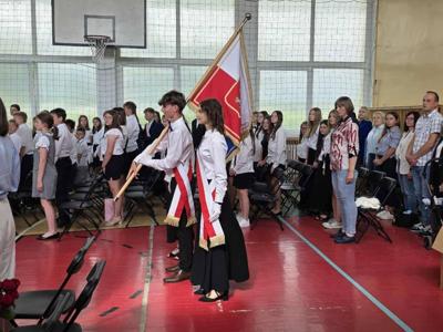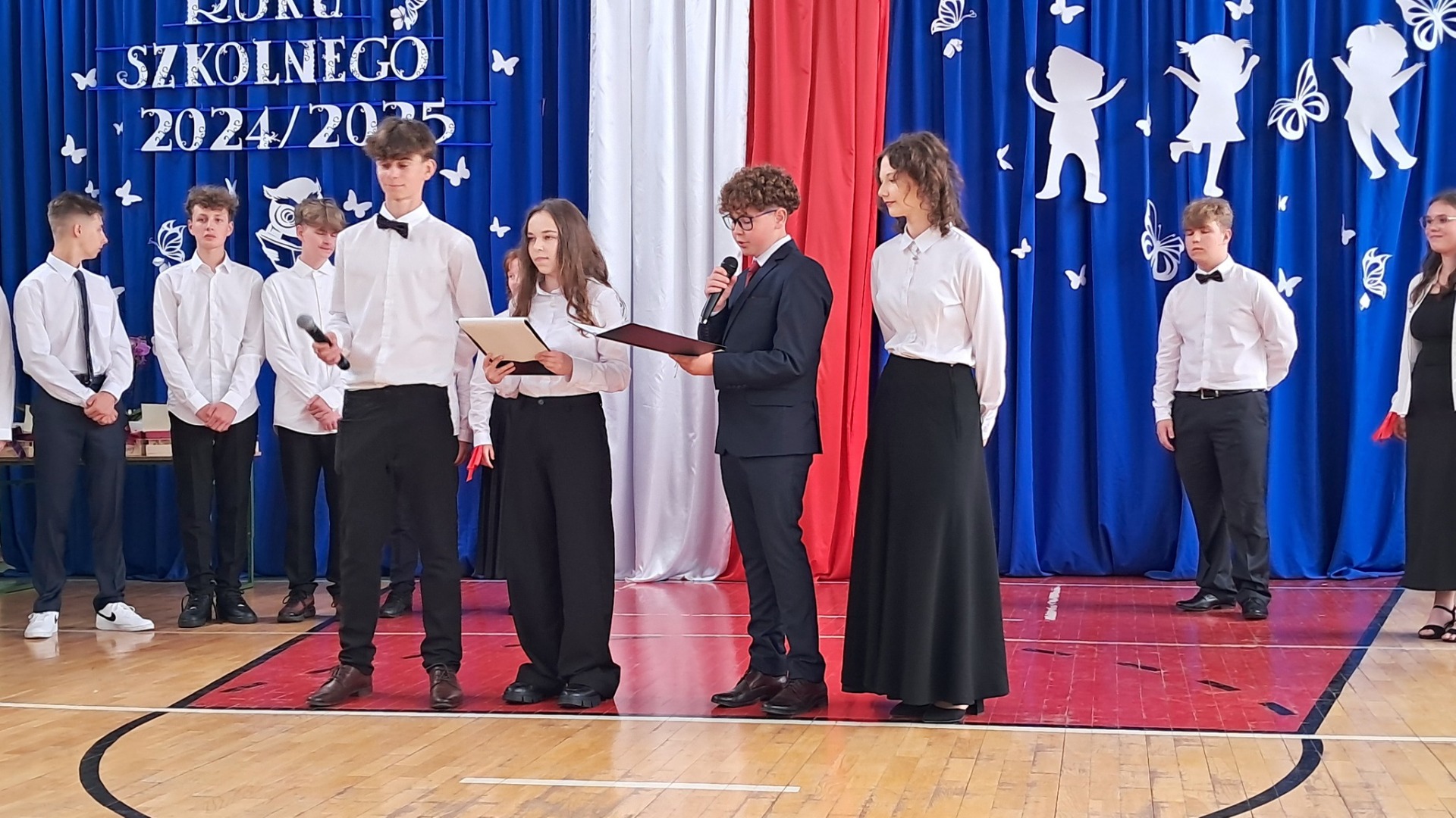 Klasa 8 przygotowała wzruszający występ artystyczny, a klasa 7 pożegnała swoich starszych kolegów w pięknych słowach i gestach.