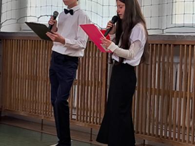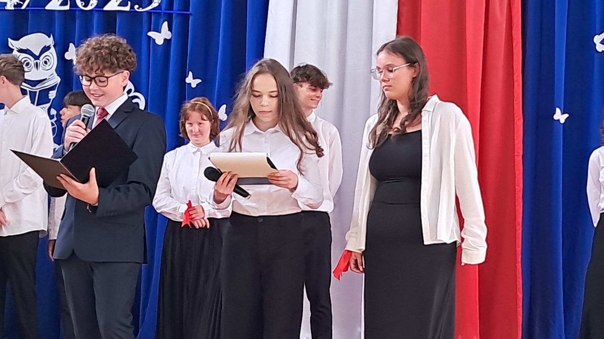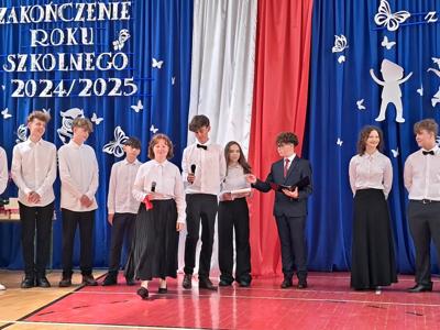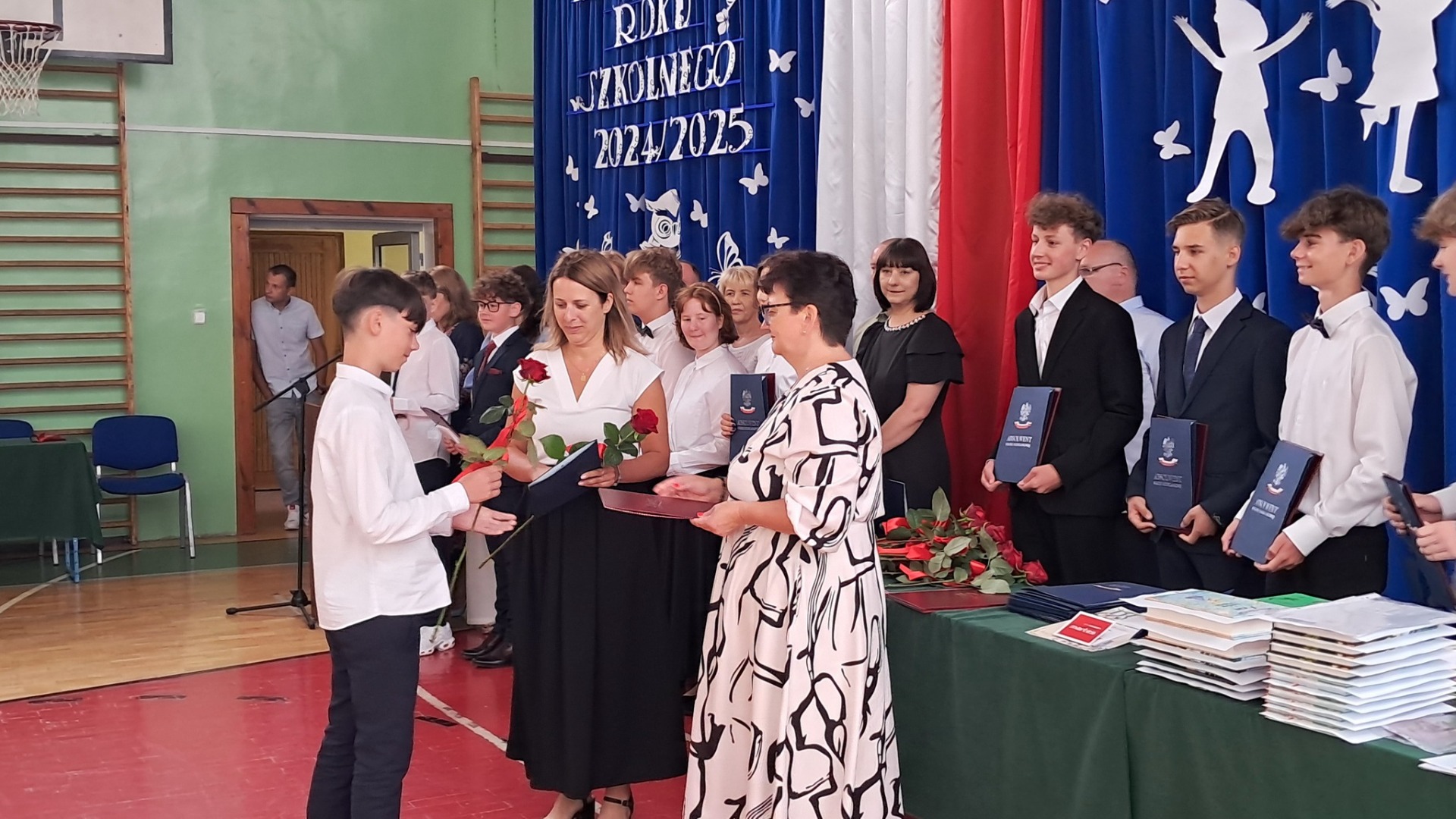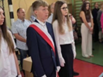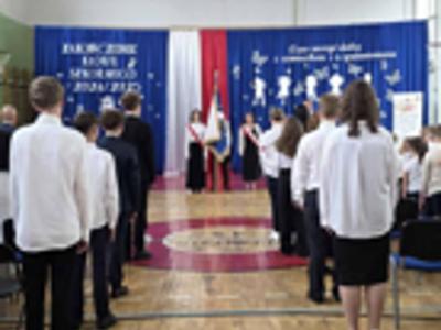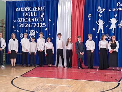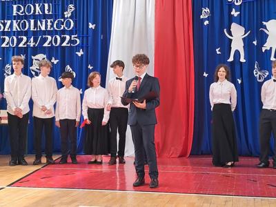 Klasa 8 przygotowała wzruszający występ artystyczny, a klasa 7 pożegnała swoich starszych kolegów w pięknych słowach i gestach.