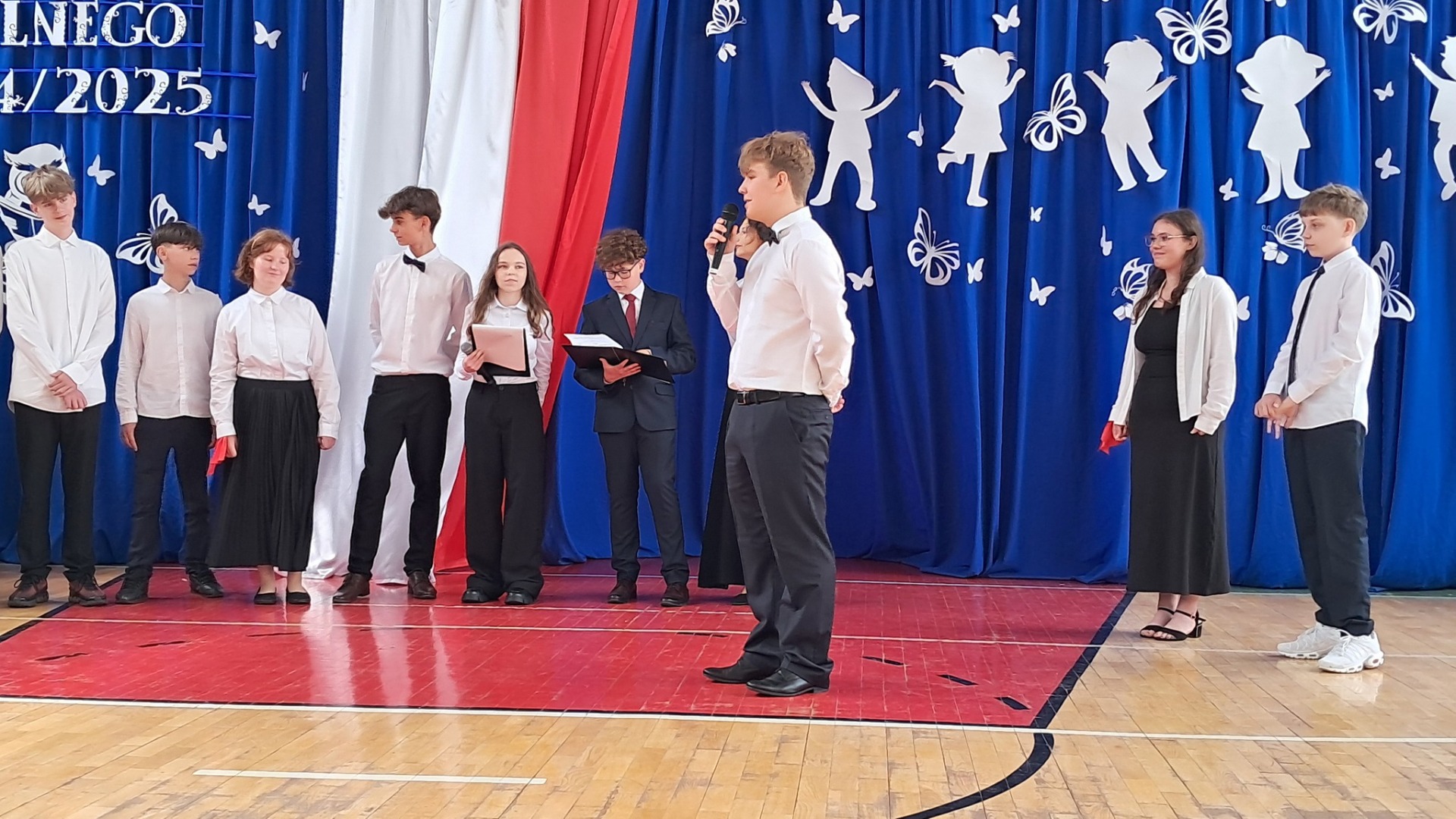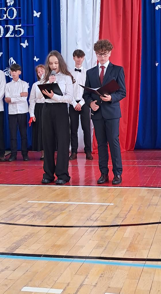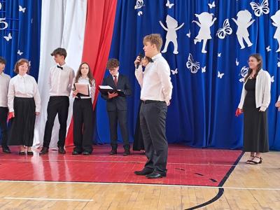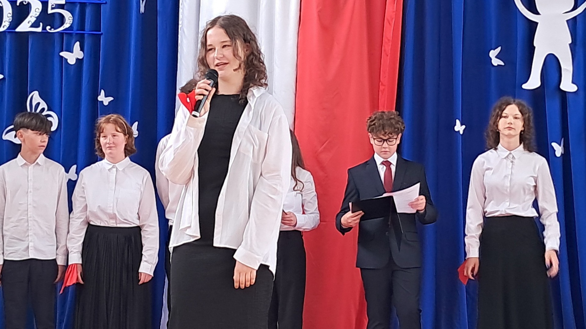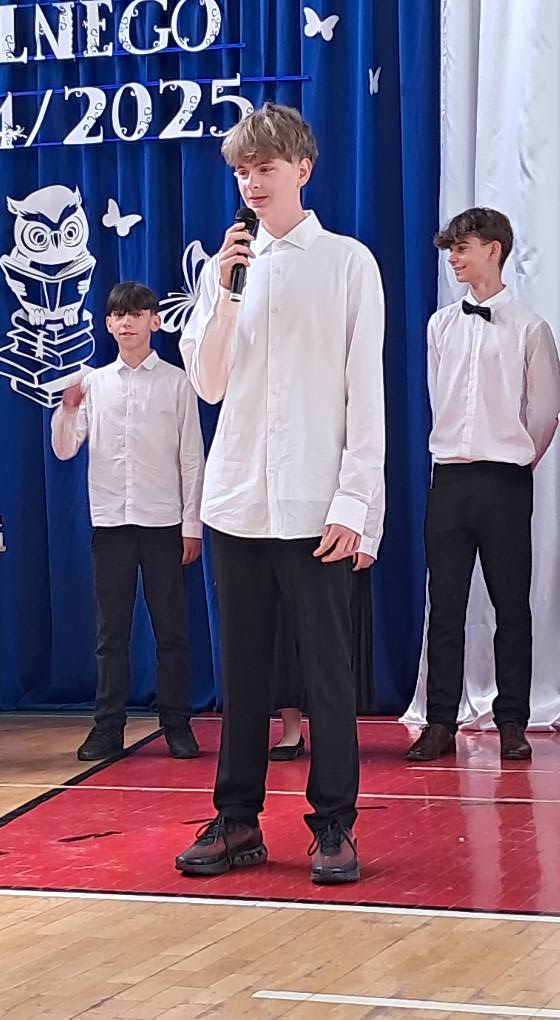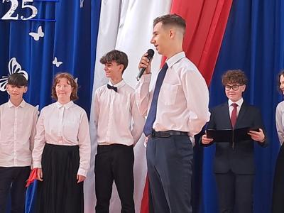 Zwieńczeniem uroczystości był wspaniale wykonany Polonez w wykonaniu uczniów klas 7 i 8 oraz Pani Dyrektor. Uczniów do tańca z wielkim zaangażowaniem przygotowały Panie Katarzyna Białek i Olga Szewczyk.