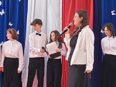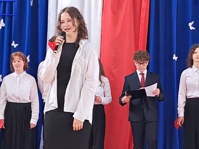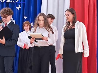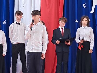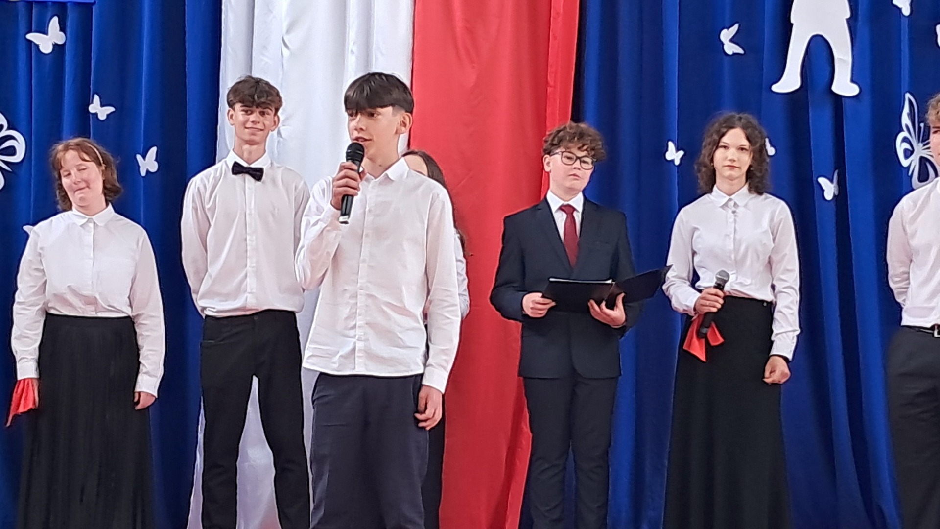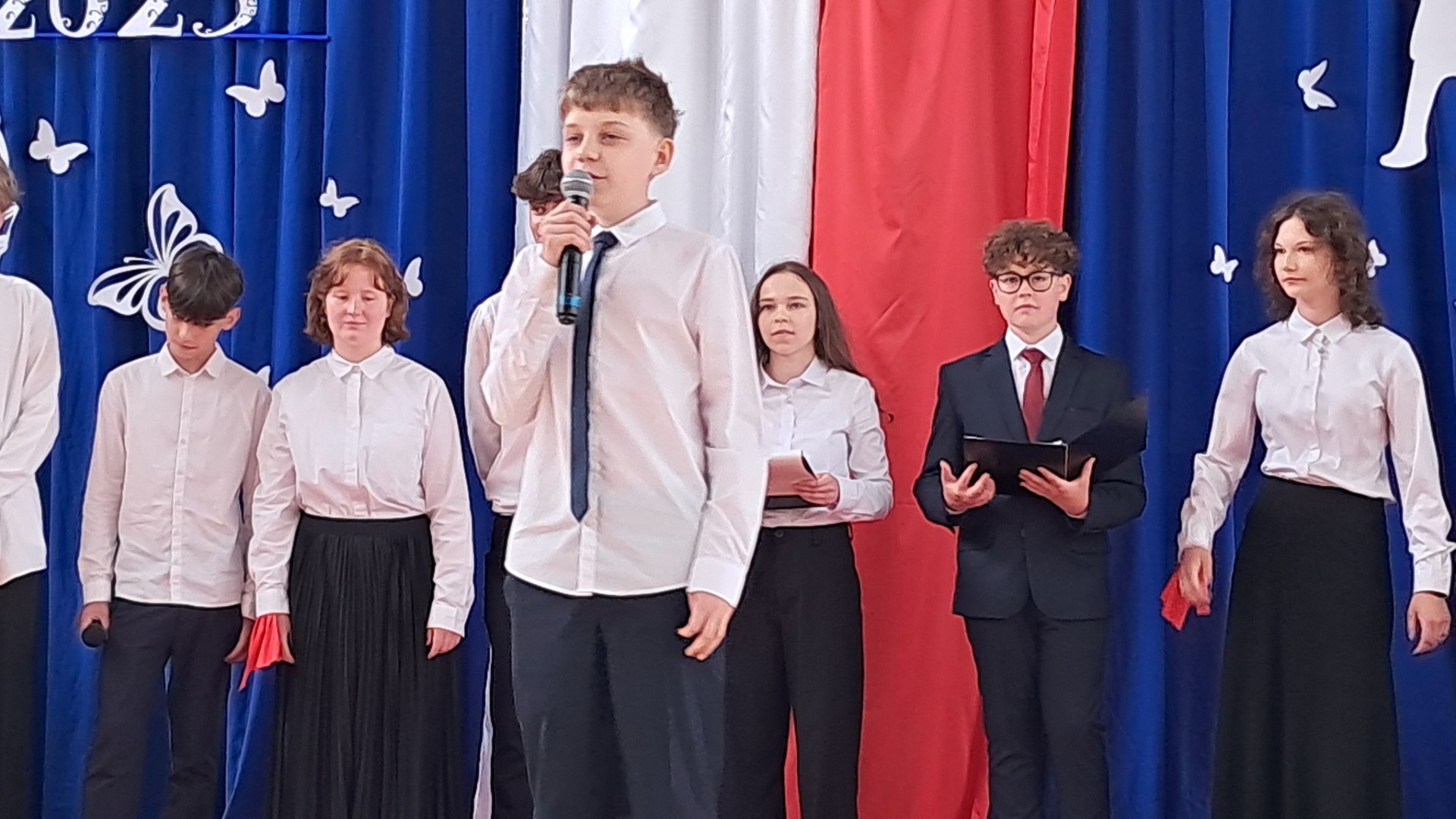Zwieńczeniem uroczystości był wspaniale wykonany Polonez w wykonaniu uczniów klas 7 i 8 oraz Pani Dyrektor. Uczniów do tańca z wielkim zaangażowaniem przygotowały Panie Katarzyna Białek i Olga Szewczyk.