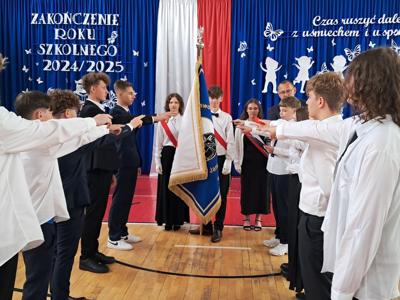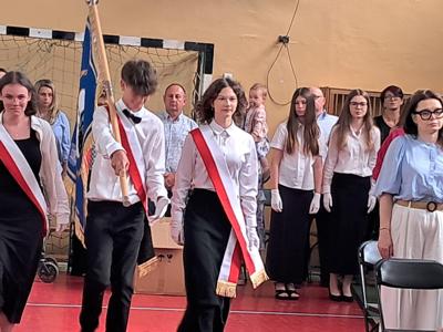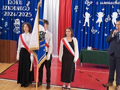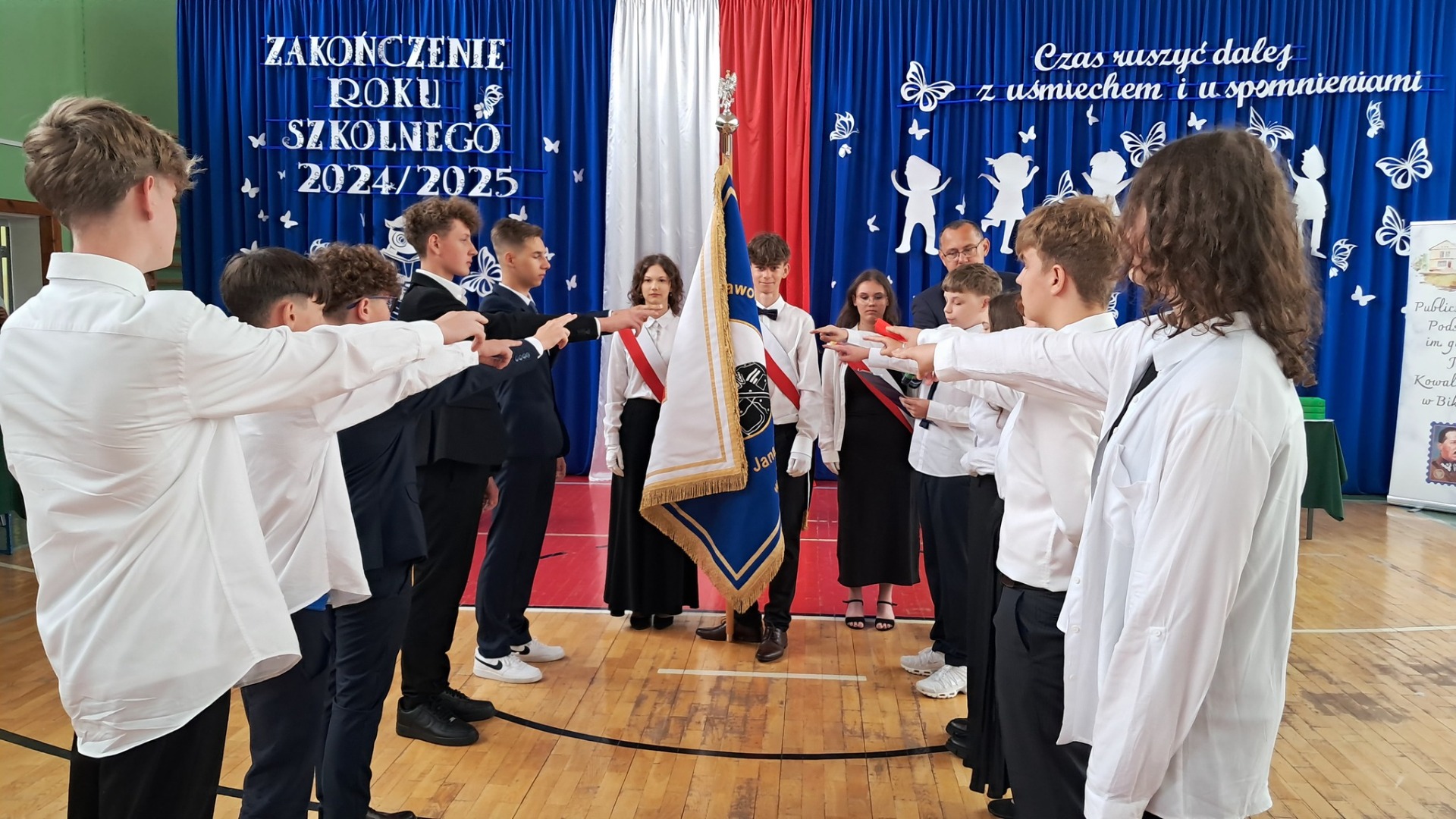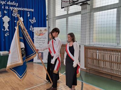 Tradycyjnie odbyło się również przekazanie sztandaru – klasa 8 przekazała go młodszym kolegom i koleżankom z klasy 7.