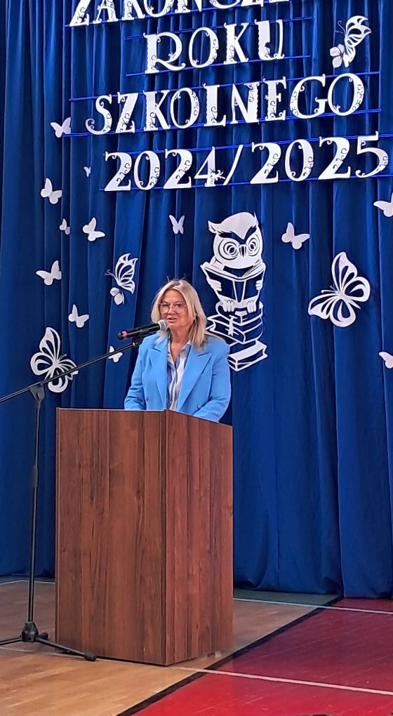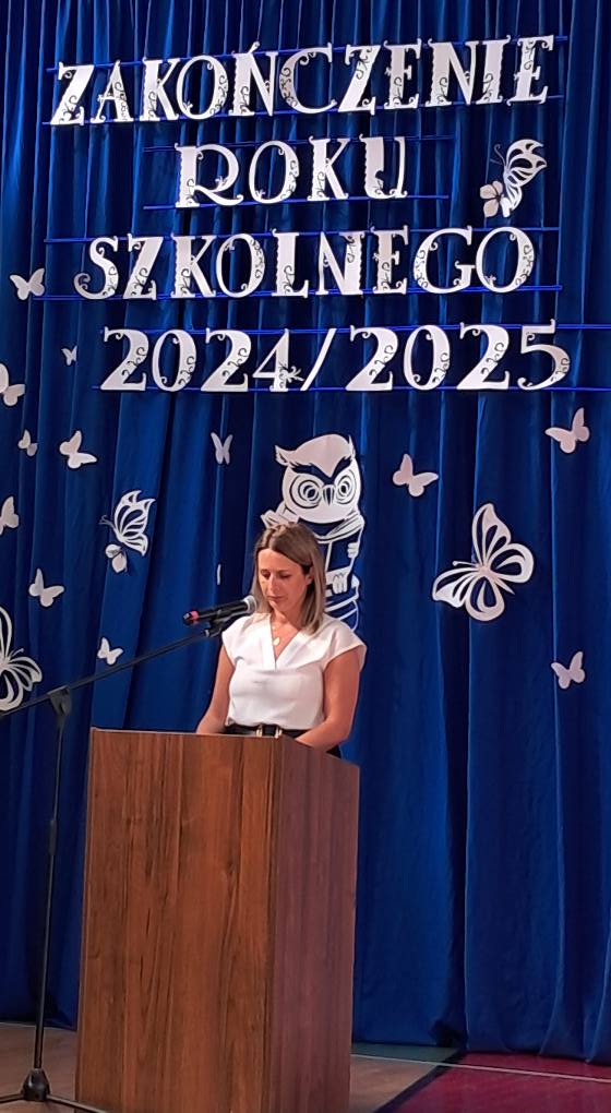 Pani Dyrektor Agata Kępka serdecznie powitała gości, złożyła życzenia udanego i bezpiecznego wypoczynku oraz podziękowała rodzicom za nieocenione wsparcie przez cały rok.