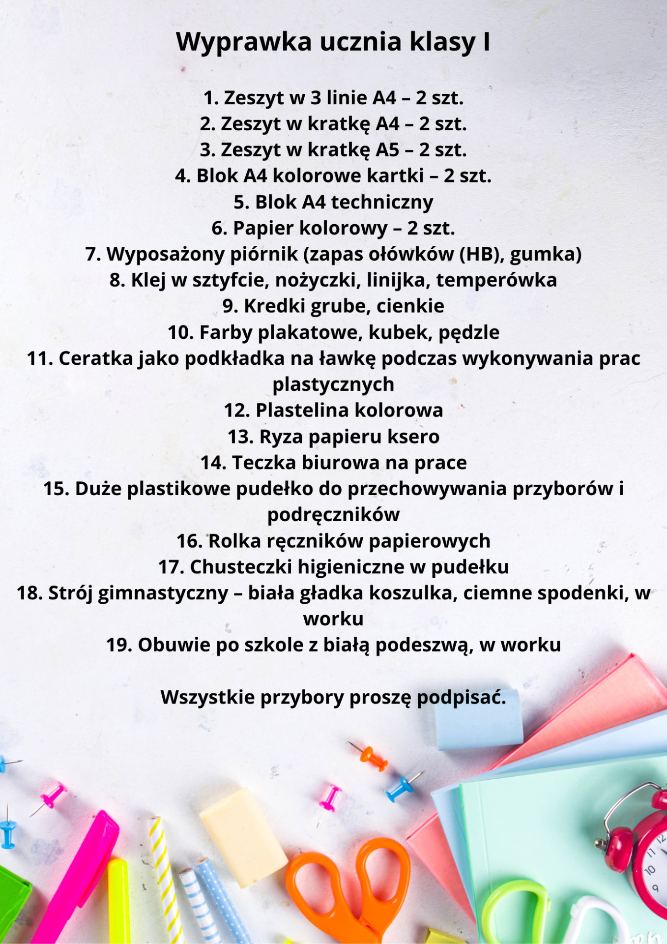 Wyprawka do klasy I na rok szkolny 2025/2026
